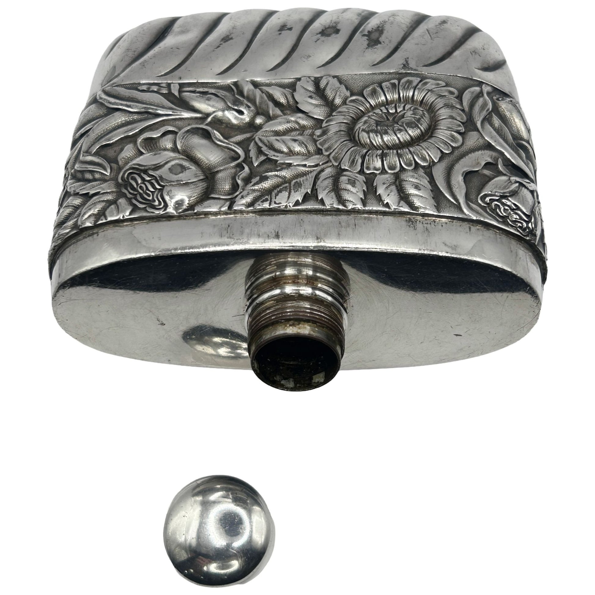 Antique Derby Silver Co. Silver Plate Flask with Original Screw Off Cap and Lid