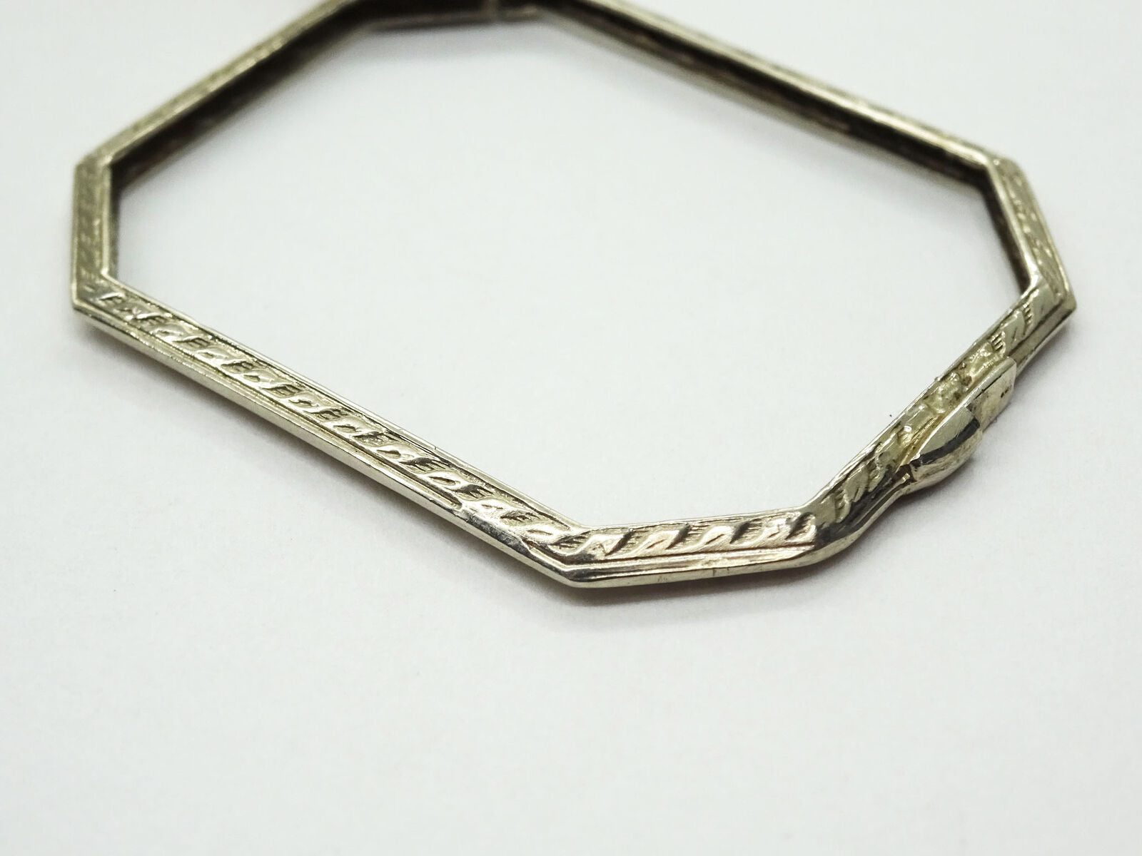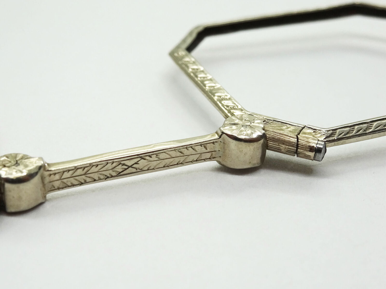 Genuine antique beautiful and elegant Victorian-style lorgnette in 14k white gold. Fine hand etched dia-cut pattern along the edges, and lovely filigree work on the end.