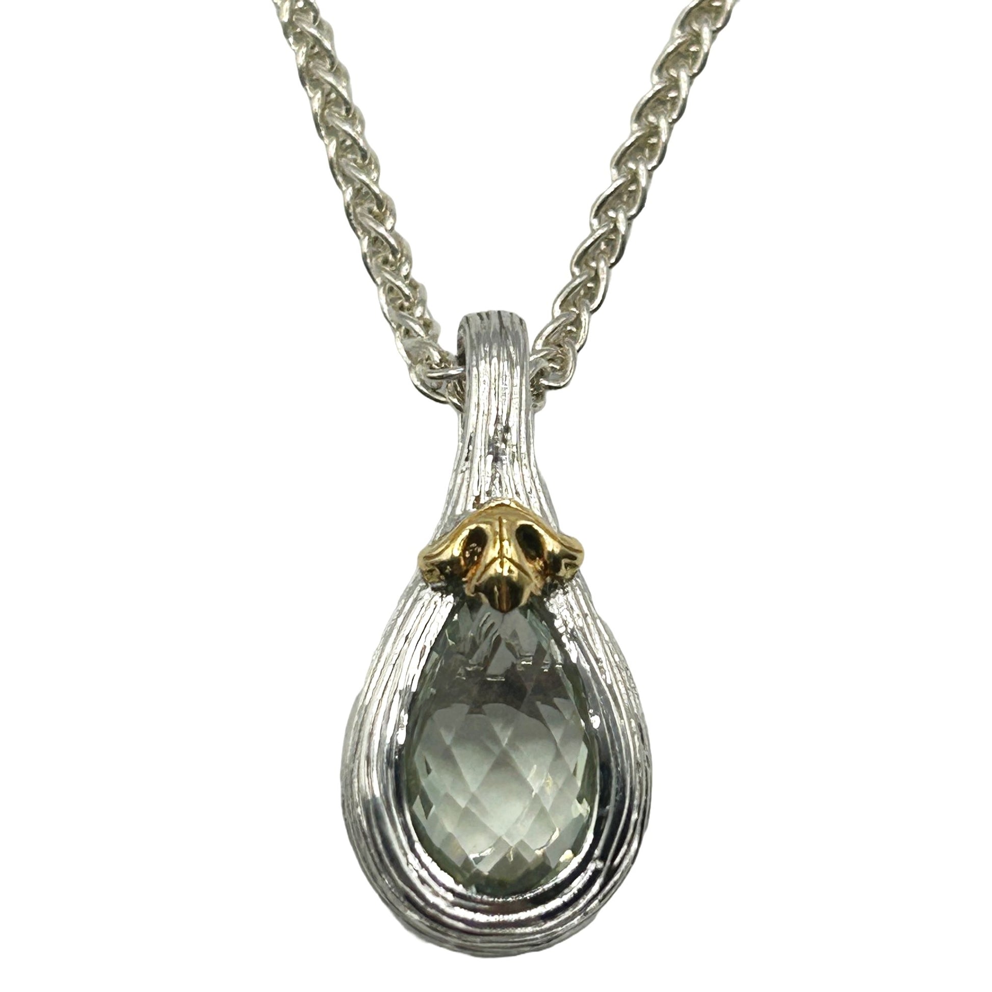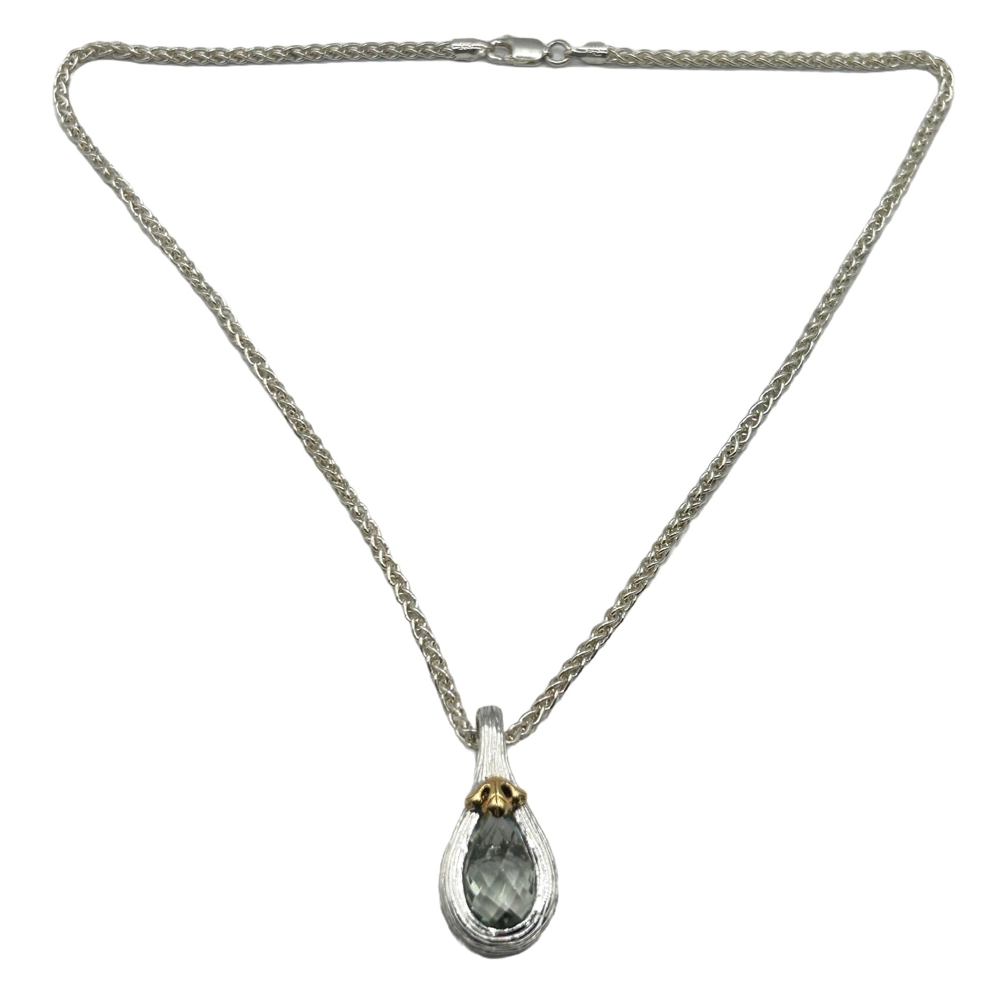 Ariva Sterling & 18K 1.40 cttw Green Quartz Pendant Necklace