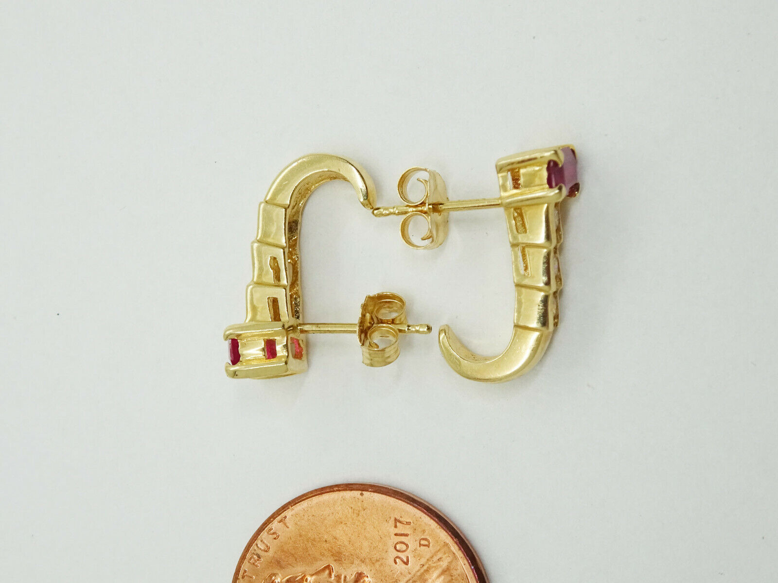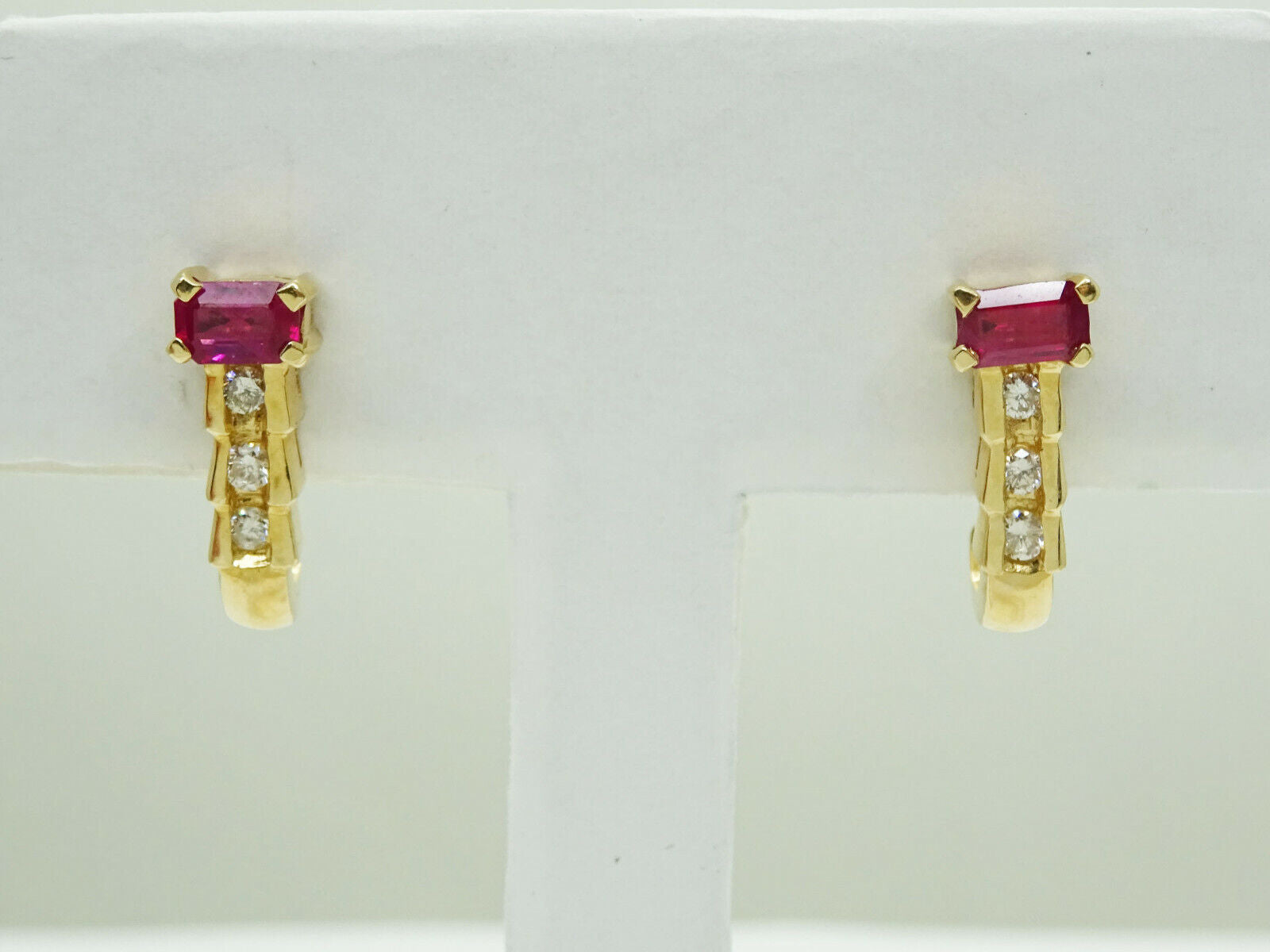 0.4ct tw Natural Ruby & Diamond J-Shaped Earrings 14k Gold