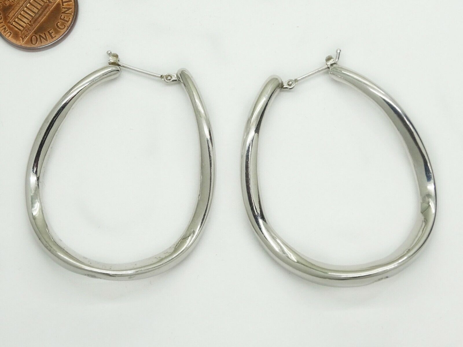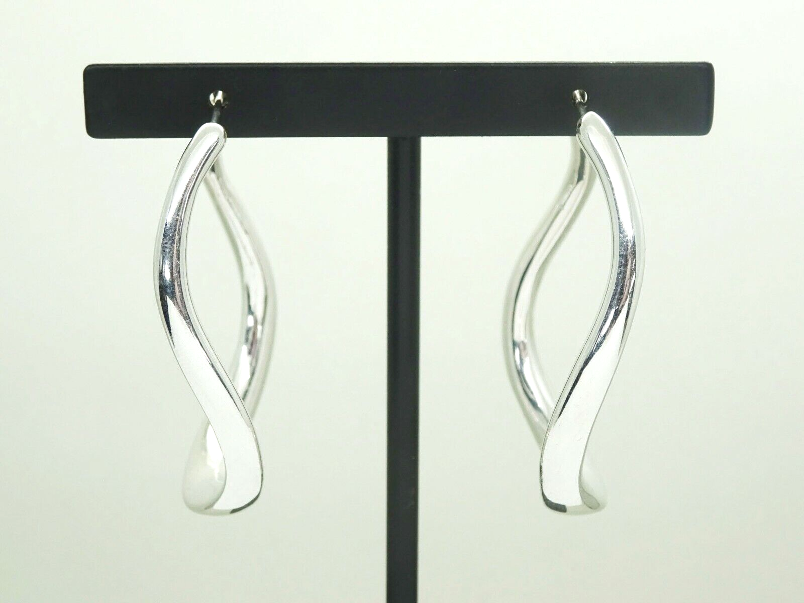 Pair of light but solid big wavy 14k white gold hoop earrings, with lever backs.