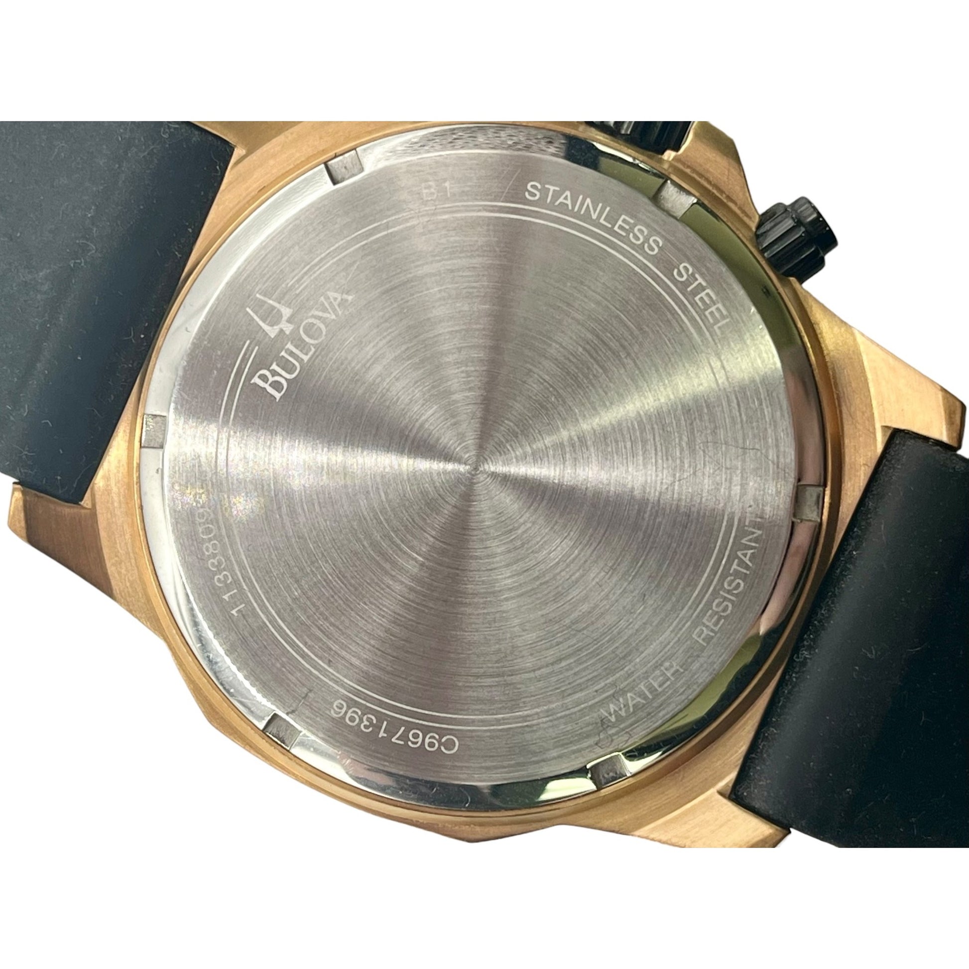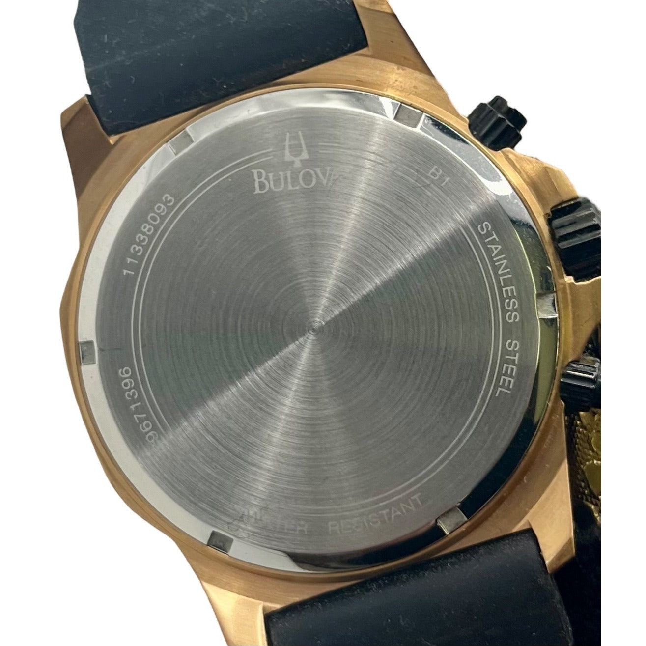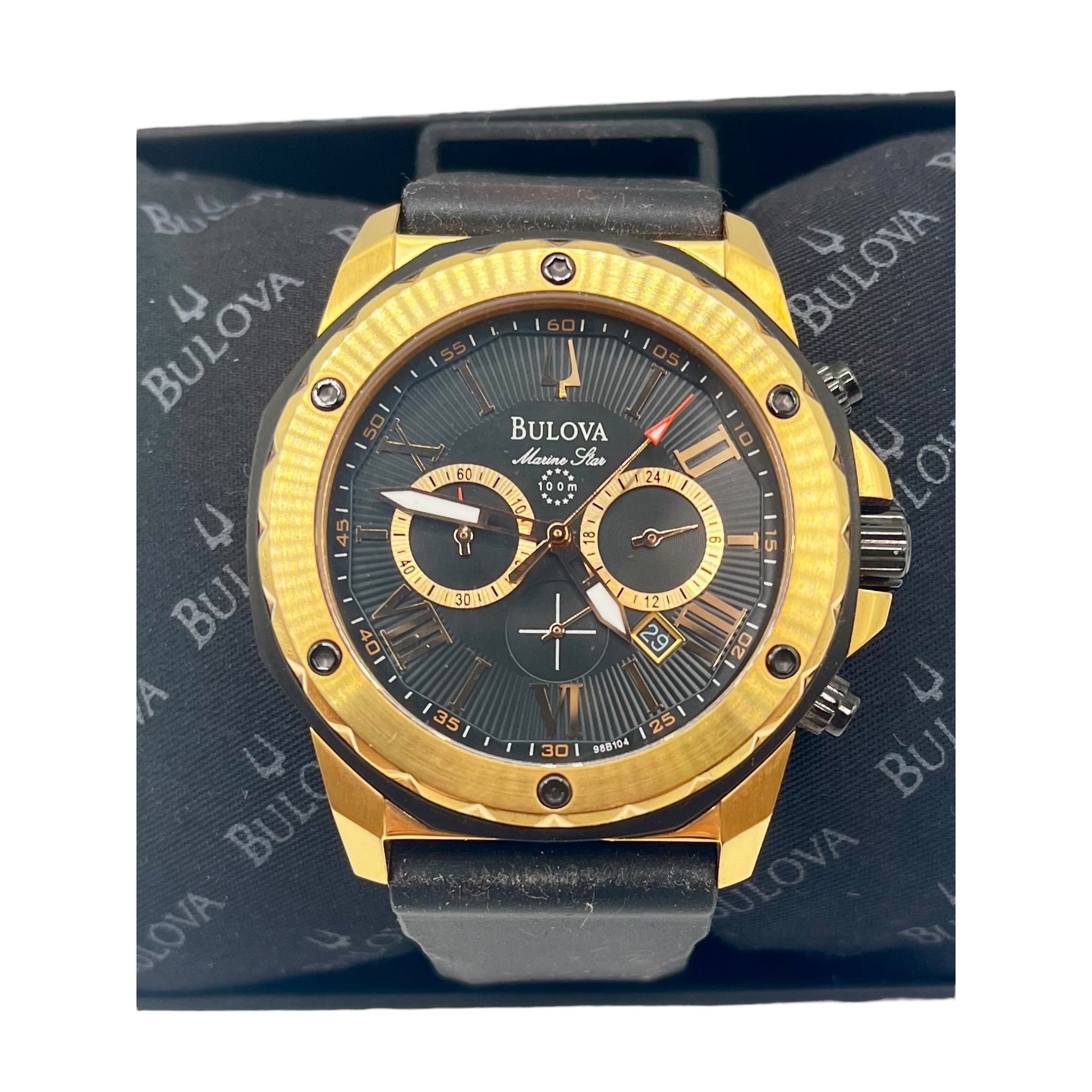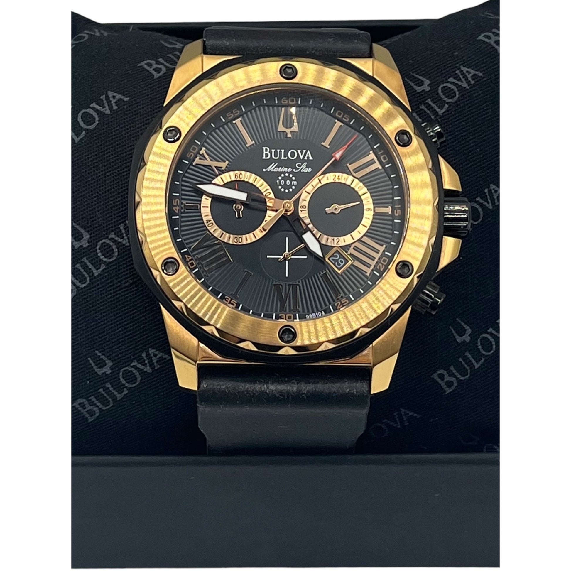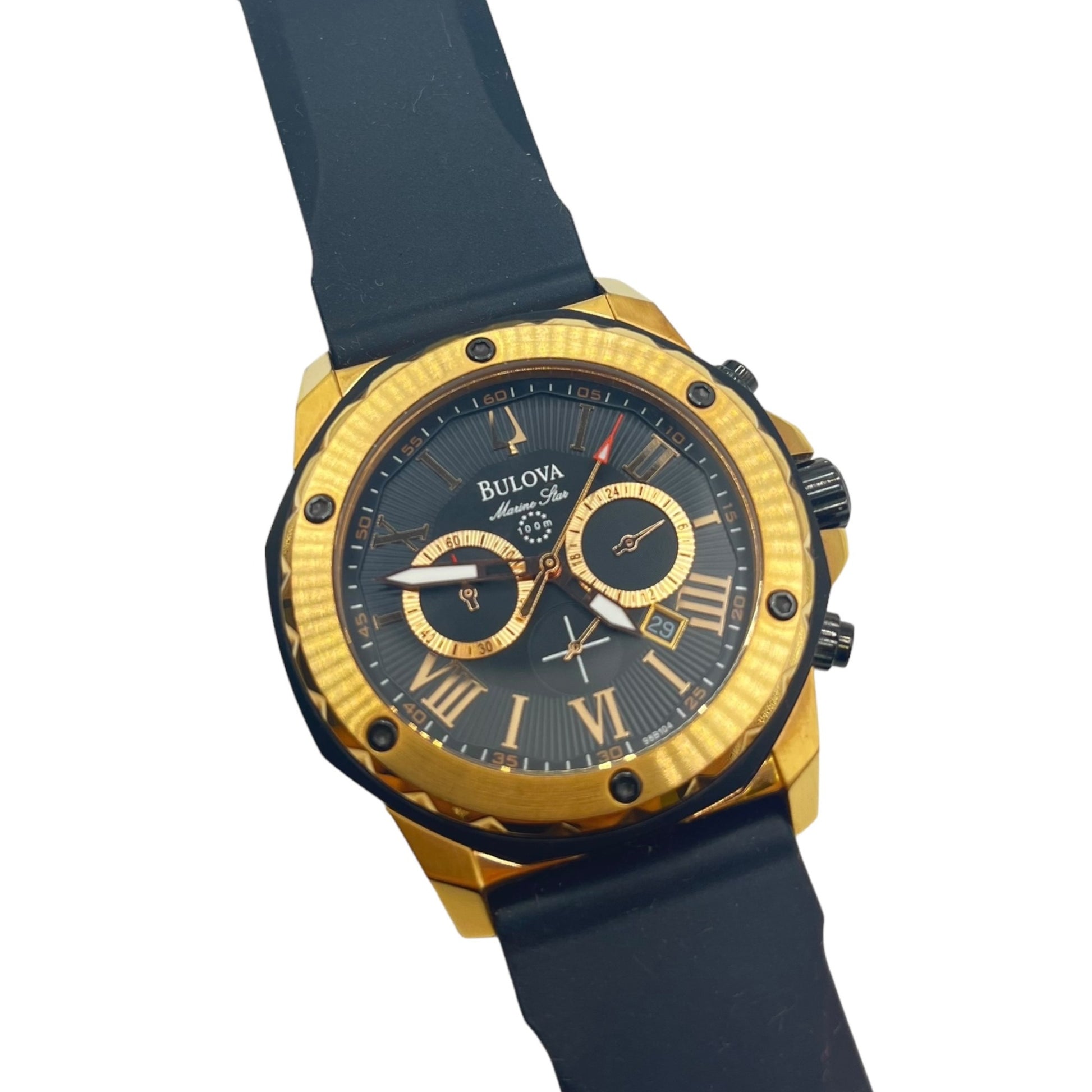 Bulova Men's Watch 96B104 Marine Star Gold Black Dial Black Rubber Strap