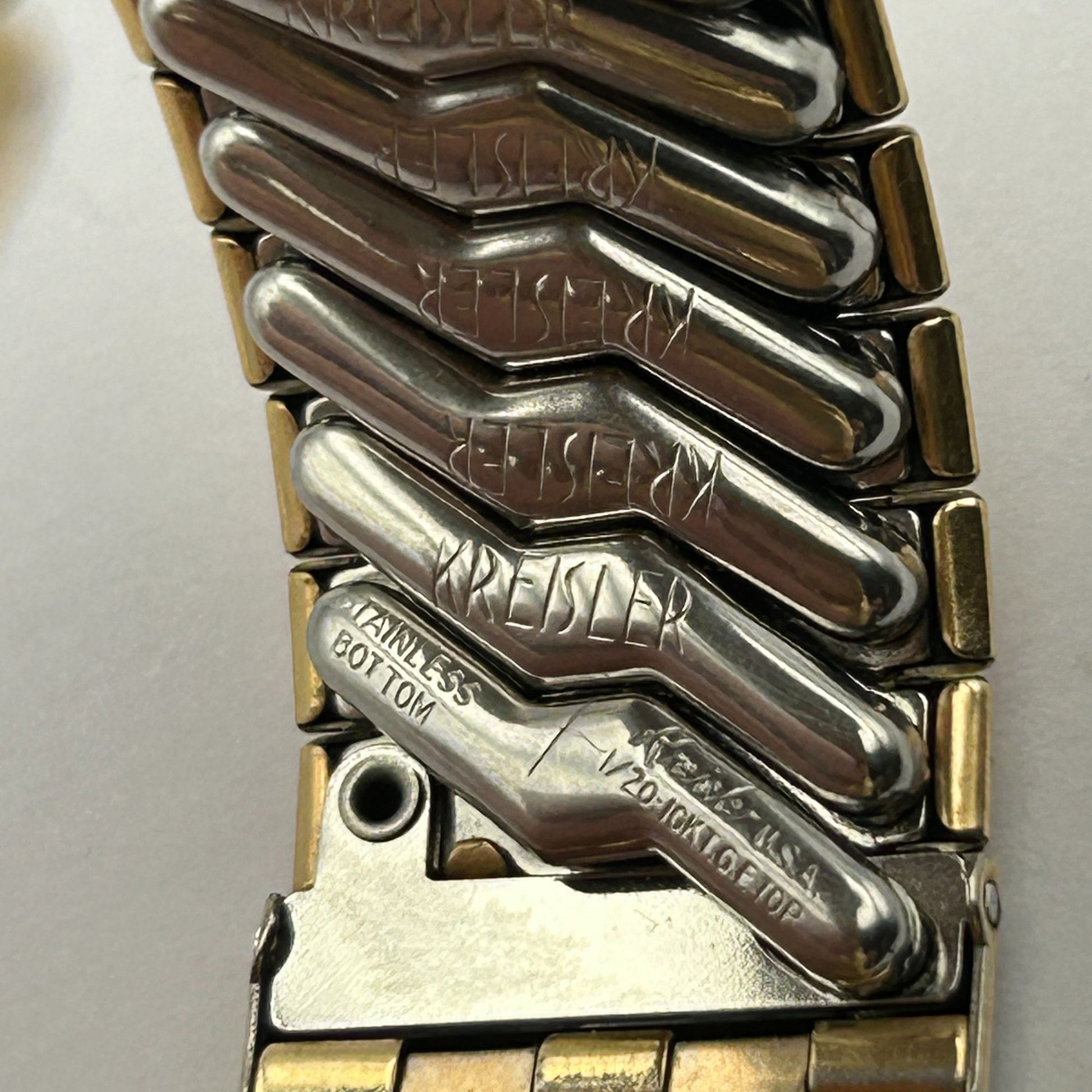 Description: Watch is in working condition and still winds perfectly fine. The strap is 'Kreisler' brand, and is made with stainless steel on the bottom and 1/20 10kT.G.F. on top. The watch has very minor scratches on the underside and a few very minor scuffs on the face of the watch. Please refer to the condition as shown in images!