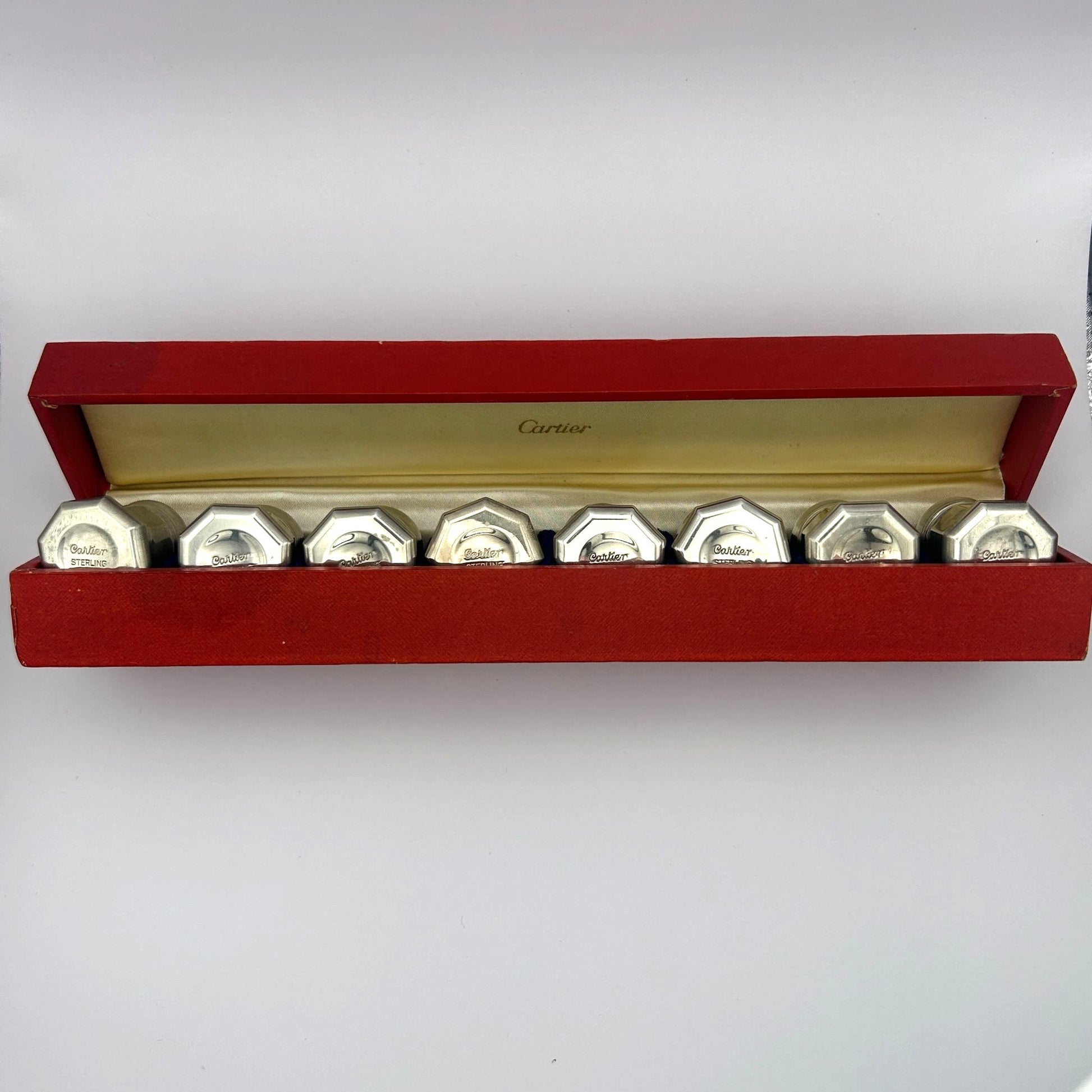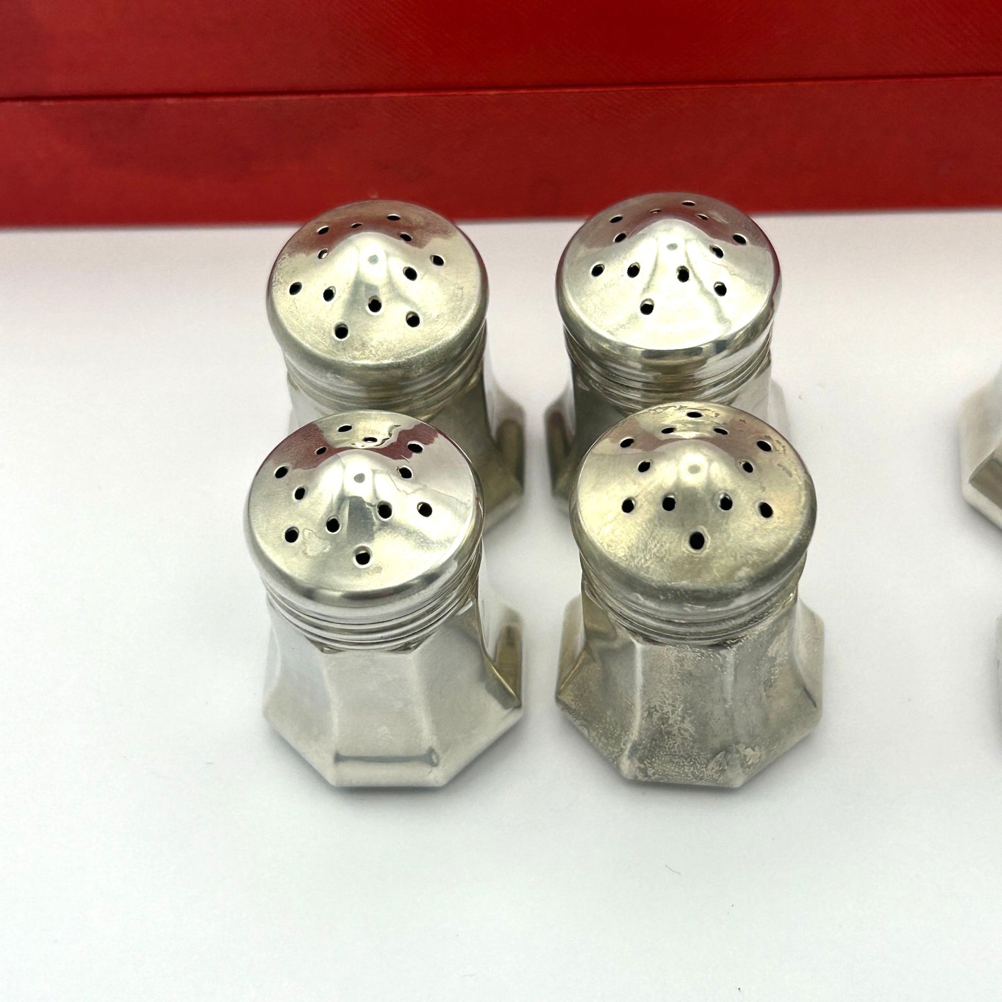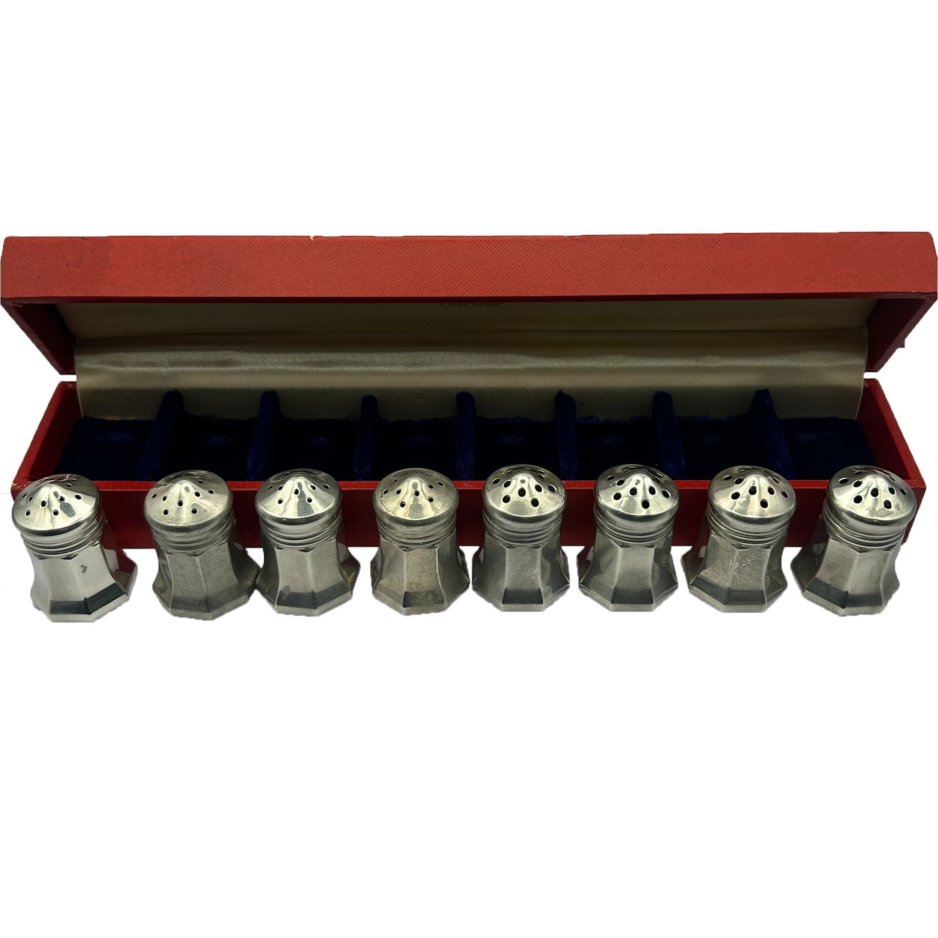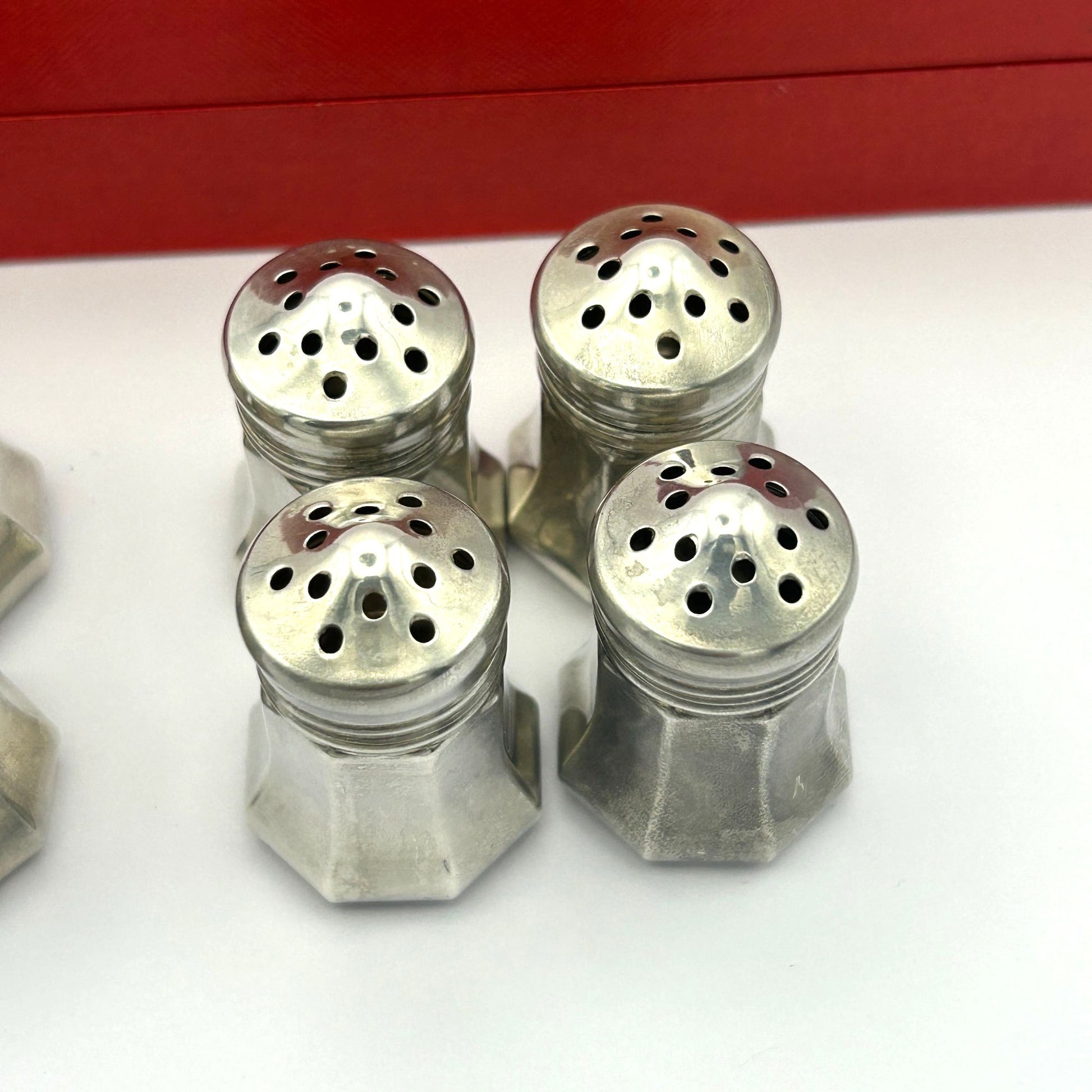 Cartier Set of 8 Sterling Silver Salt and Pepper Shakers in Original Red Box