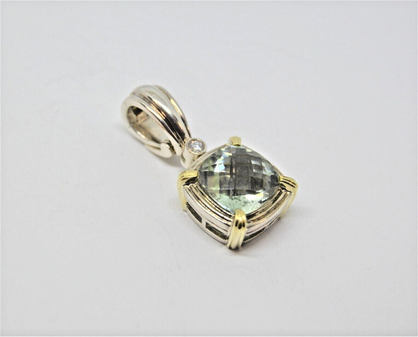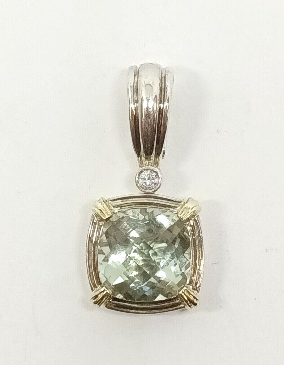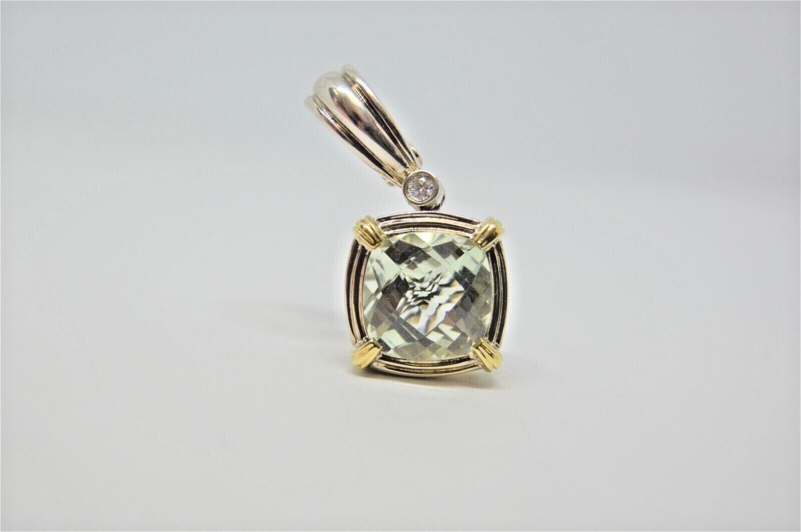 Charles Krypell Prasiolite & Diamond Sterling Silver & 14K Gold Pendant