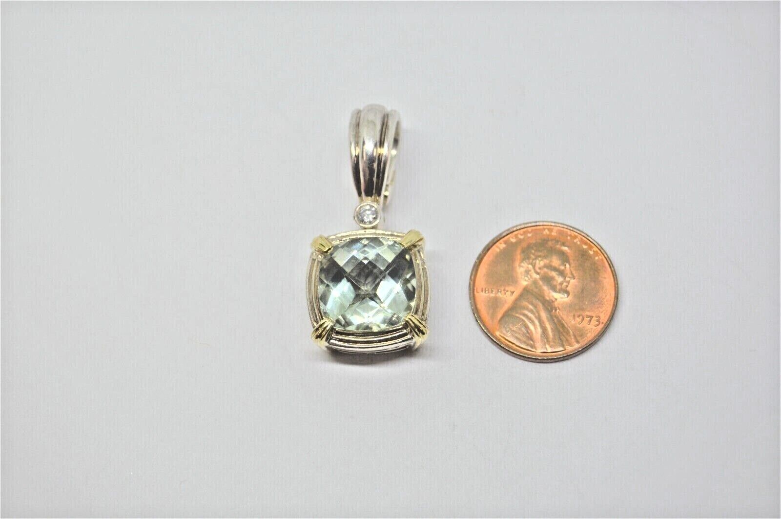 Beautiful and elegant Prasiolite & Diamond sterling silver and 14k gold pendant designed and made by Charles Krypell.