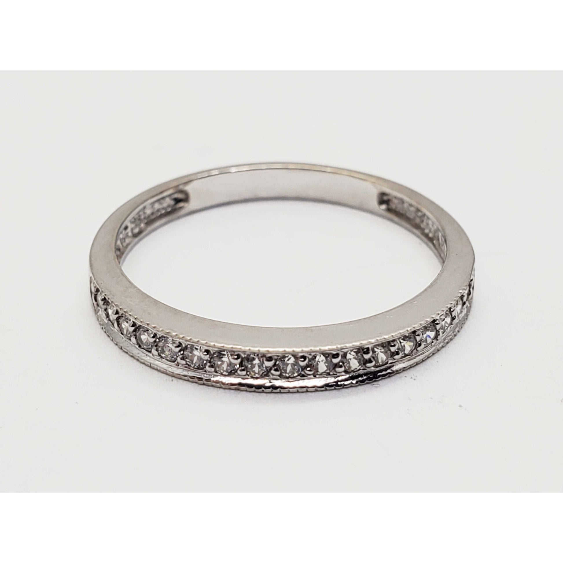 CZ Semi-Eternity Band Ring 14k White Gold Size 6