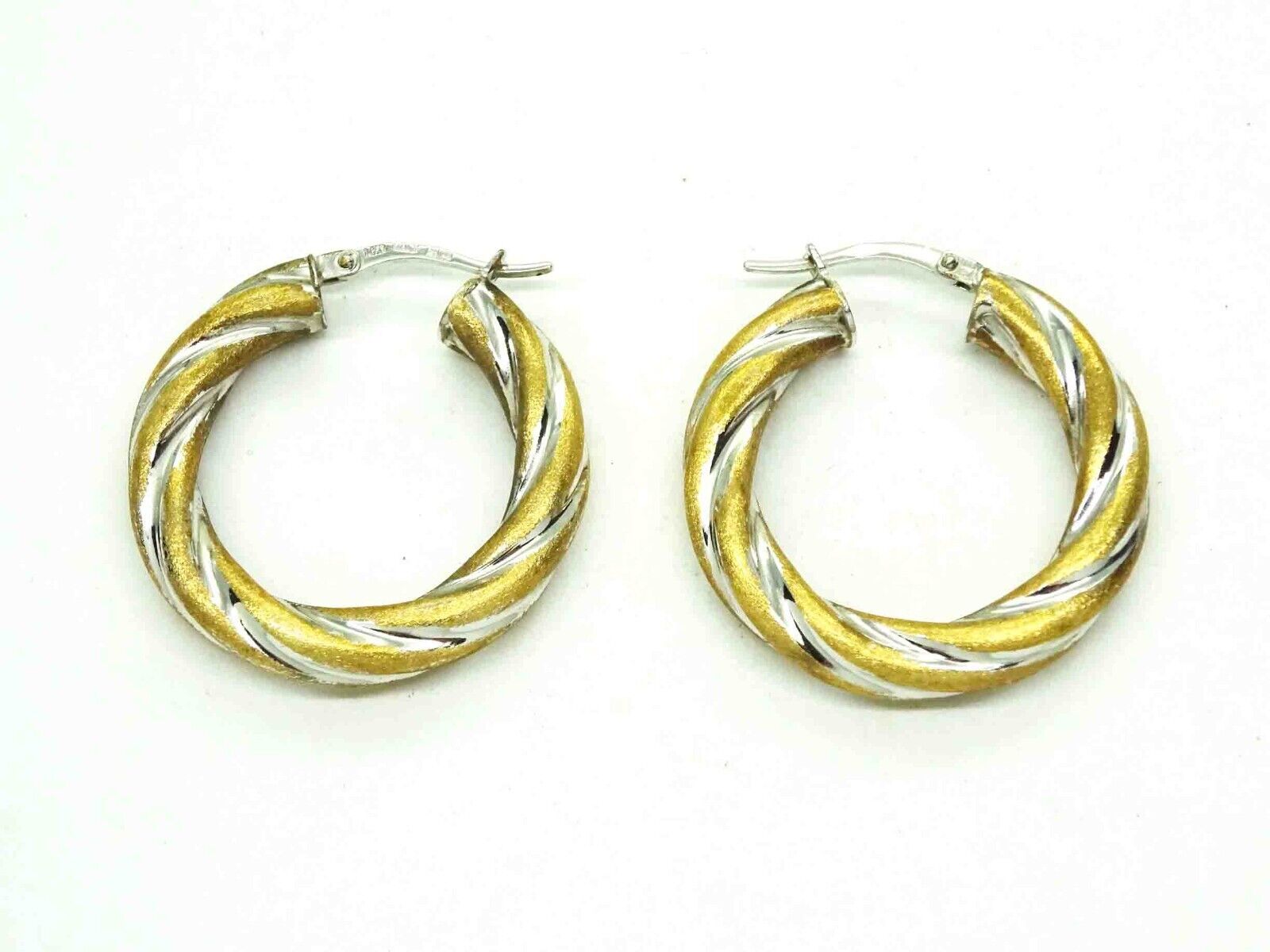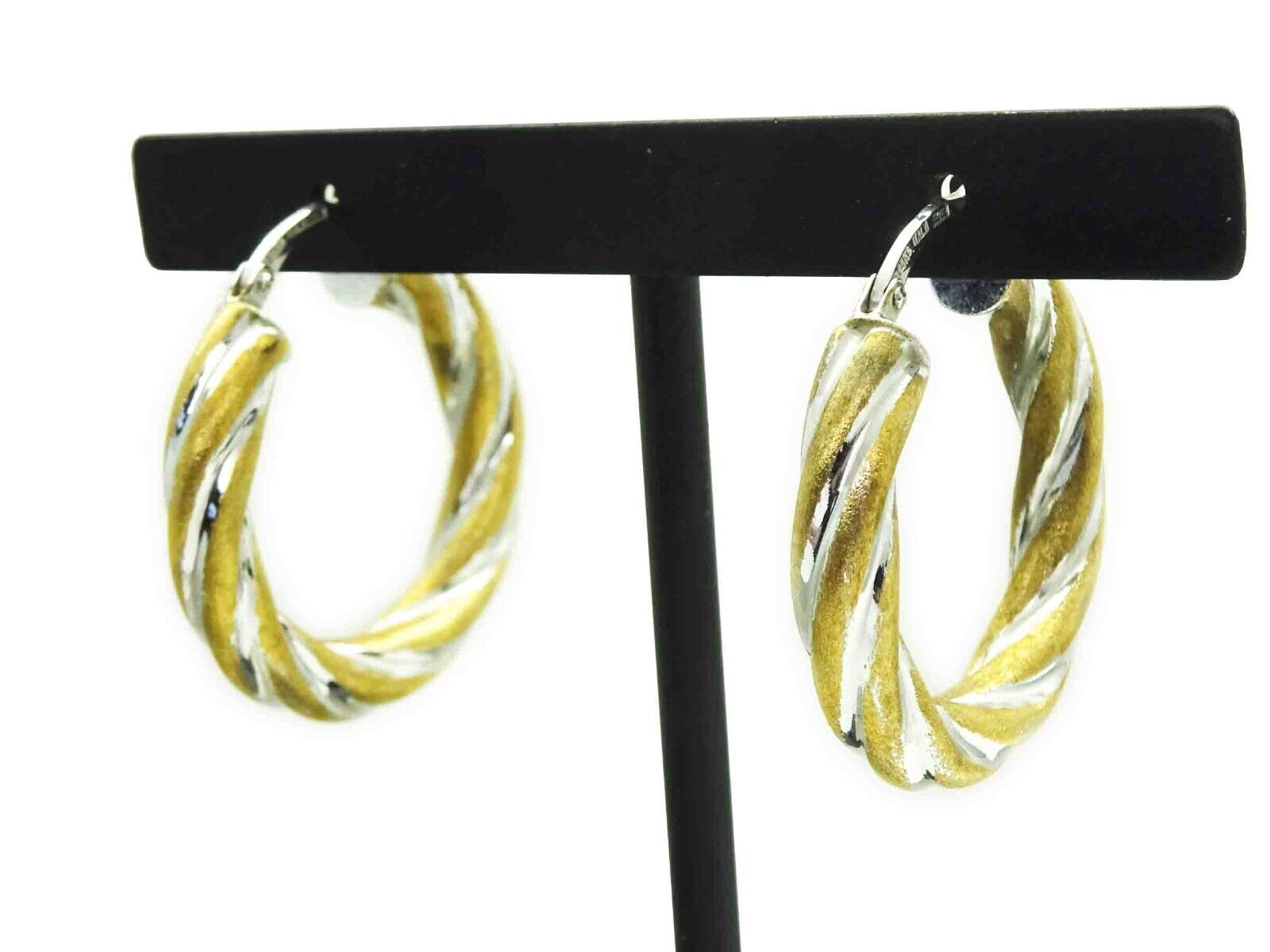 Designer OTC Italian Puffy Twist Style Hoop Earrings 14k Two-Tone Gold