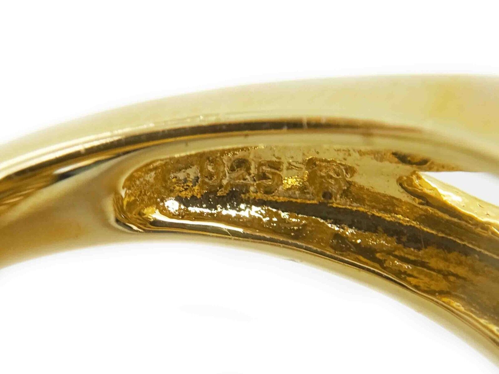 Estate Hand Carved Oxblood Red Coral & White Topaz Sterling Vermeil Ring Size 8