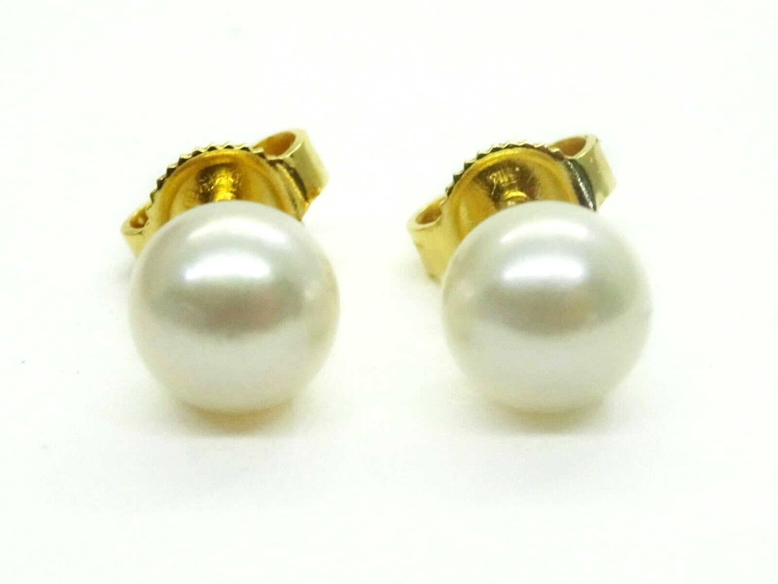 Estate Mikimoto 6mm Pearl Stud Earrings 18k Gold