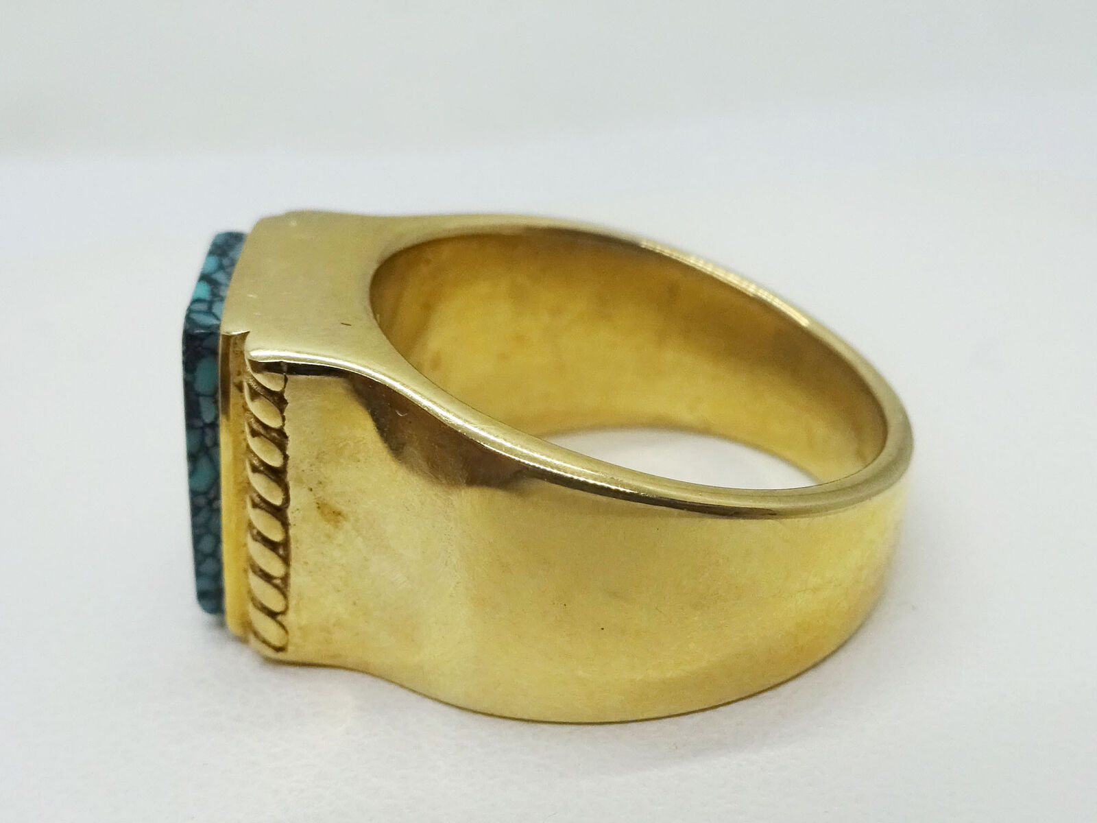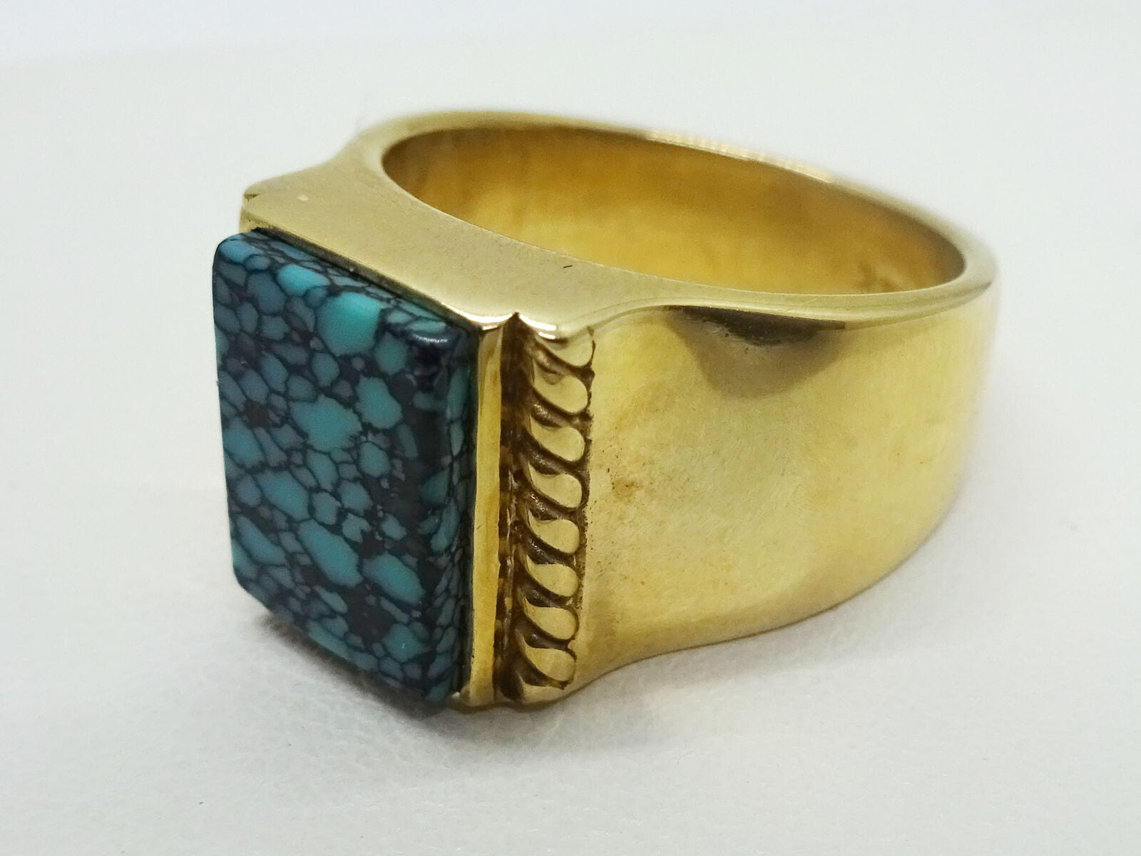 Genuine Carusetta Spider Web Turquoise & 14k Yellow Gold Ring, Size 6.5