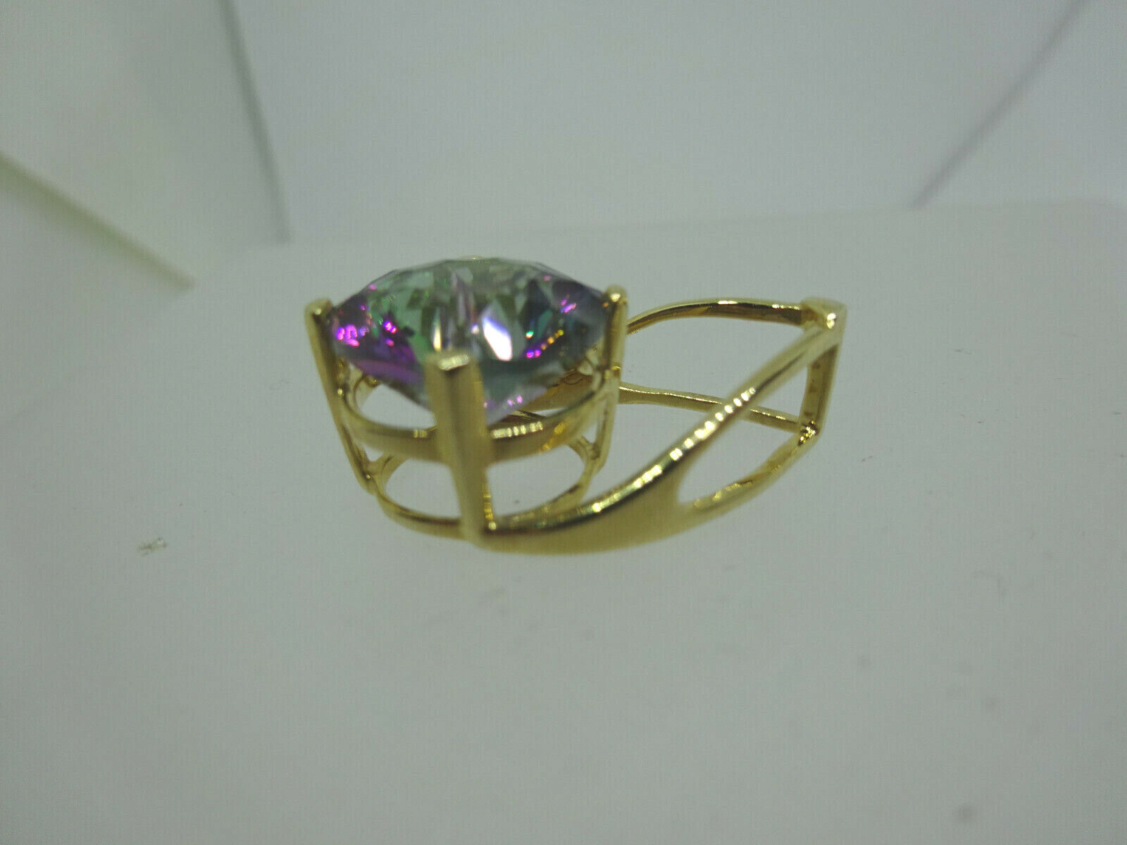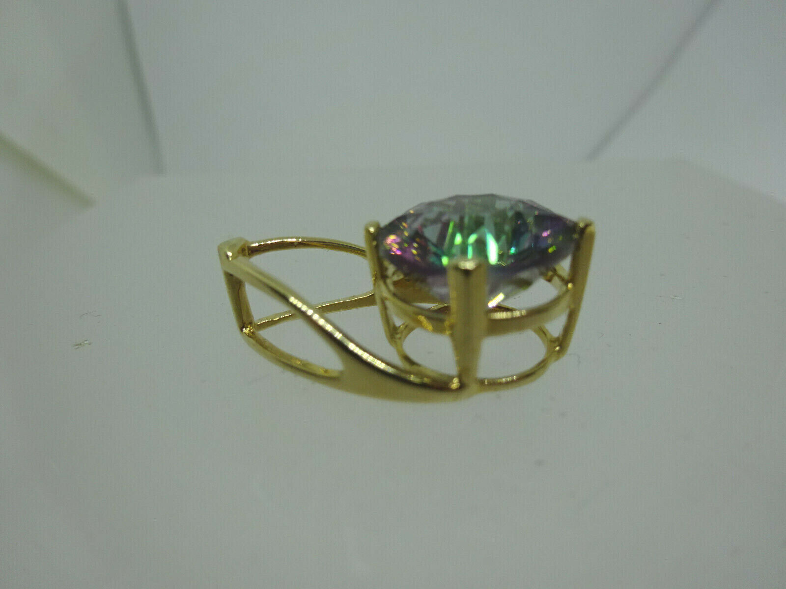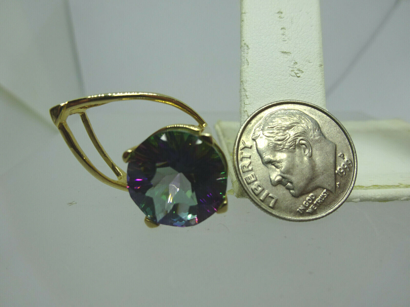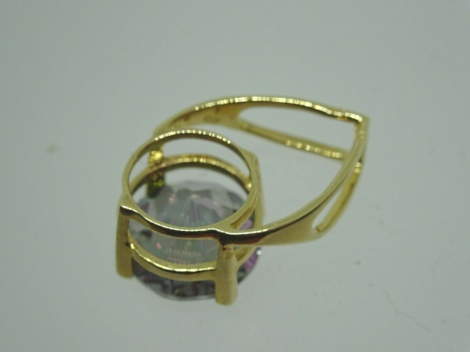 Round Natural Mystic Topaz Pendant 10k Gold 4.3 Grams