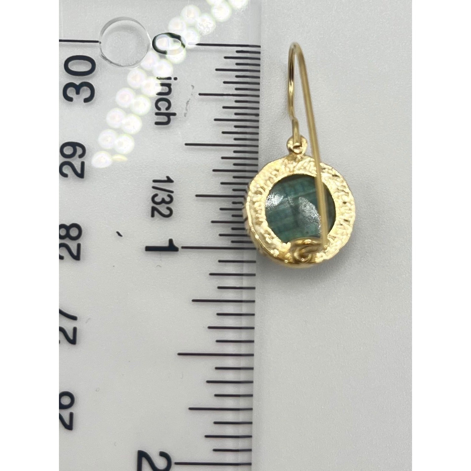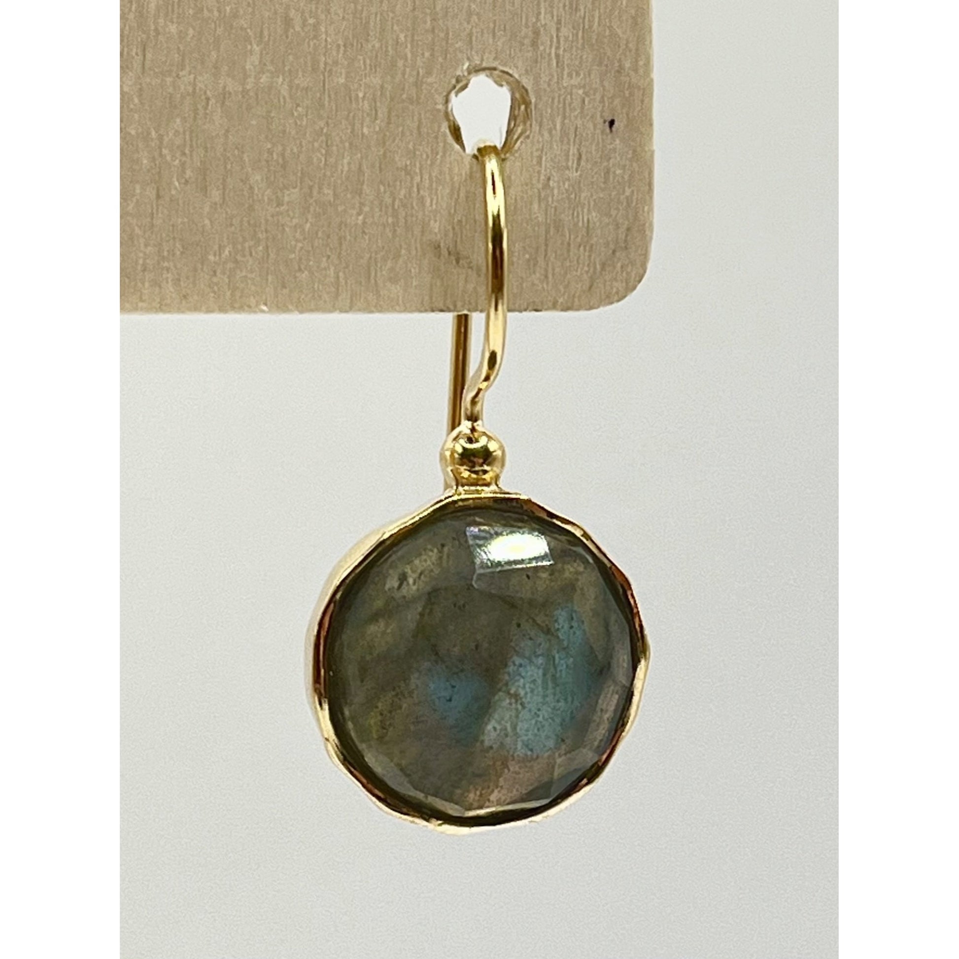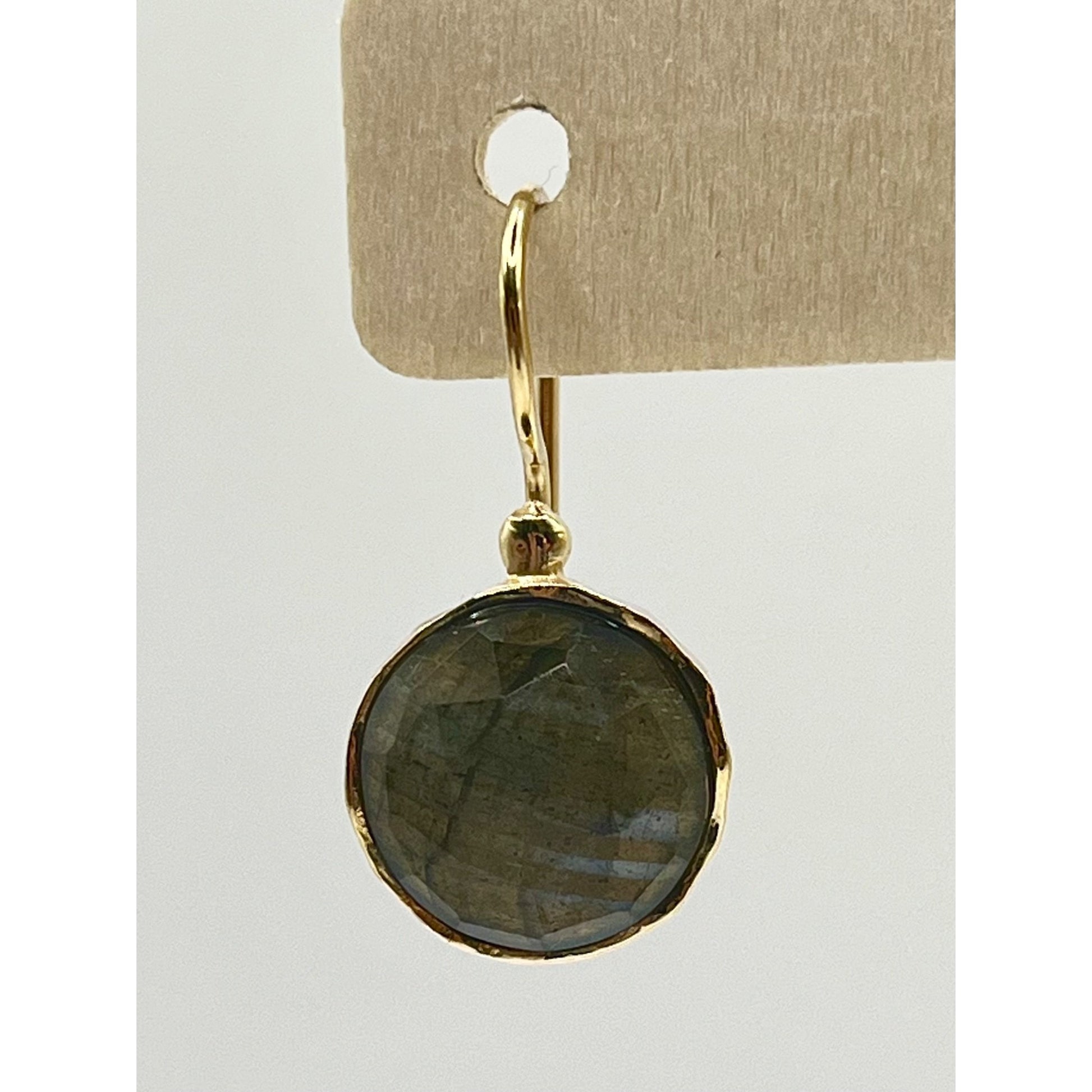 Gold Layered Sterling Silver Labradorite Bezel Round Pendant Dangle Earrings