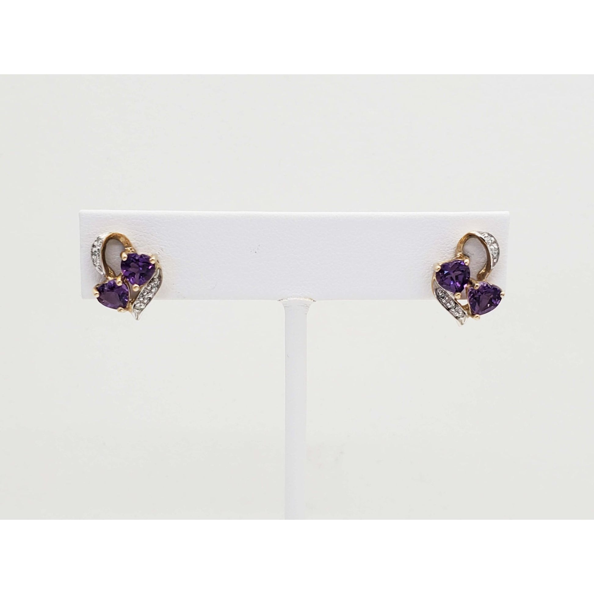 Heart-Themed Amethyst & Diamond Accent Openwork Stud Earrings 10k Gold
