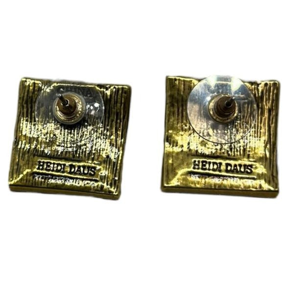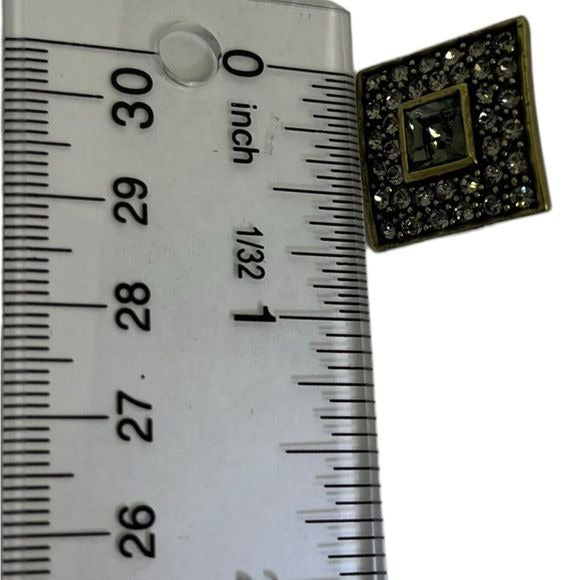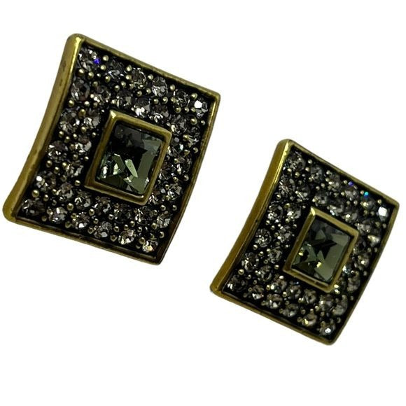 Heidi Daus Bronze Tone Square Rhinestone Women's Post Earrings Pierced Ear Pavé