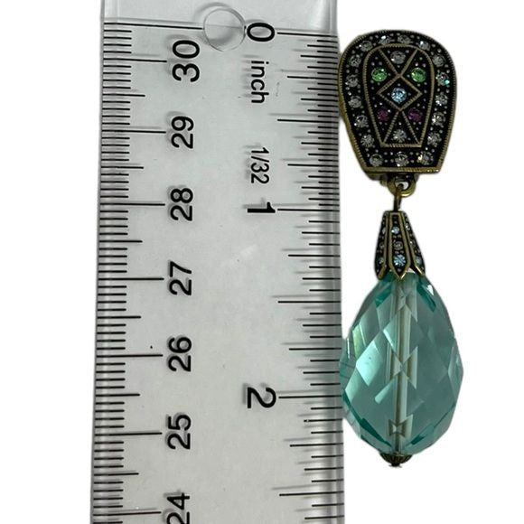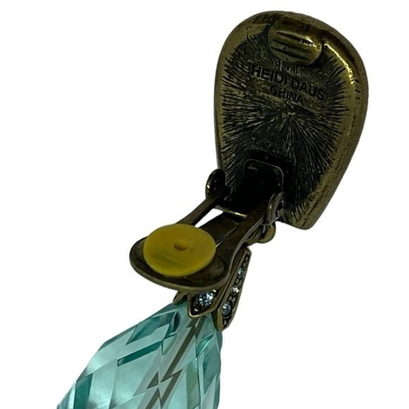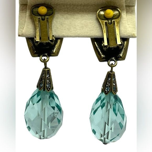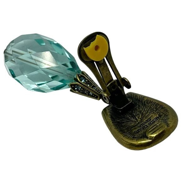 Heidi Daus Multicolor Crystal Faceted Blue Glass Dangle Womens Clip On Earrings