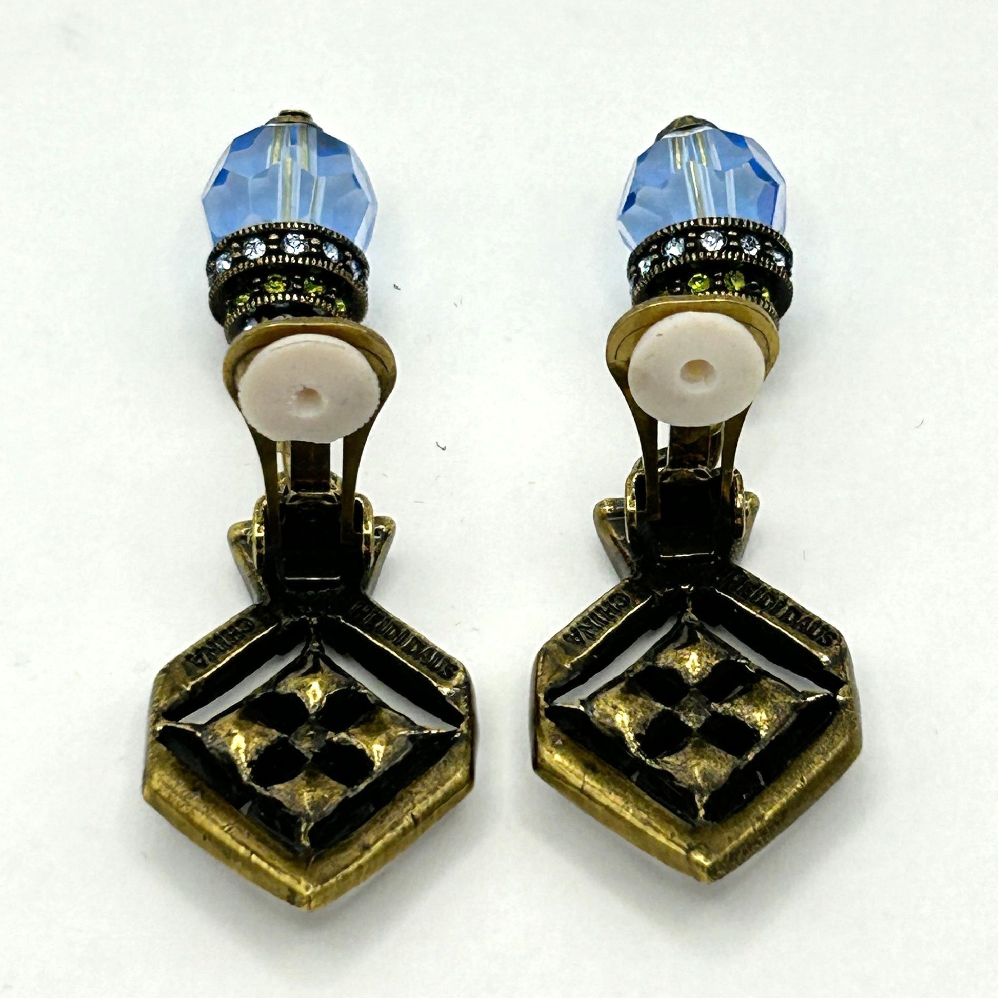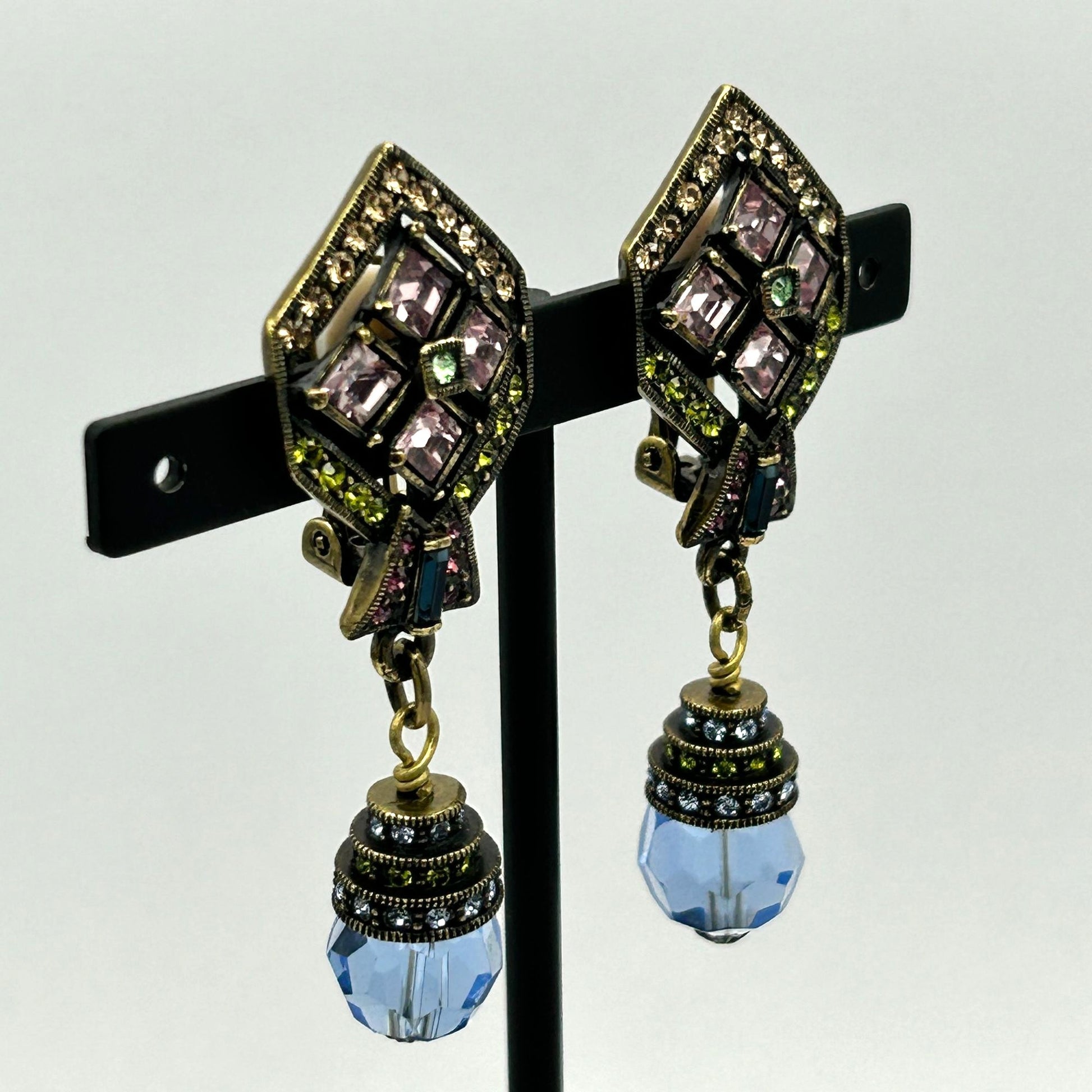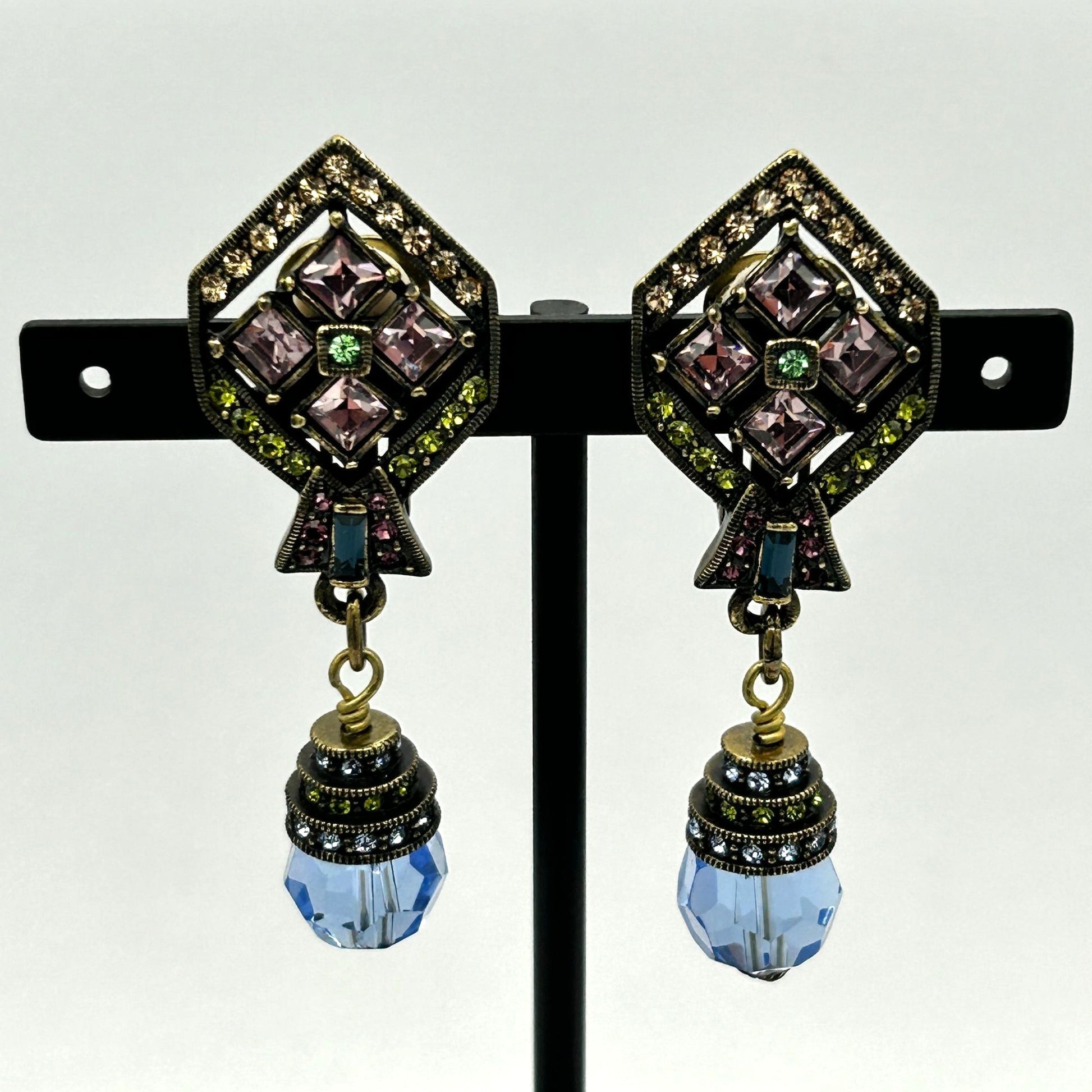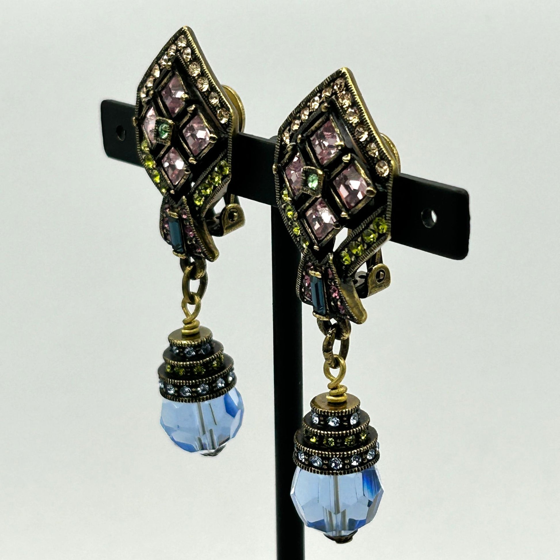 Heidi Daus Rhinestone Blue Glass Drop Dangle Women's Clip on Earrings Multicolor