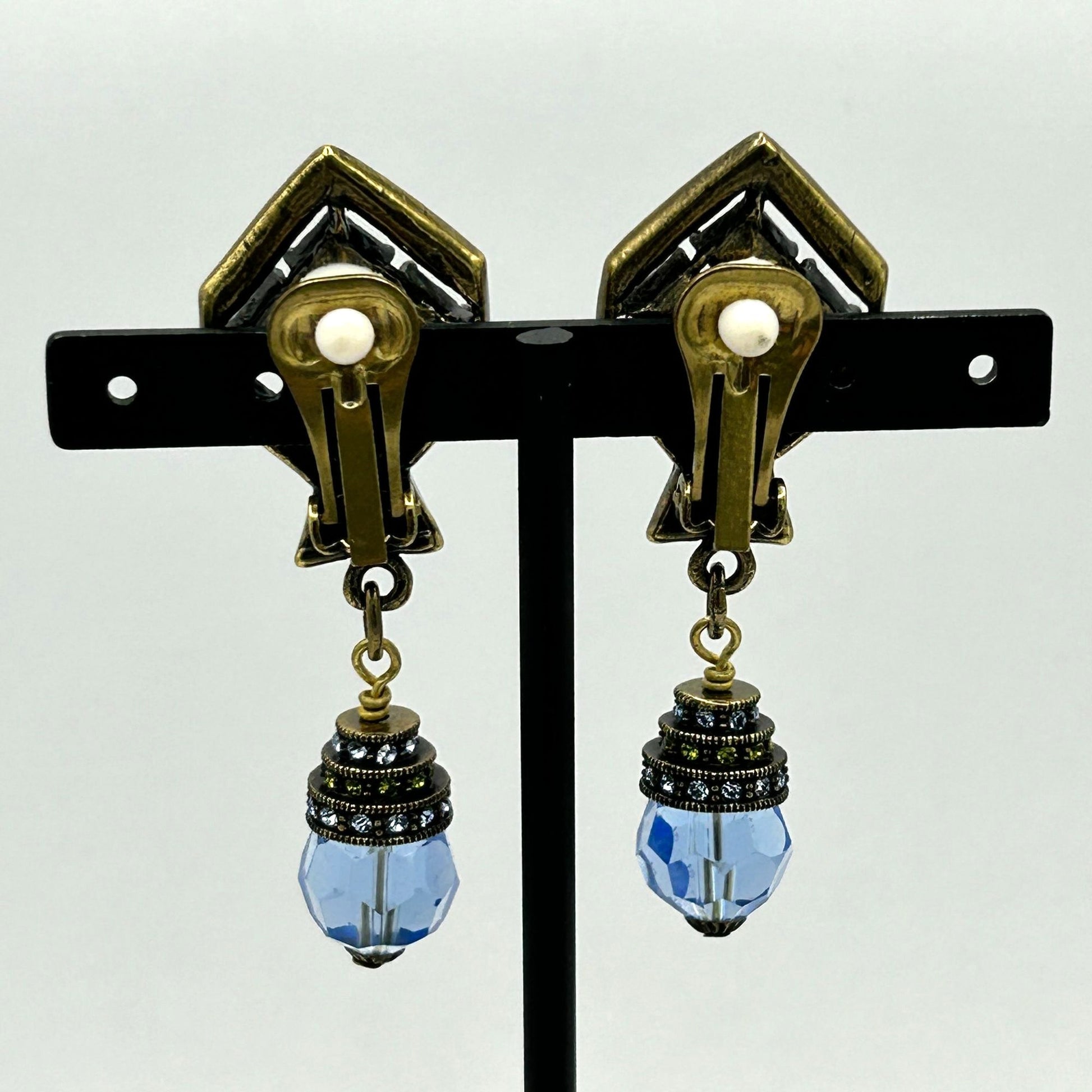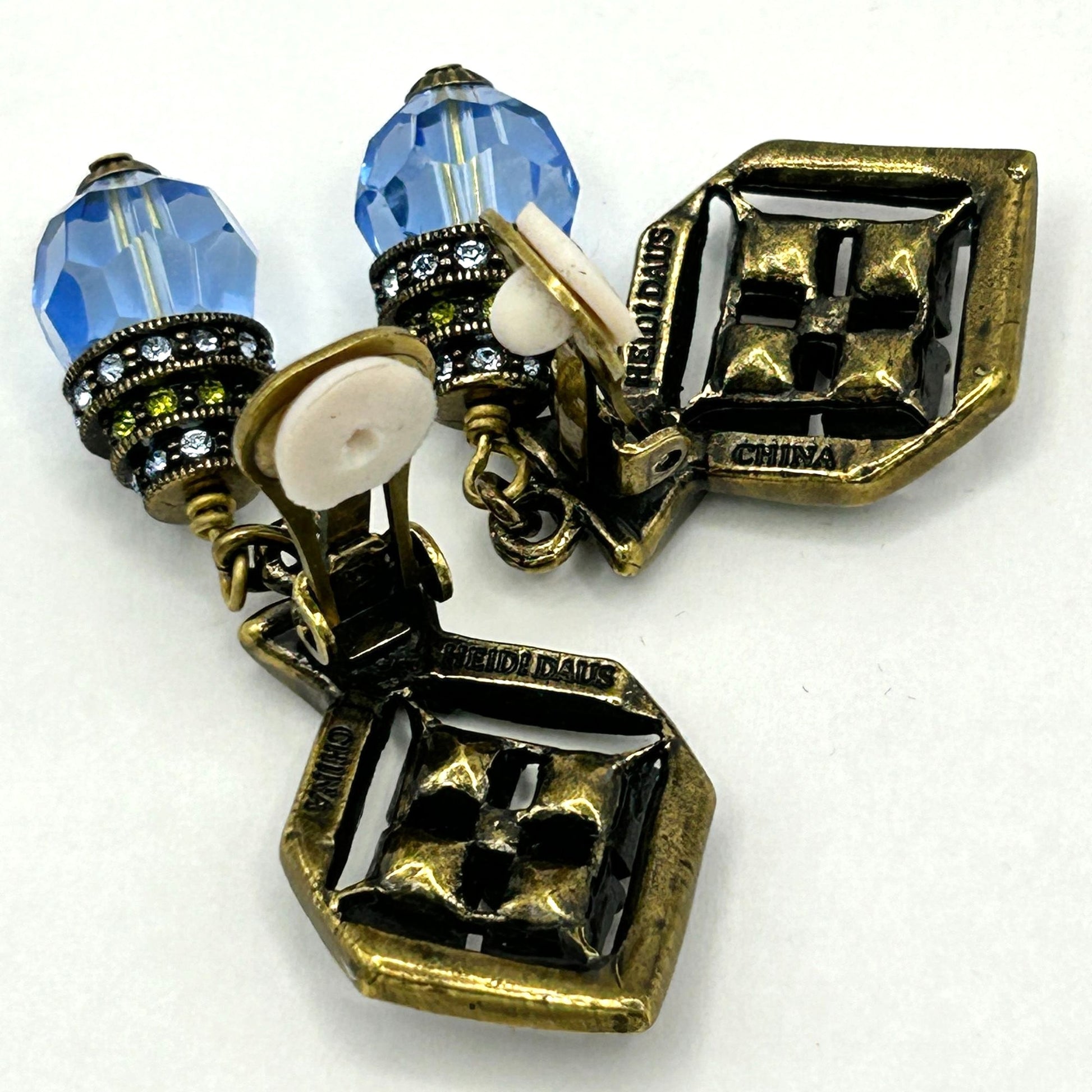 Heidi Daus Rhinestone Blue Glass Drop Dangle Women's Clip on Earrings Colorful