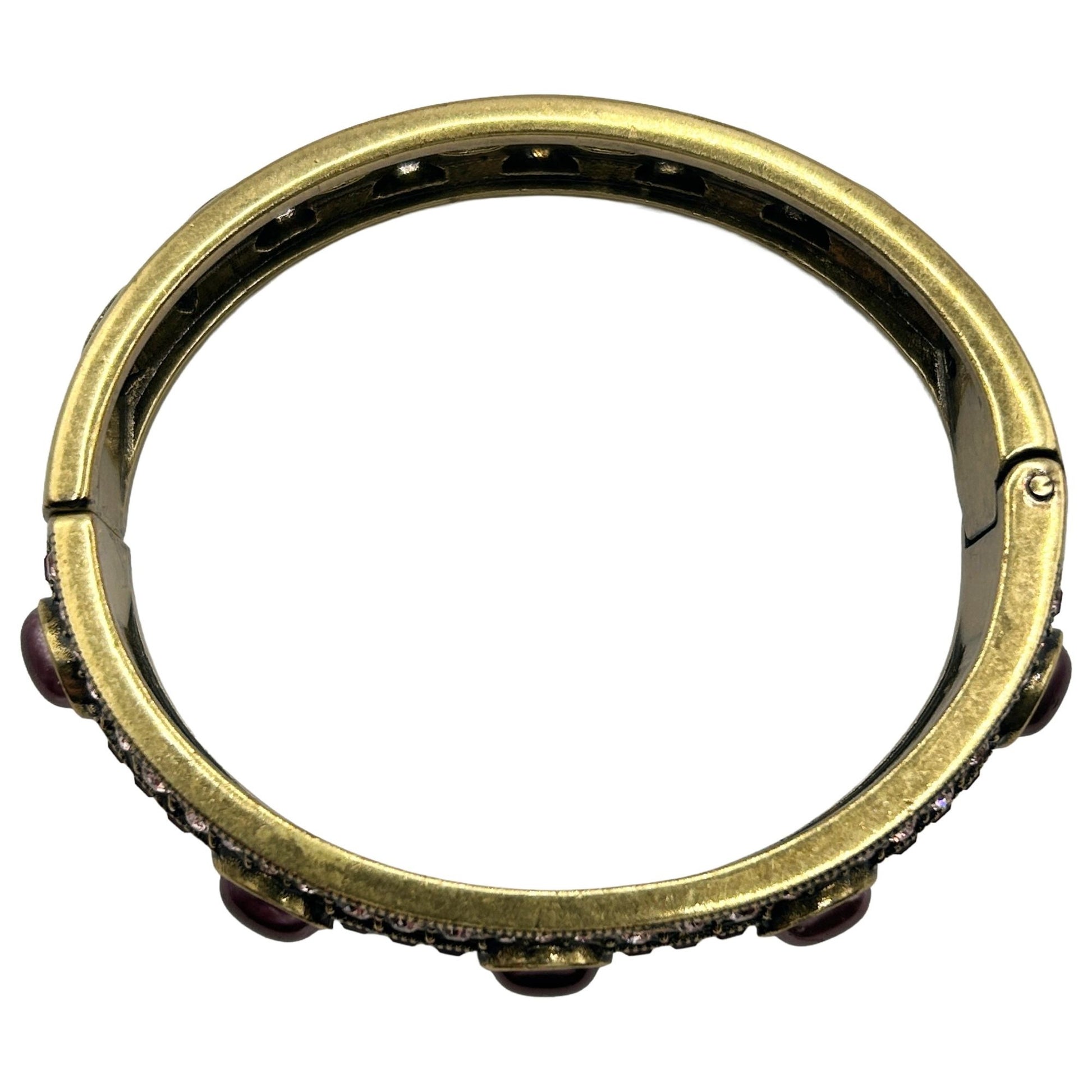 Heidi Daus Vintage Pink Crystal Purple Faux Pearl Hinged Bangle Bracelet