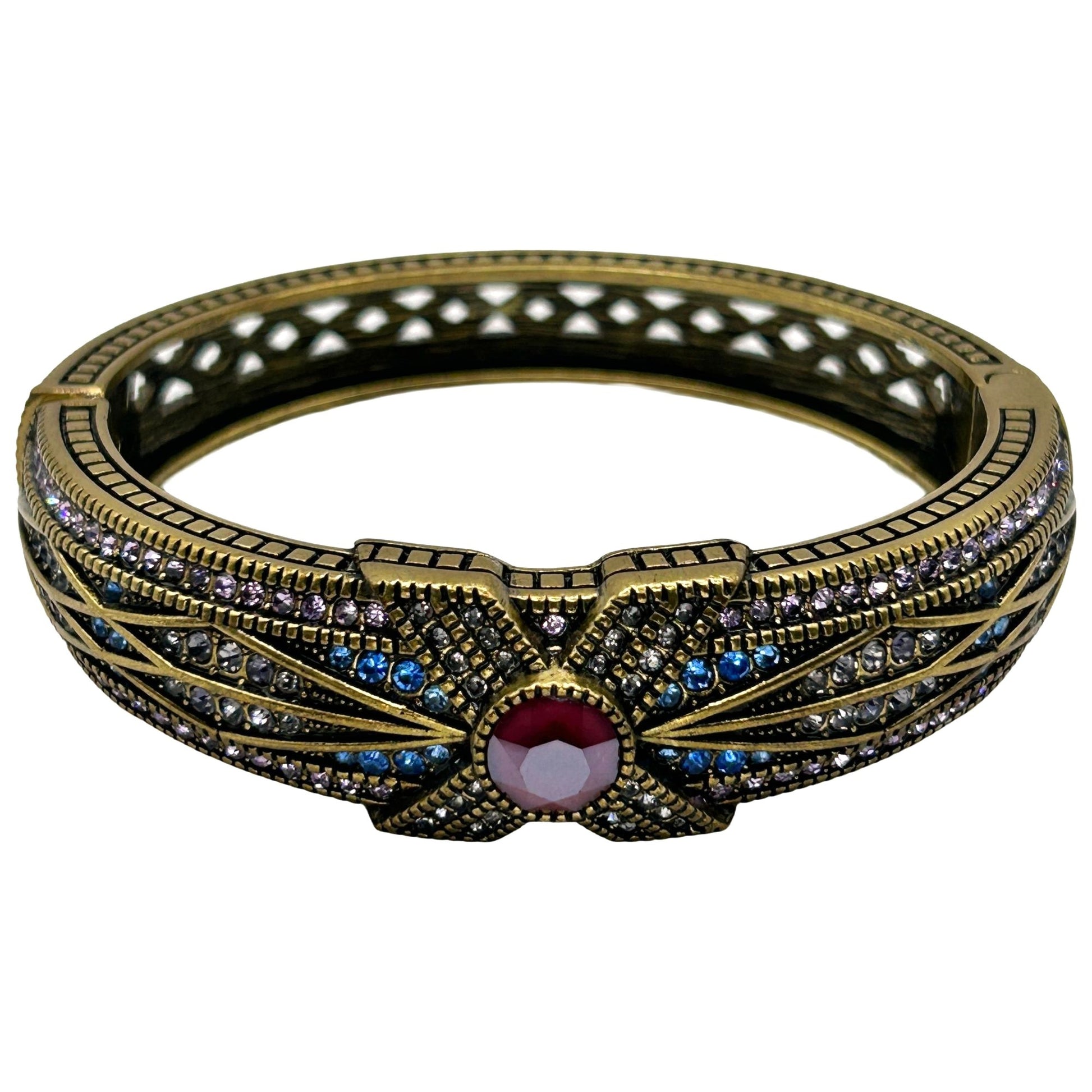 Heidi Daus Vintage "Tapered X" Red/ Purple/ Blue Crystal Cuff Bracelet