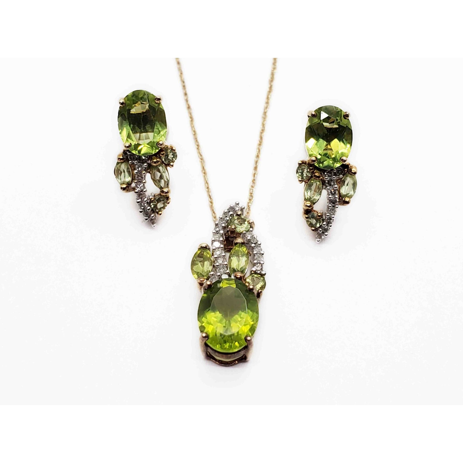 Heng Ngai Oval Peridot & Diamond Accent Pendant & Earrings Set 10k Gold