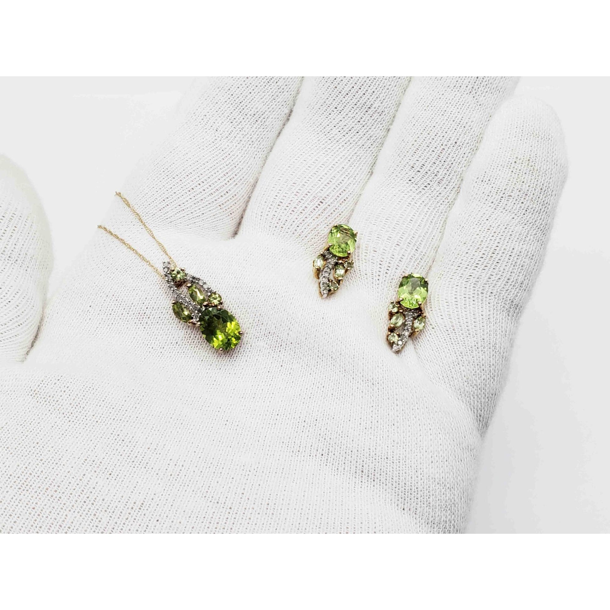 The jewelry set has a total of 15 oval, round and marquise natural peridots, and 33 round brilliant natural earth mined diamonds.