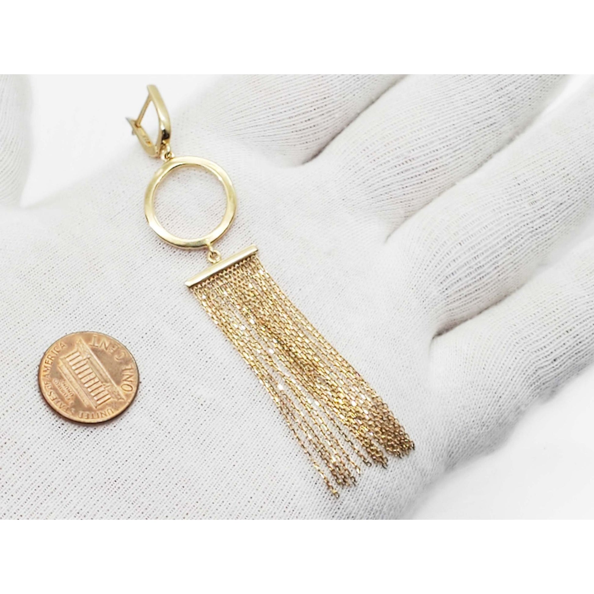 Italian Chandelier Curtain Dangle Drop Leverback Earrings 14k Gold