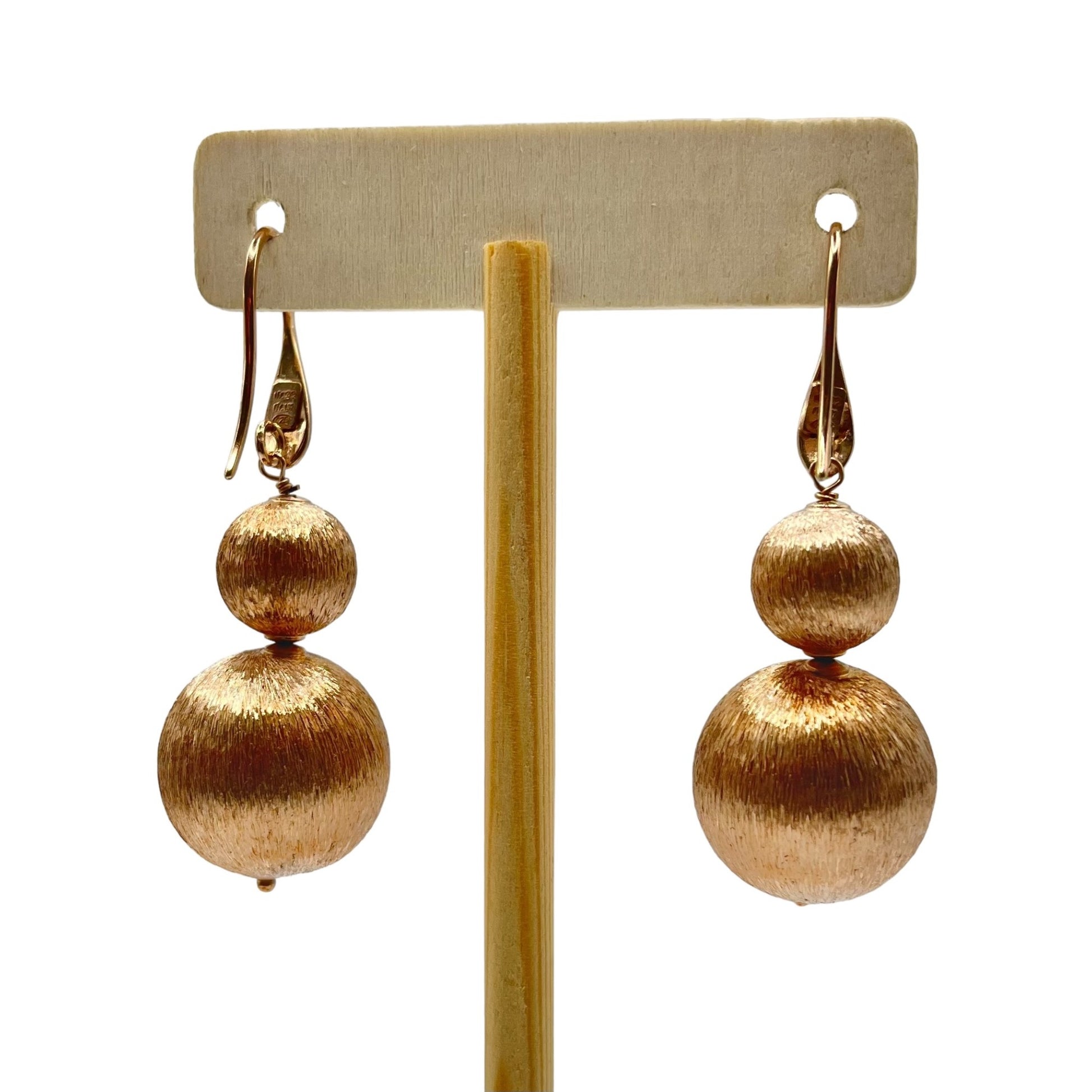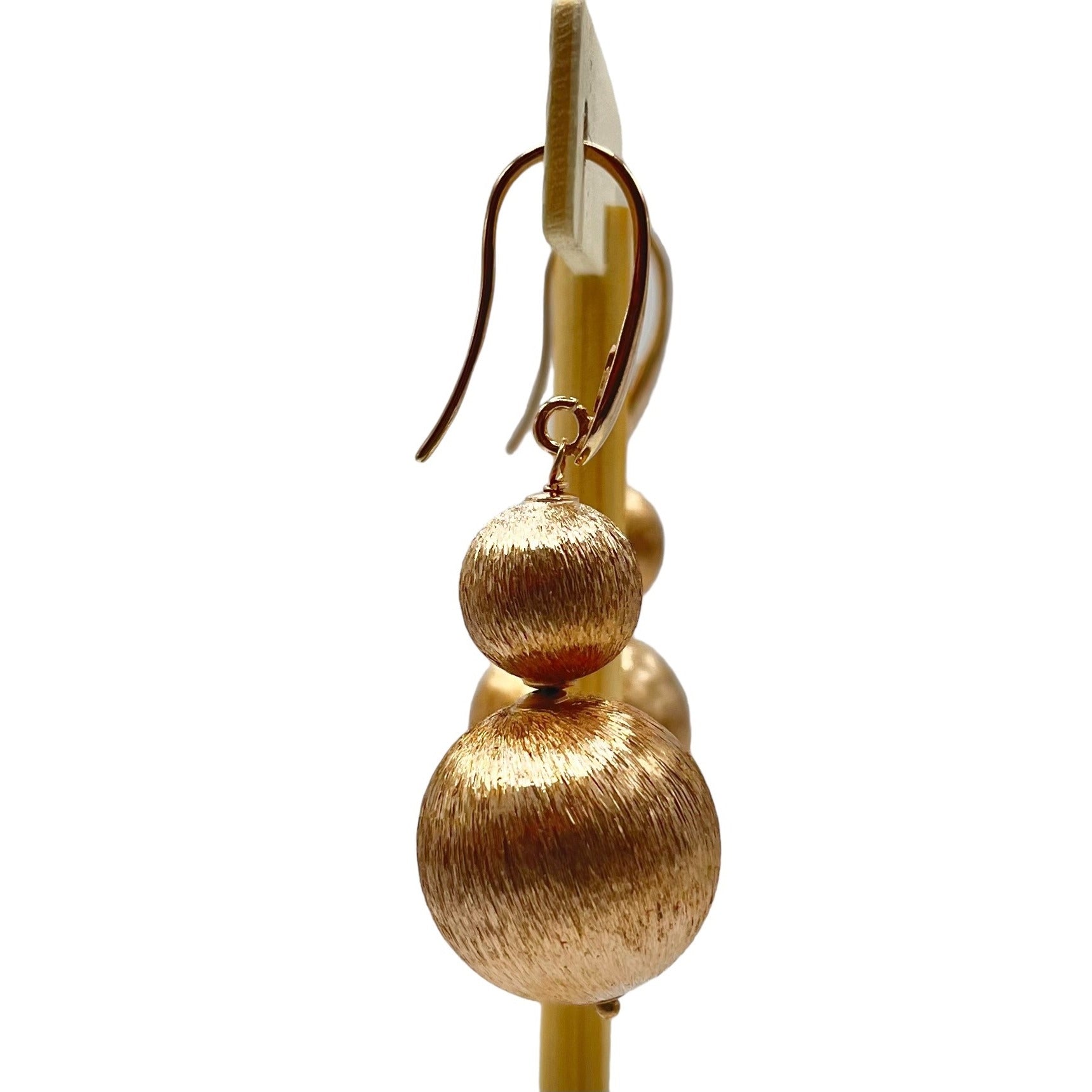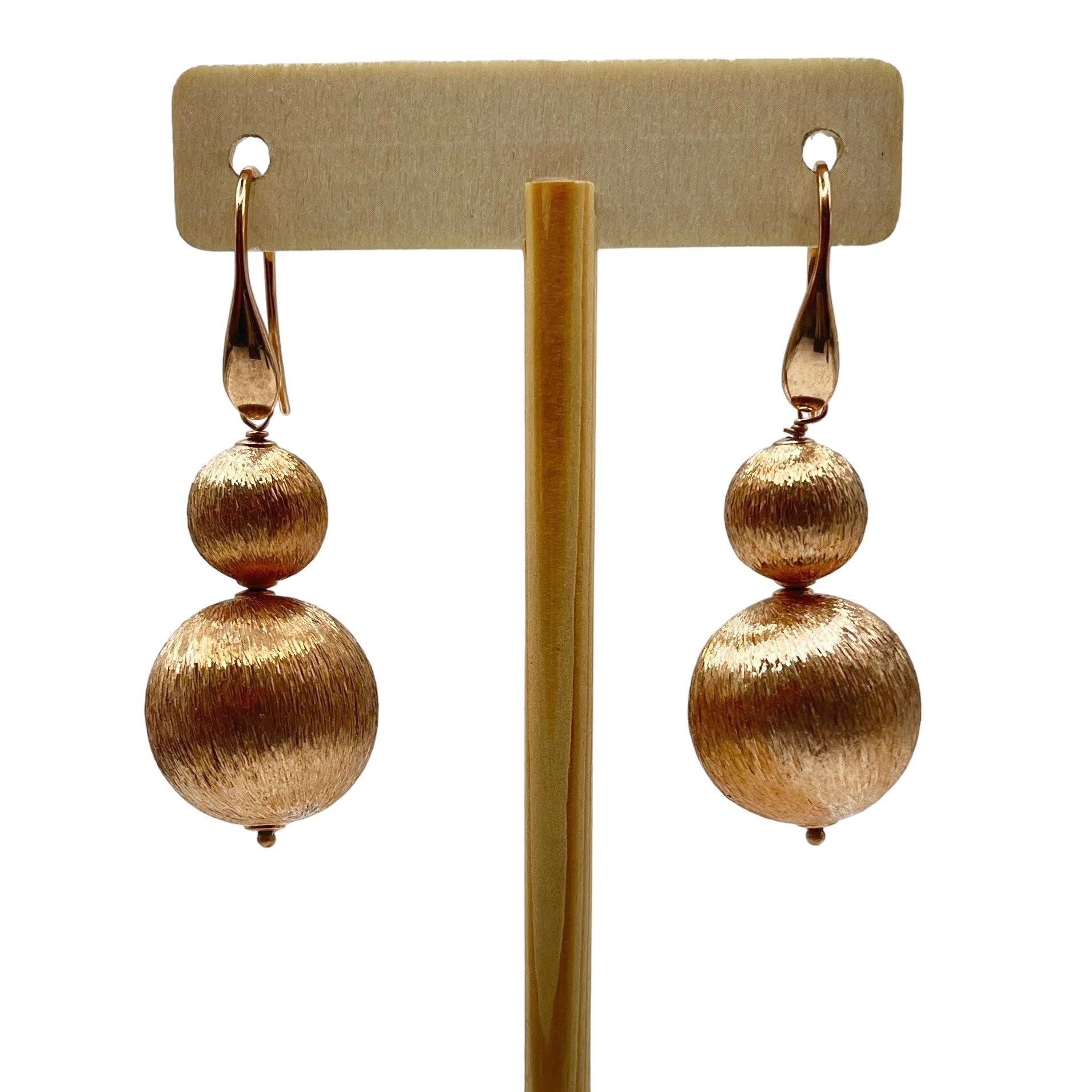 Itaor Italy Sterling Silver Rose Gold Overlay Textured Ball Dangle Drop Earrings