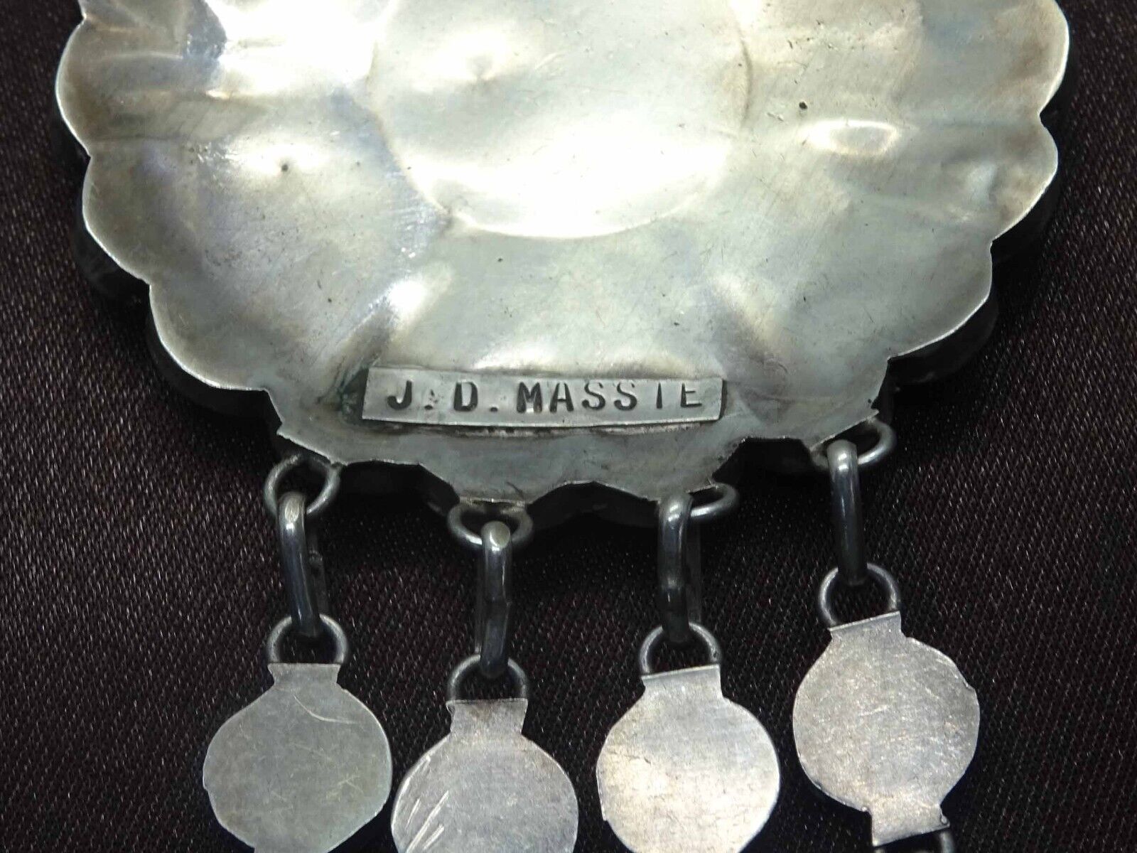 Signed J.D. Massie. Not marked, but tested to be sterling silver.