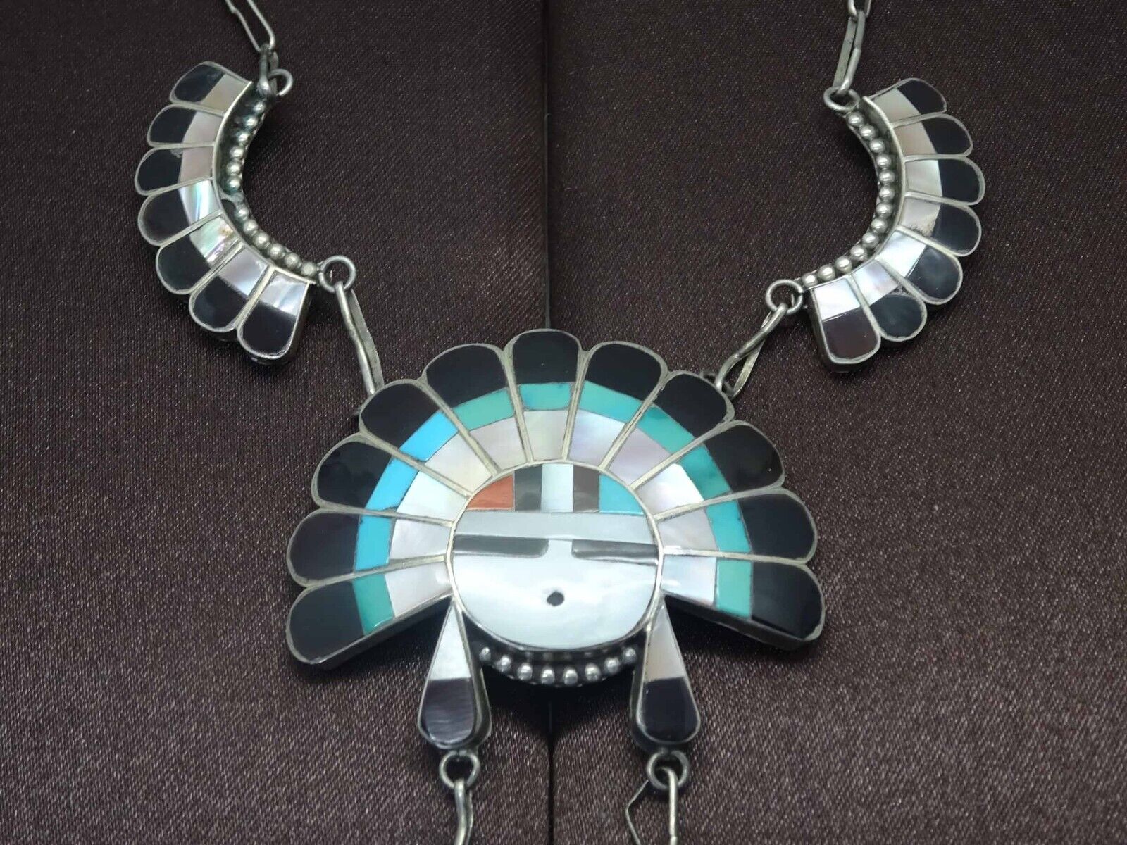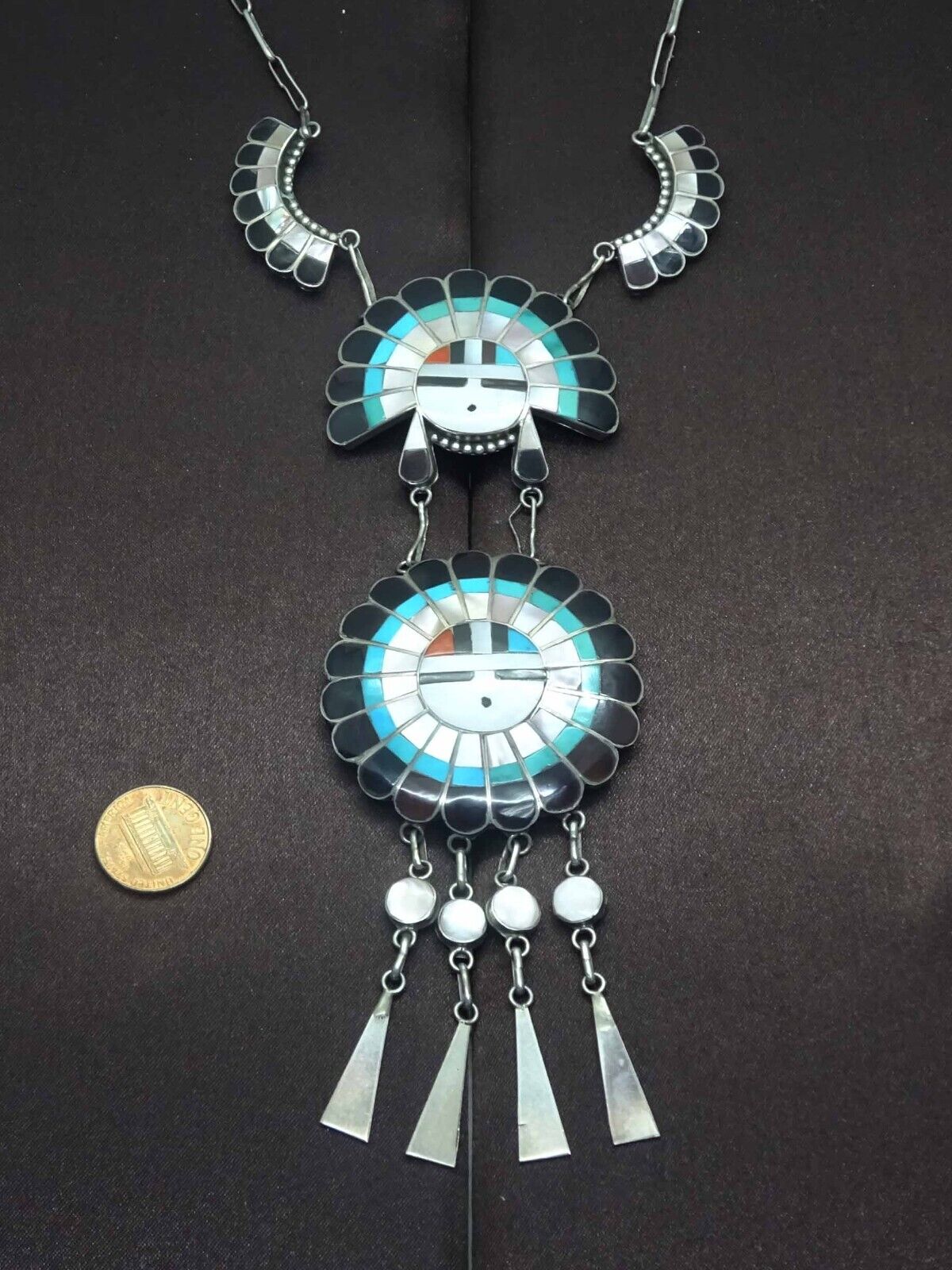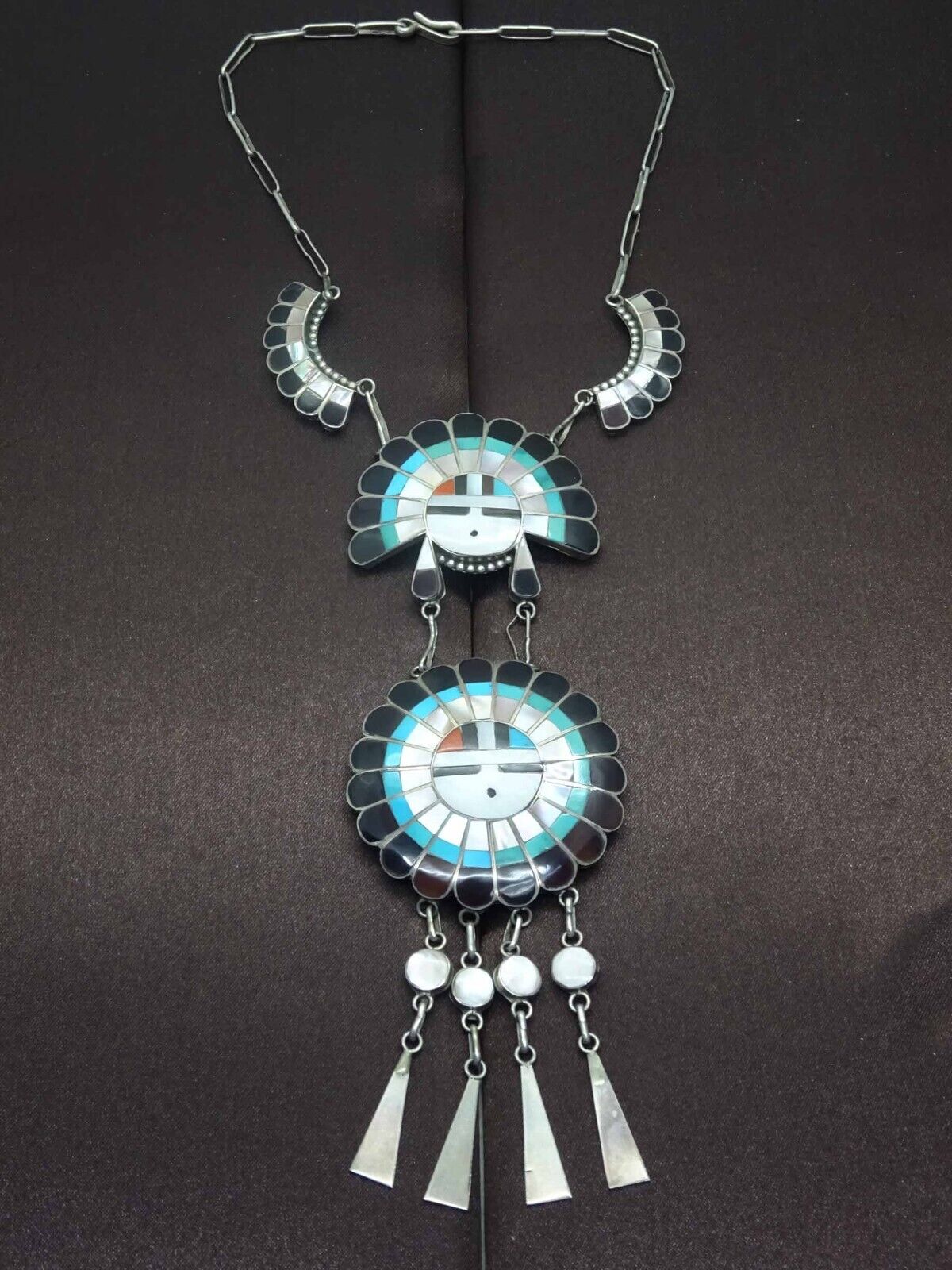This lovely estate Zuni Sun God Necklace by J.D. (Jose & Dora) Massie is a gorgeous piece of Native American Zuni jewelry.