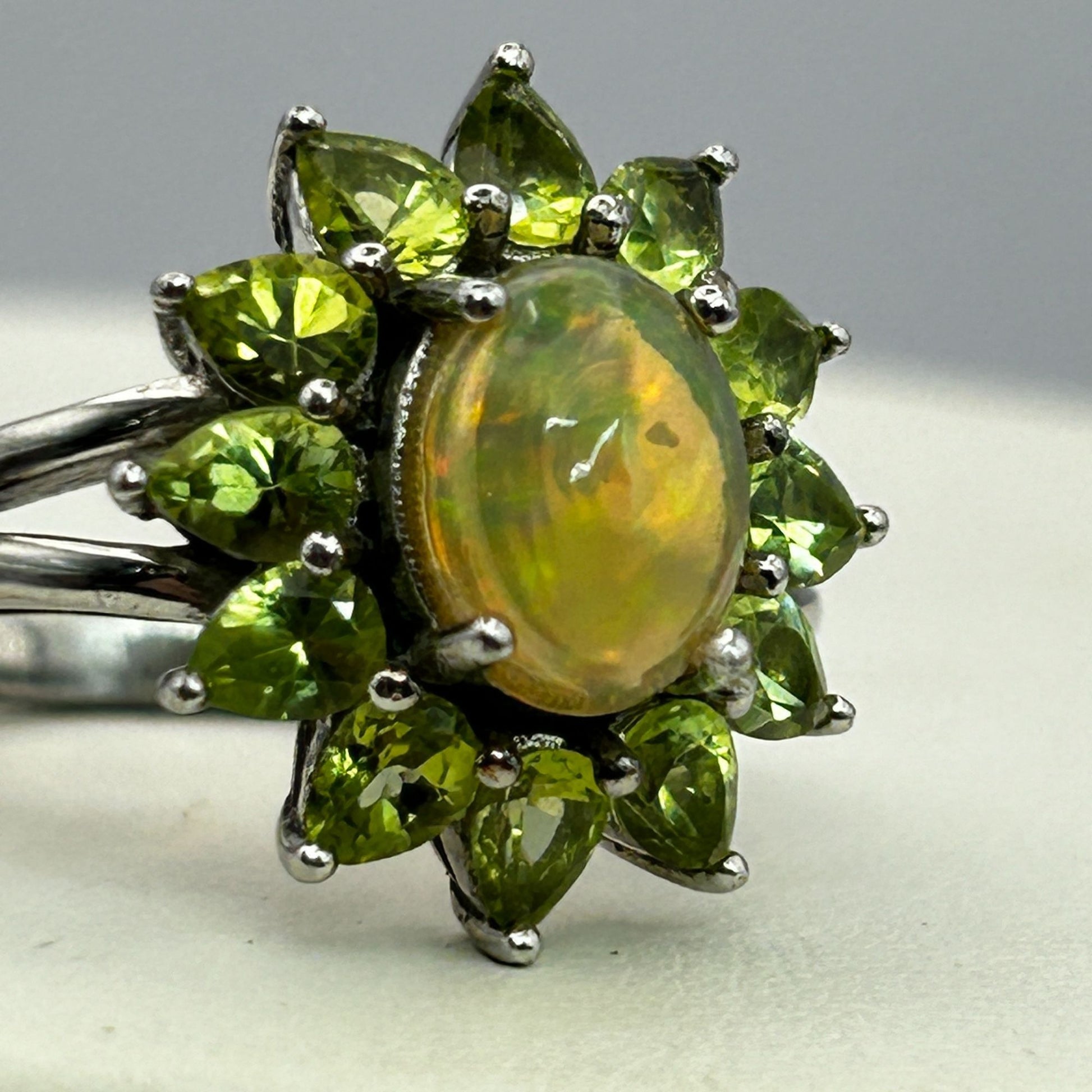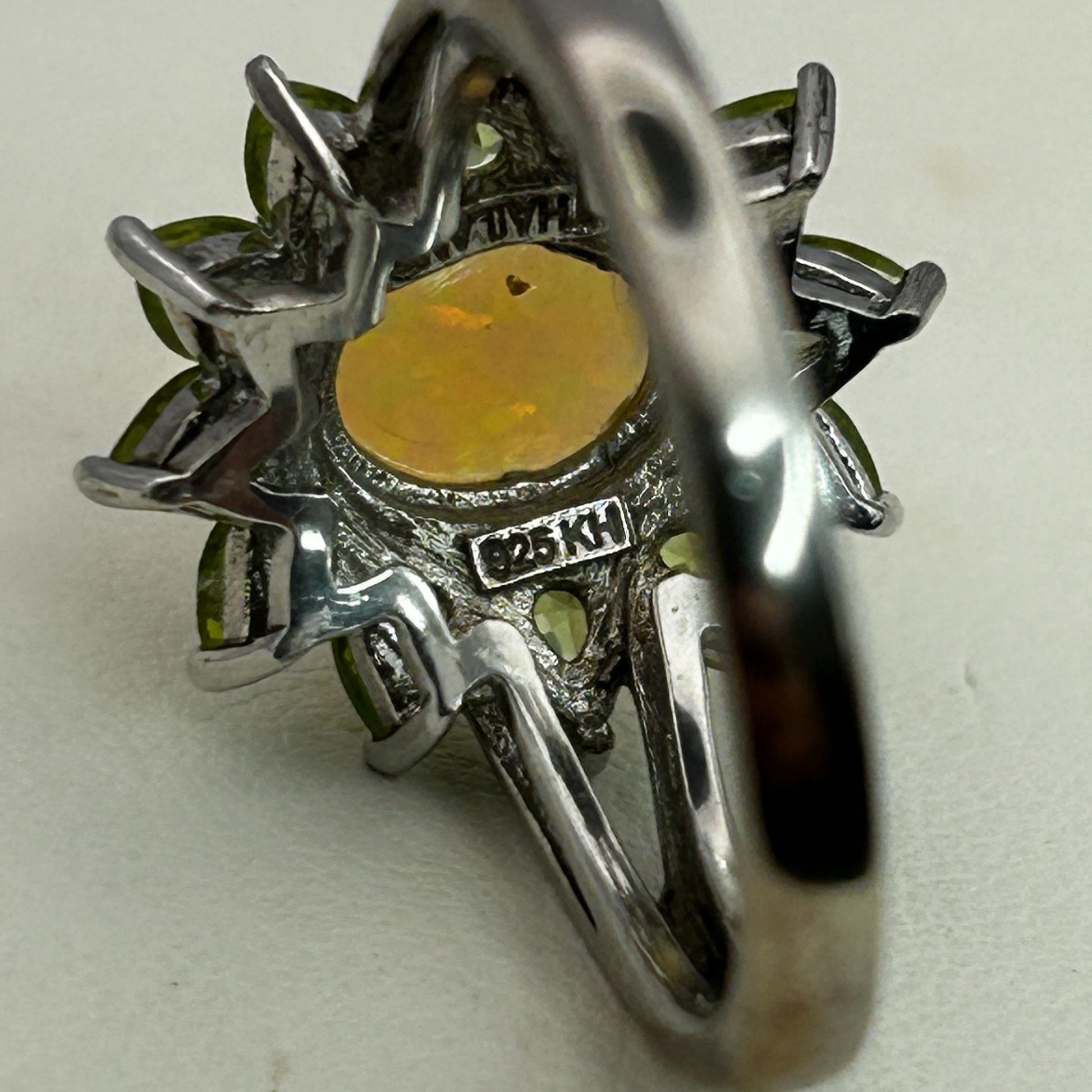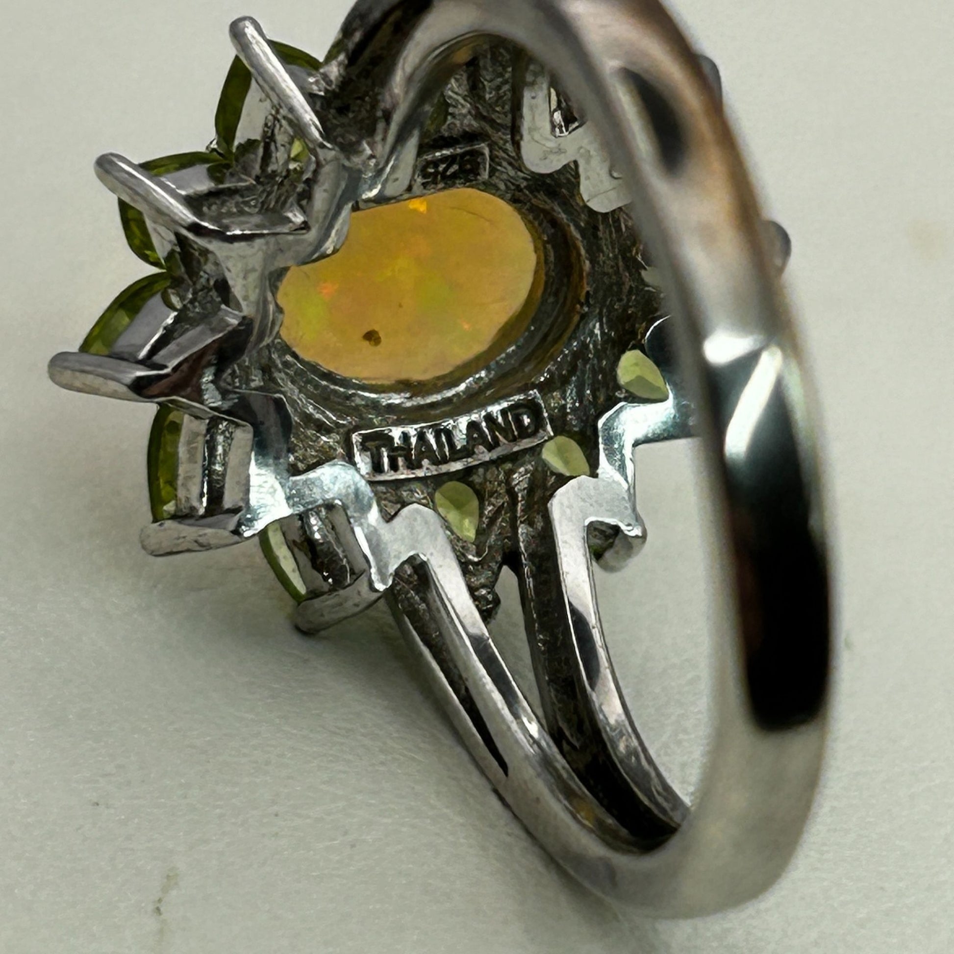 Jelly Opal and Green Peridot Flower Ring Thailand 925 KH SIZE 8