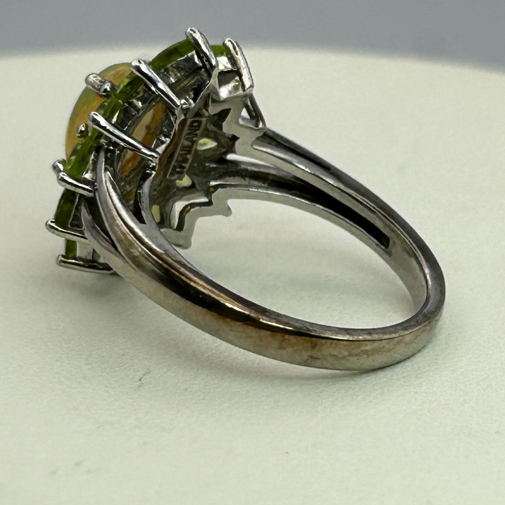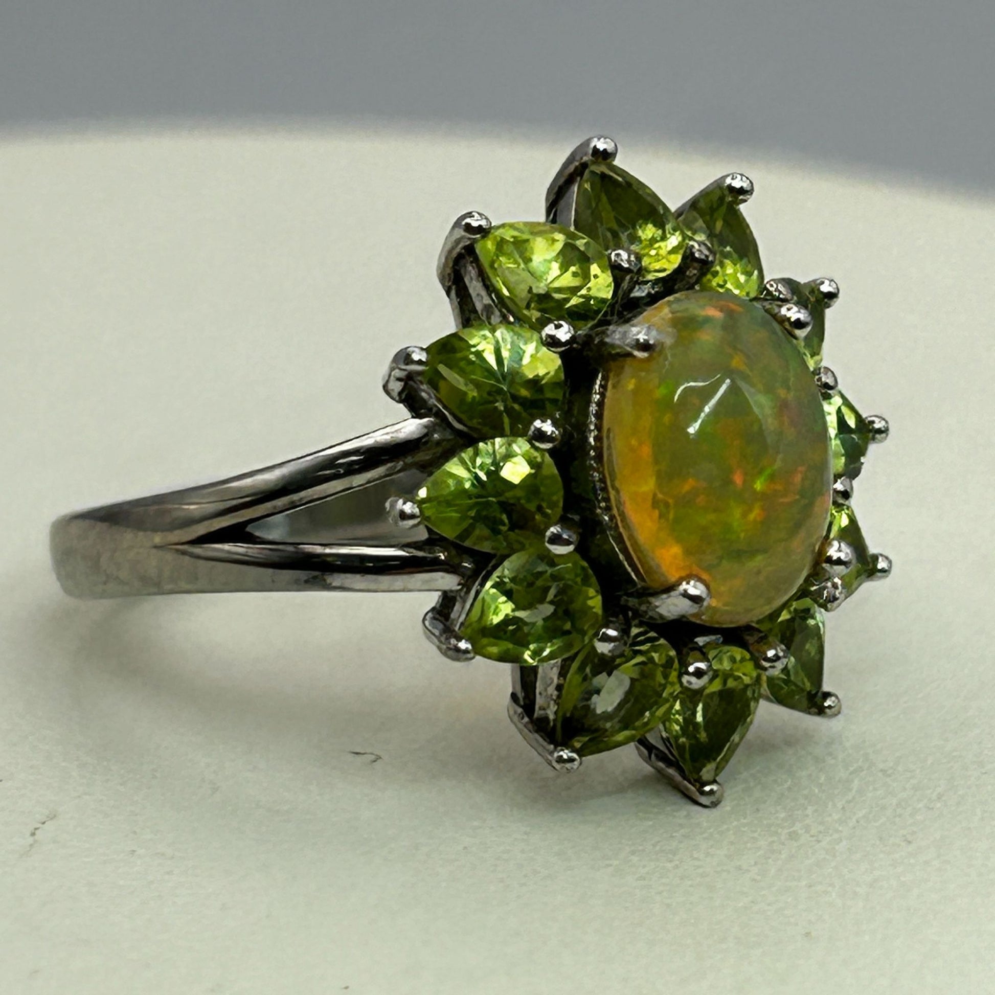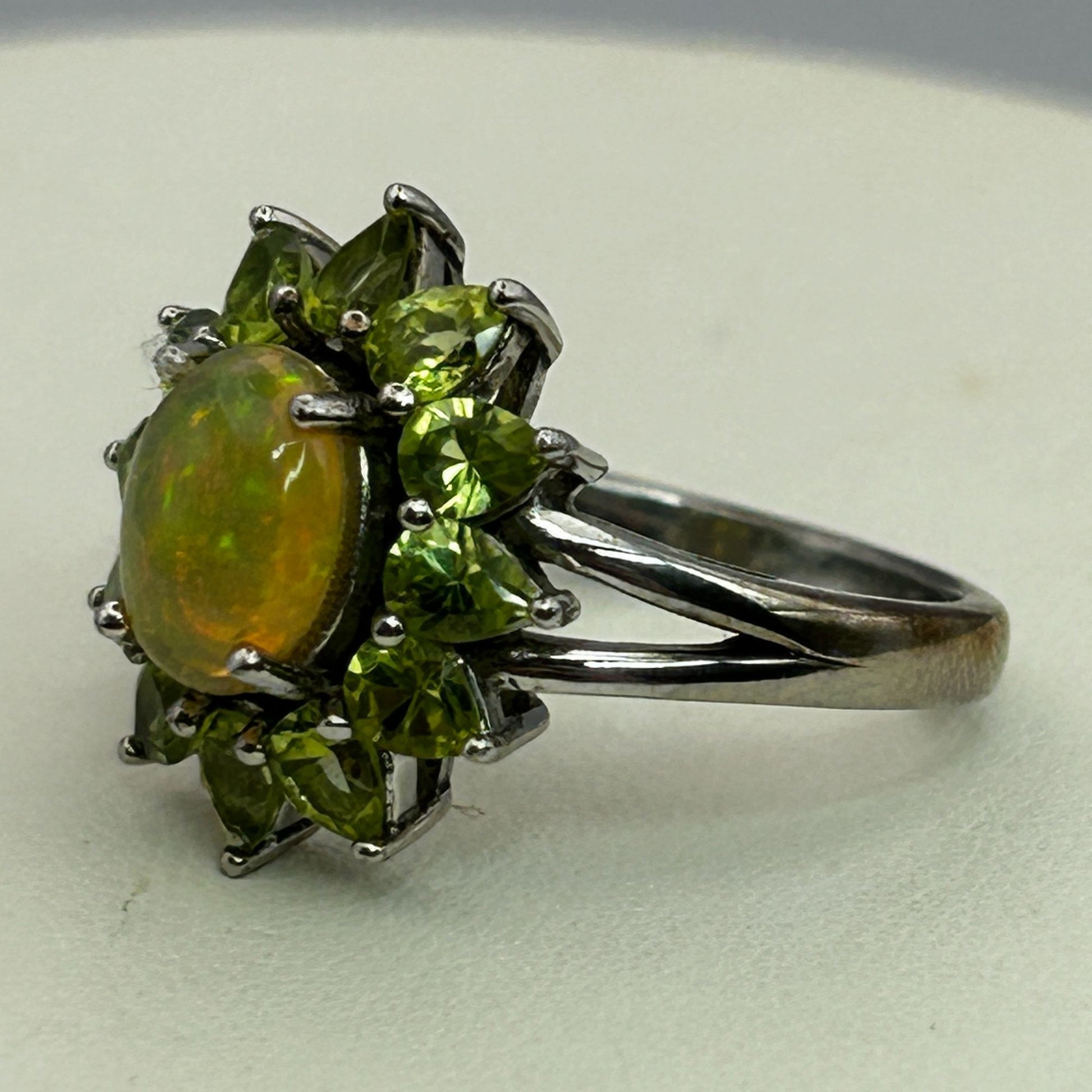 Jelly Opal and Green Peridot Flower Ring Thailand 925 KH SIZE 8