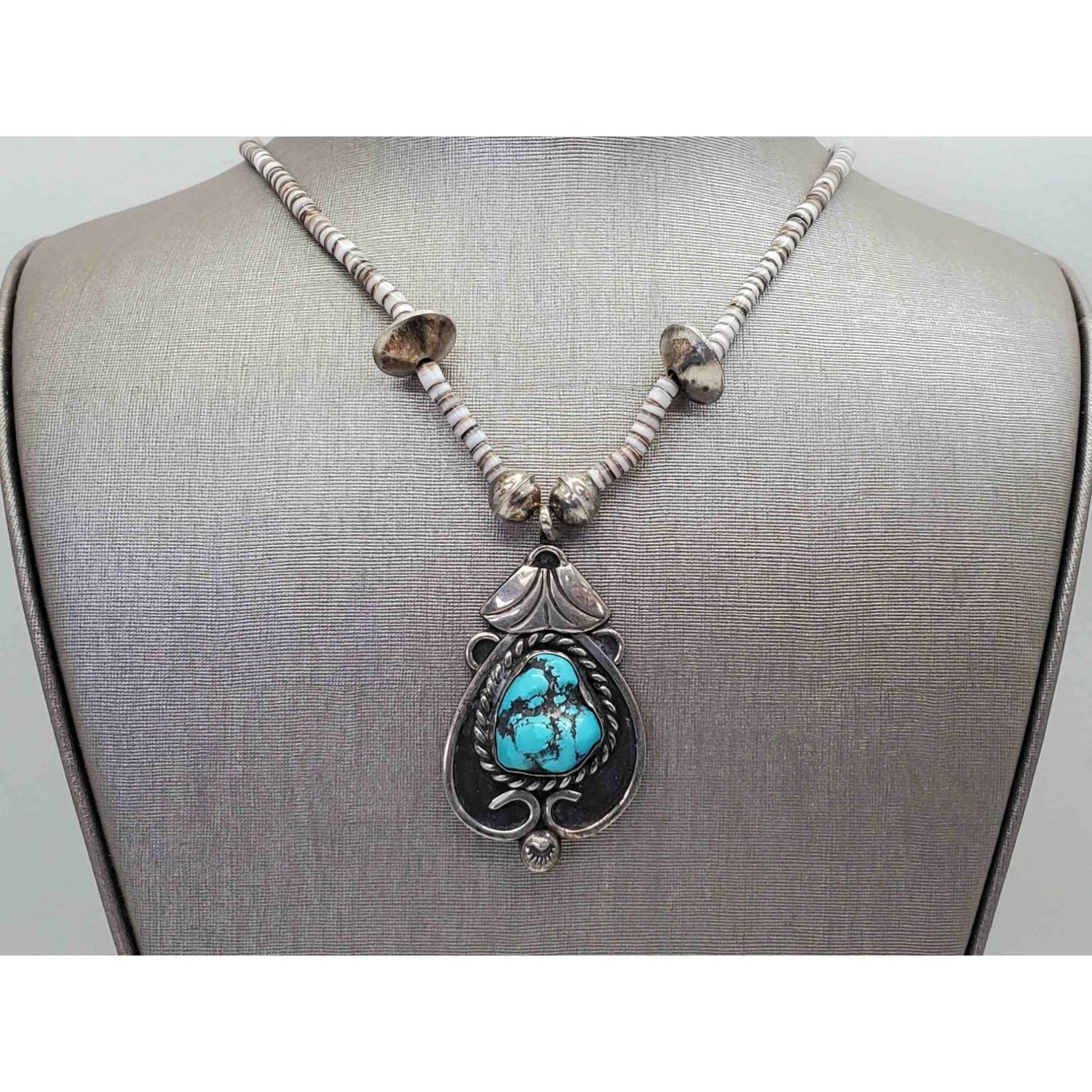 Jeri Clark Navajo Native American Turquoise Sterling Silver Pendant Necklace