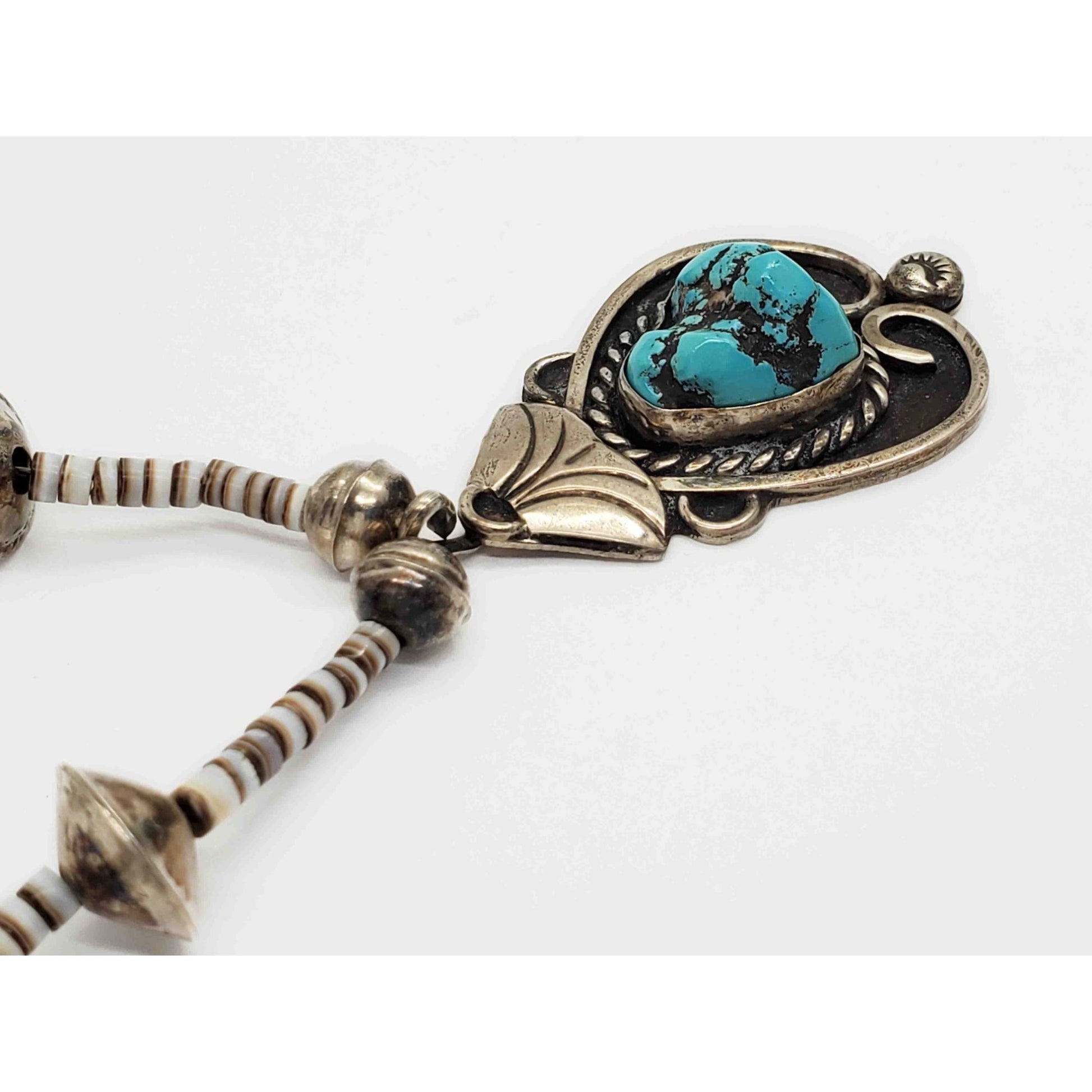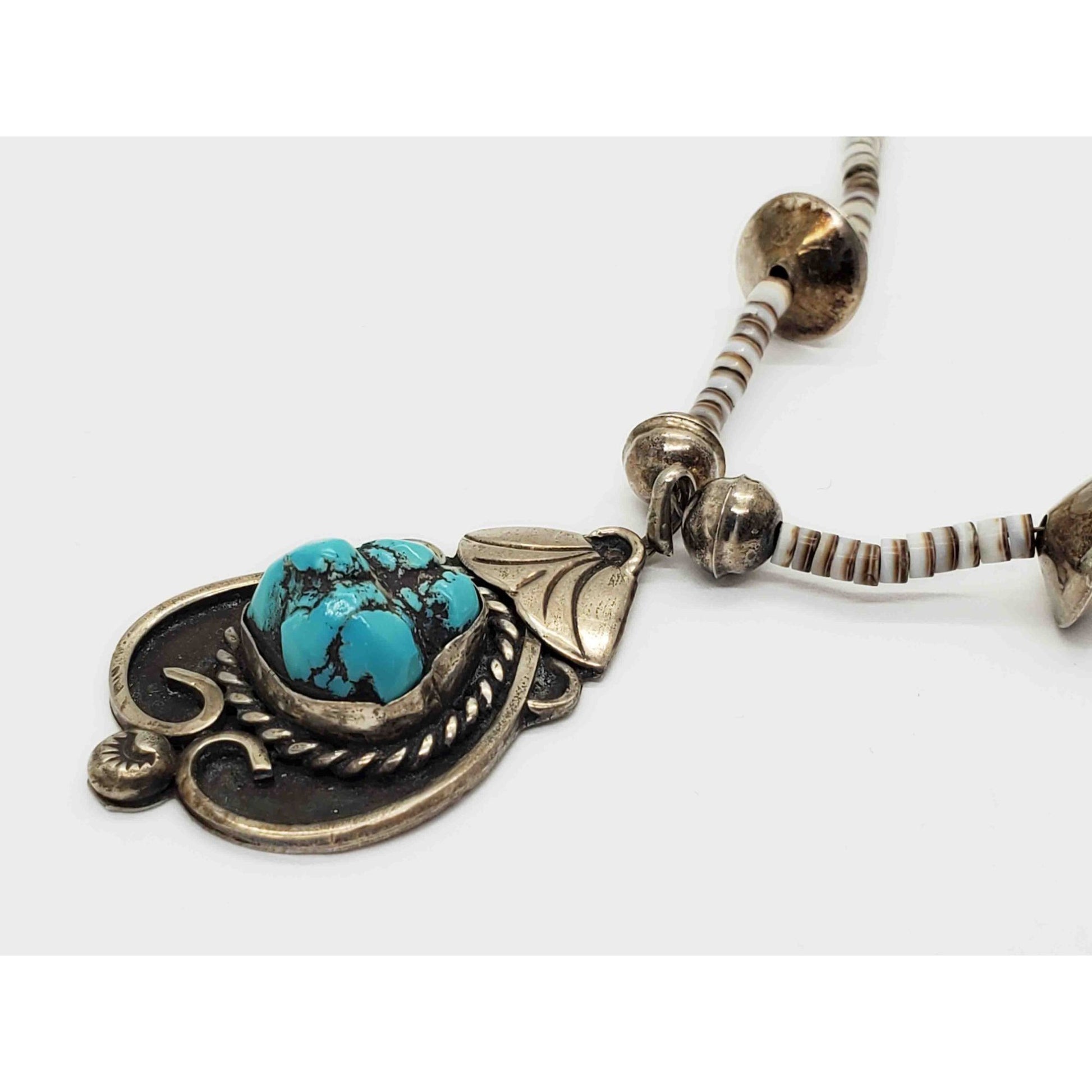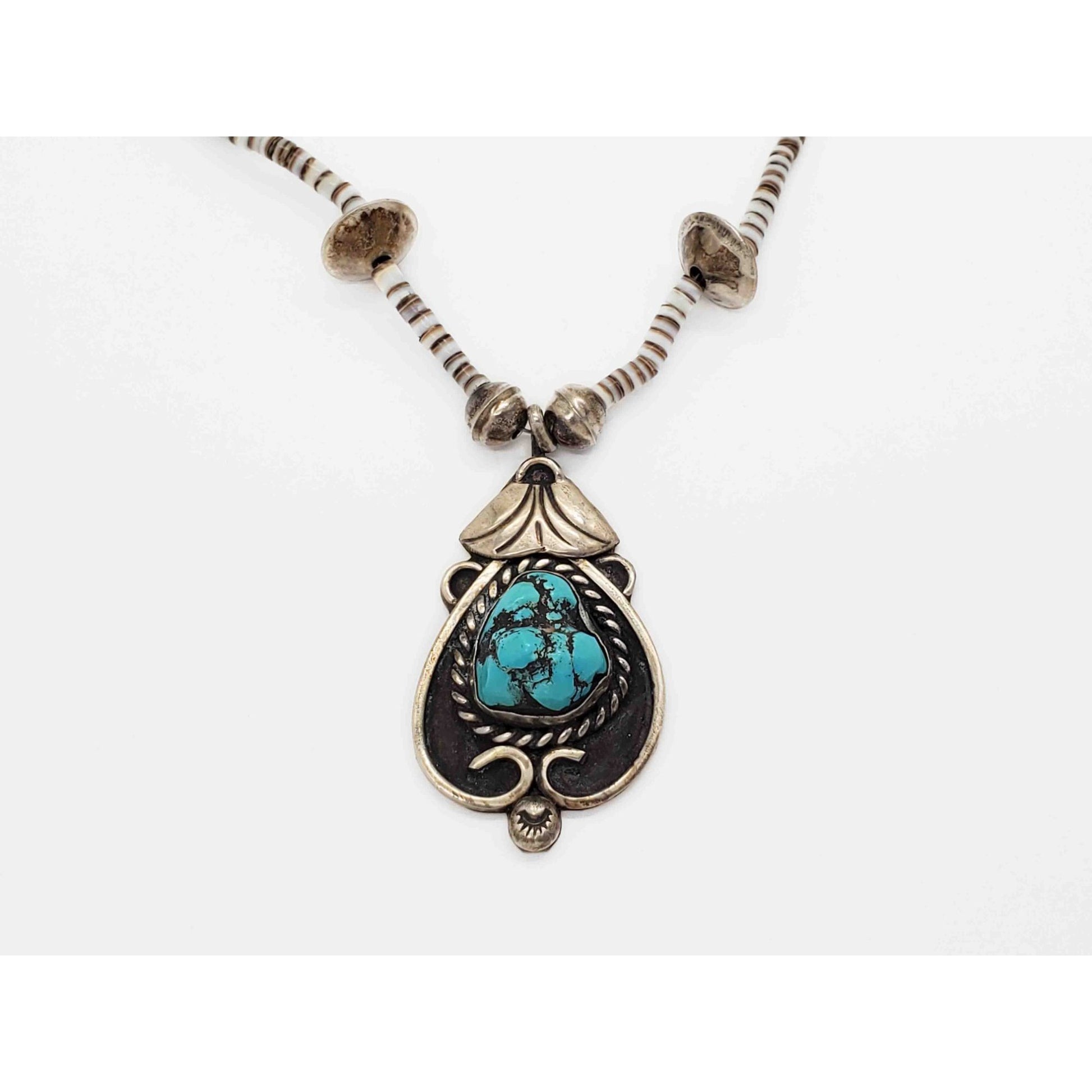 Turquoise sterling silver pendant necklace by Navajo artisan Jeri Clark.