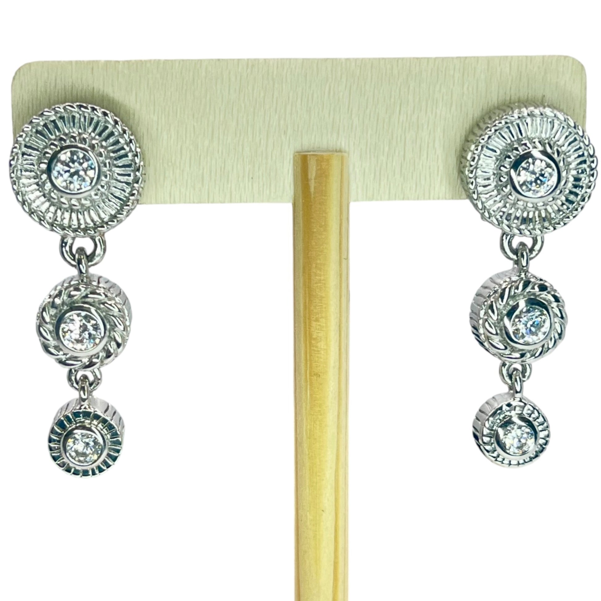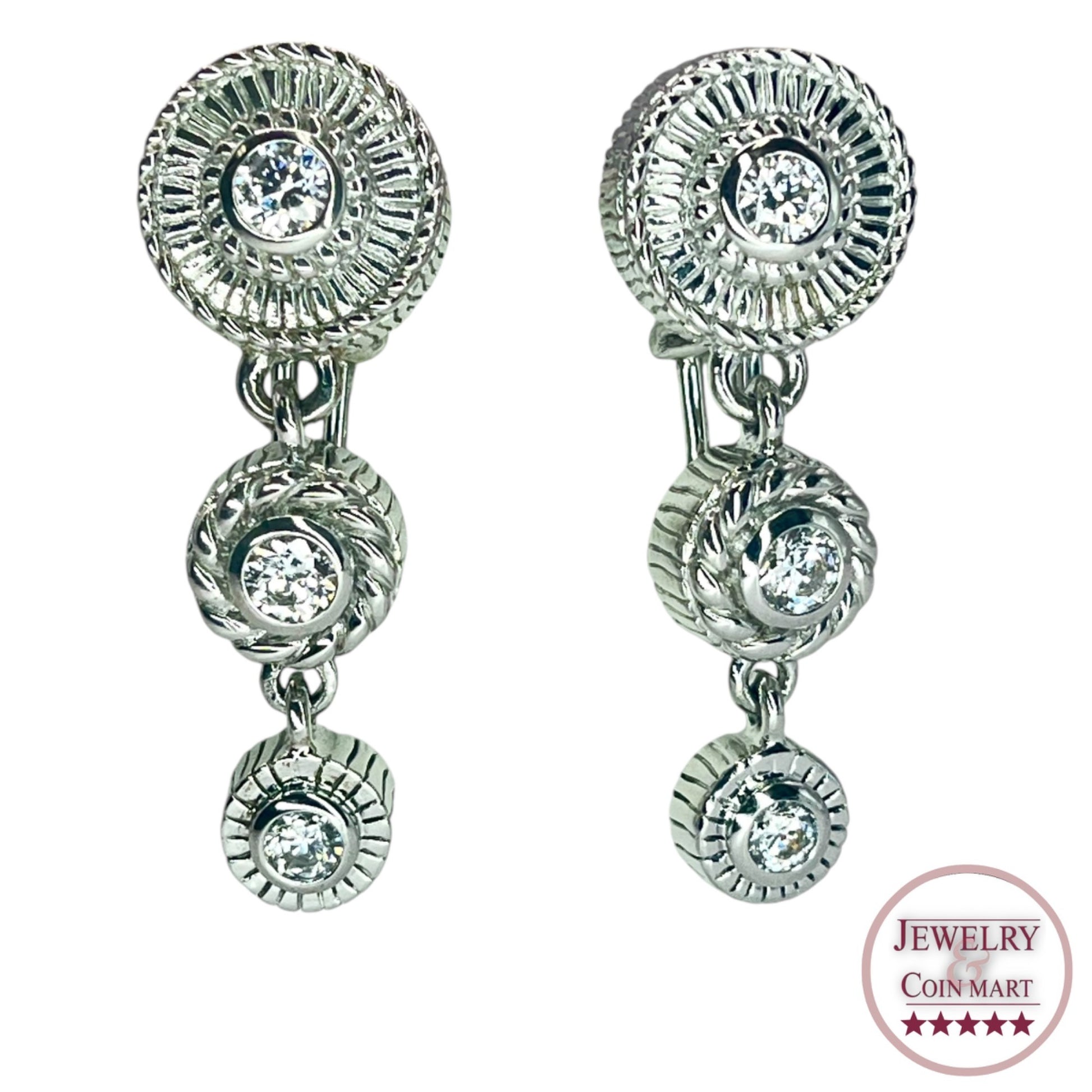 Judith Ripka 925 Sterling Silver Cubic Zirconia Dangle Clip Earrings Classic