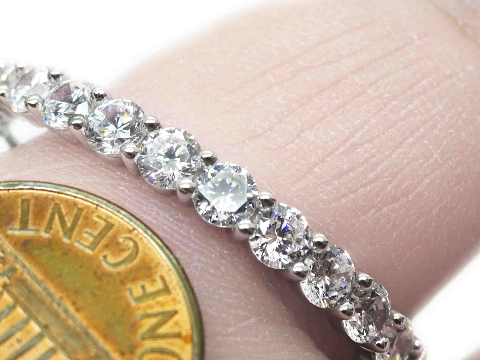 Set with 44 round white CZs, each about 0.15ct, estimated at about 6.6ct tw gem weight.