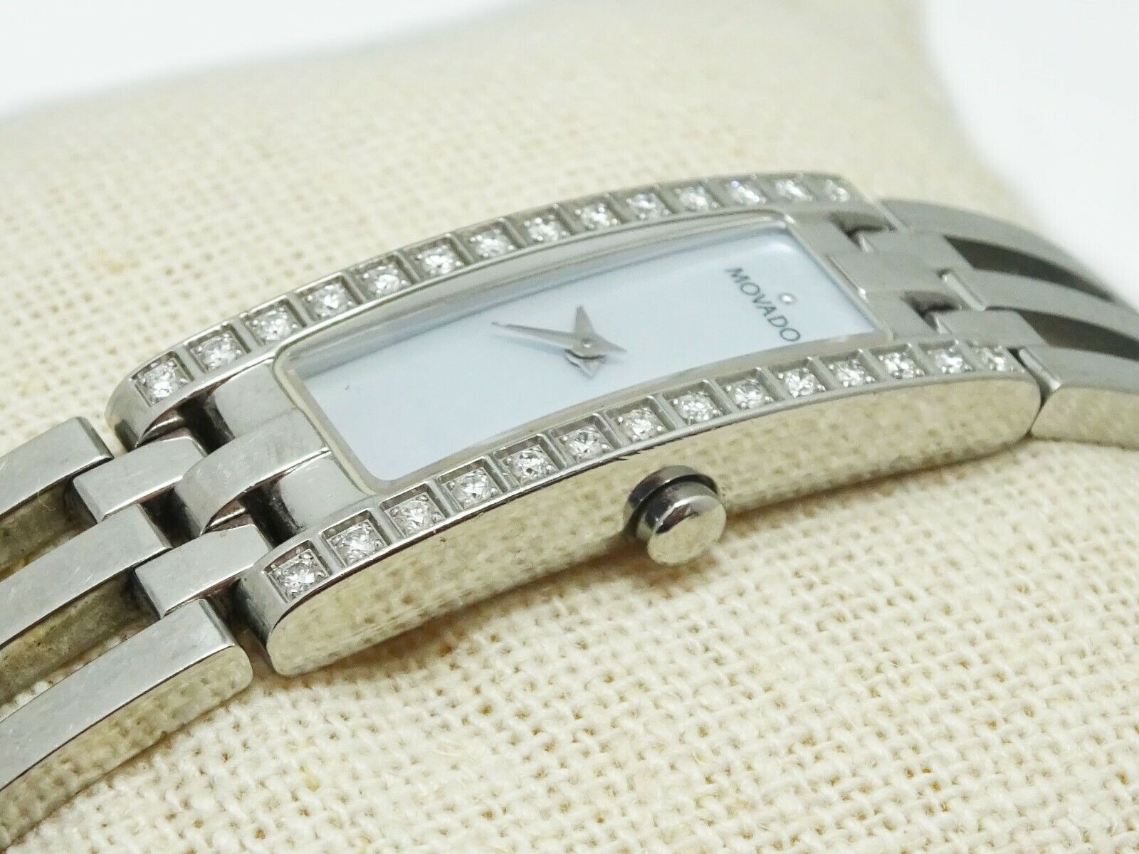 Ladies Movado Esperanza Watch MOP Rectangle Dial Diamond Bezel 84 H5 1400 S