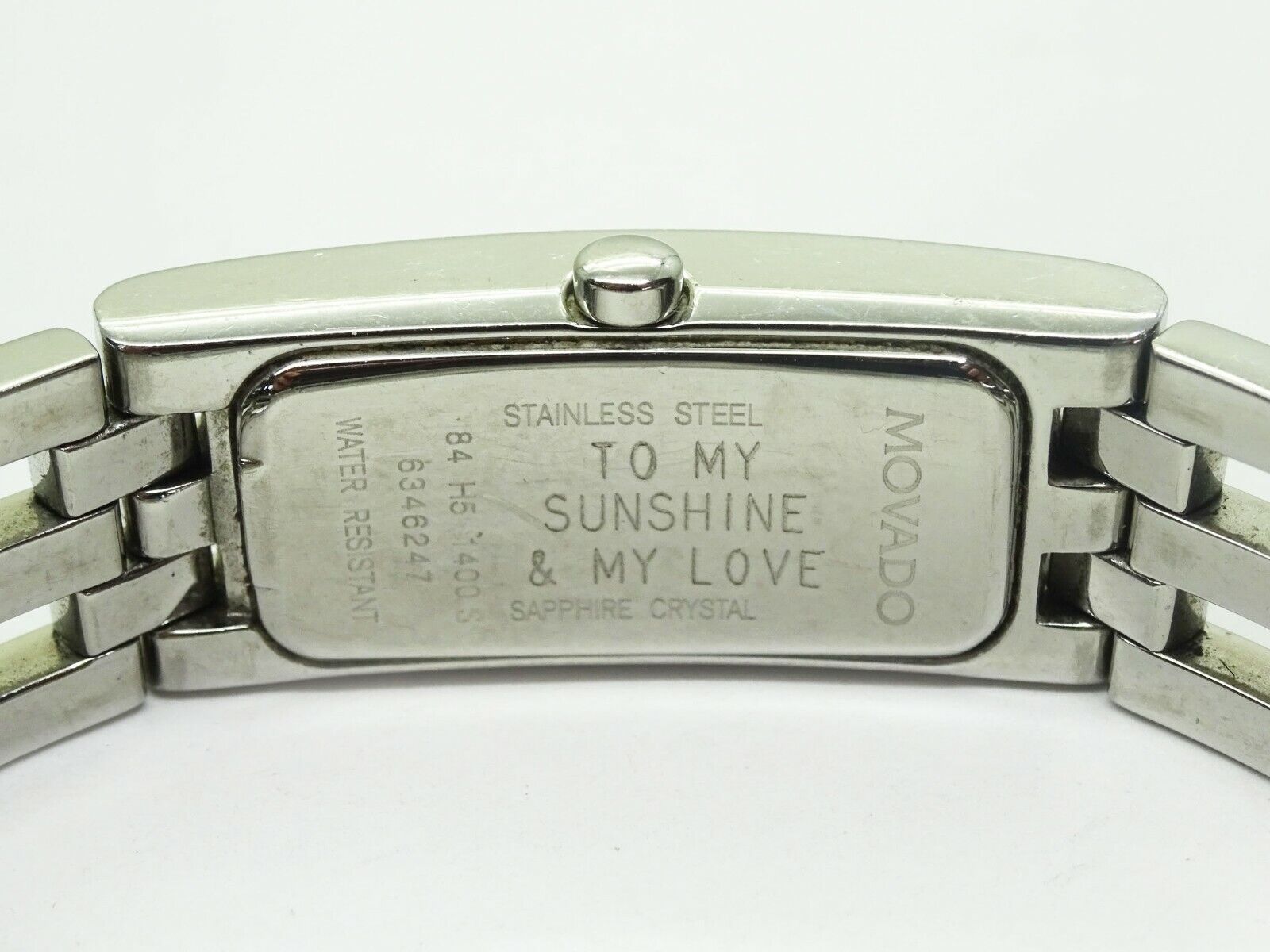 Watch case back is also engraved with the custom message, âTo my sunshine & my loveâ.