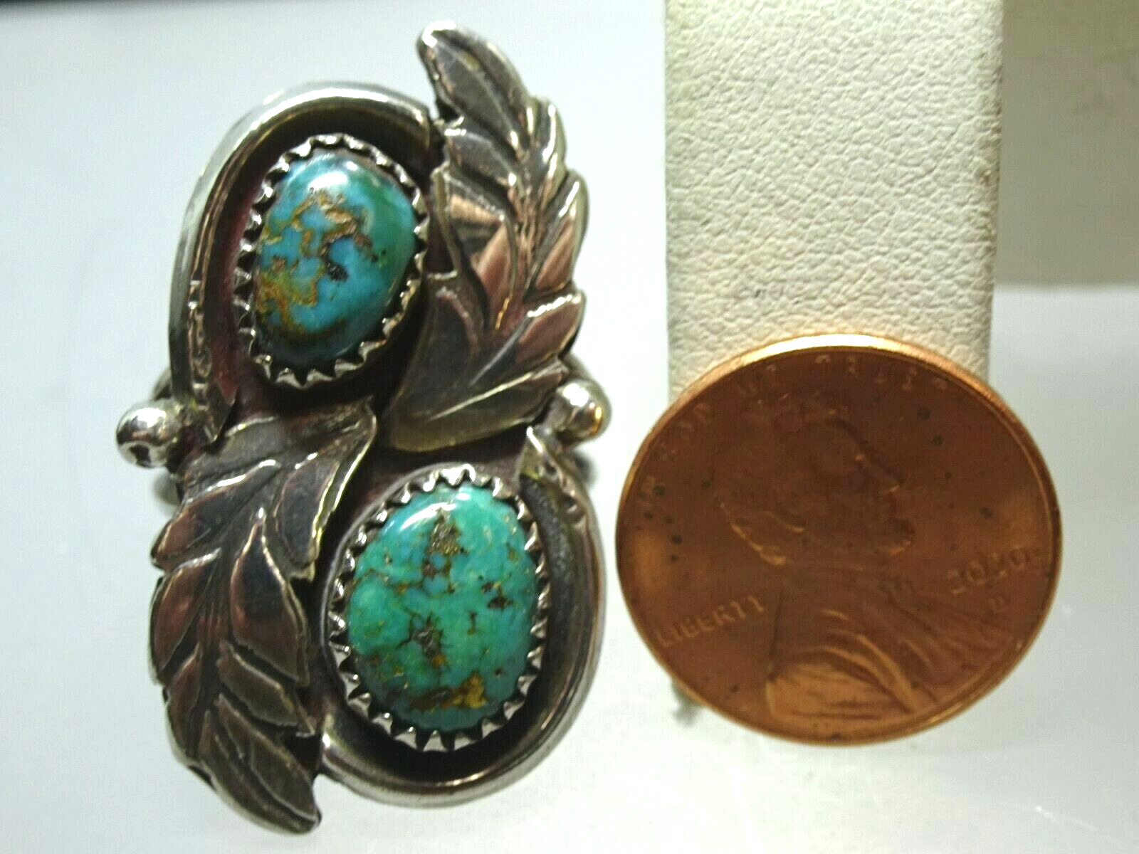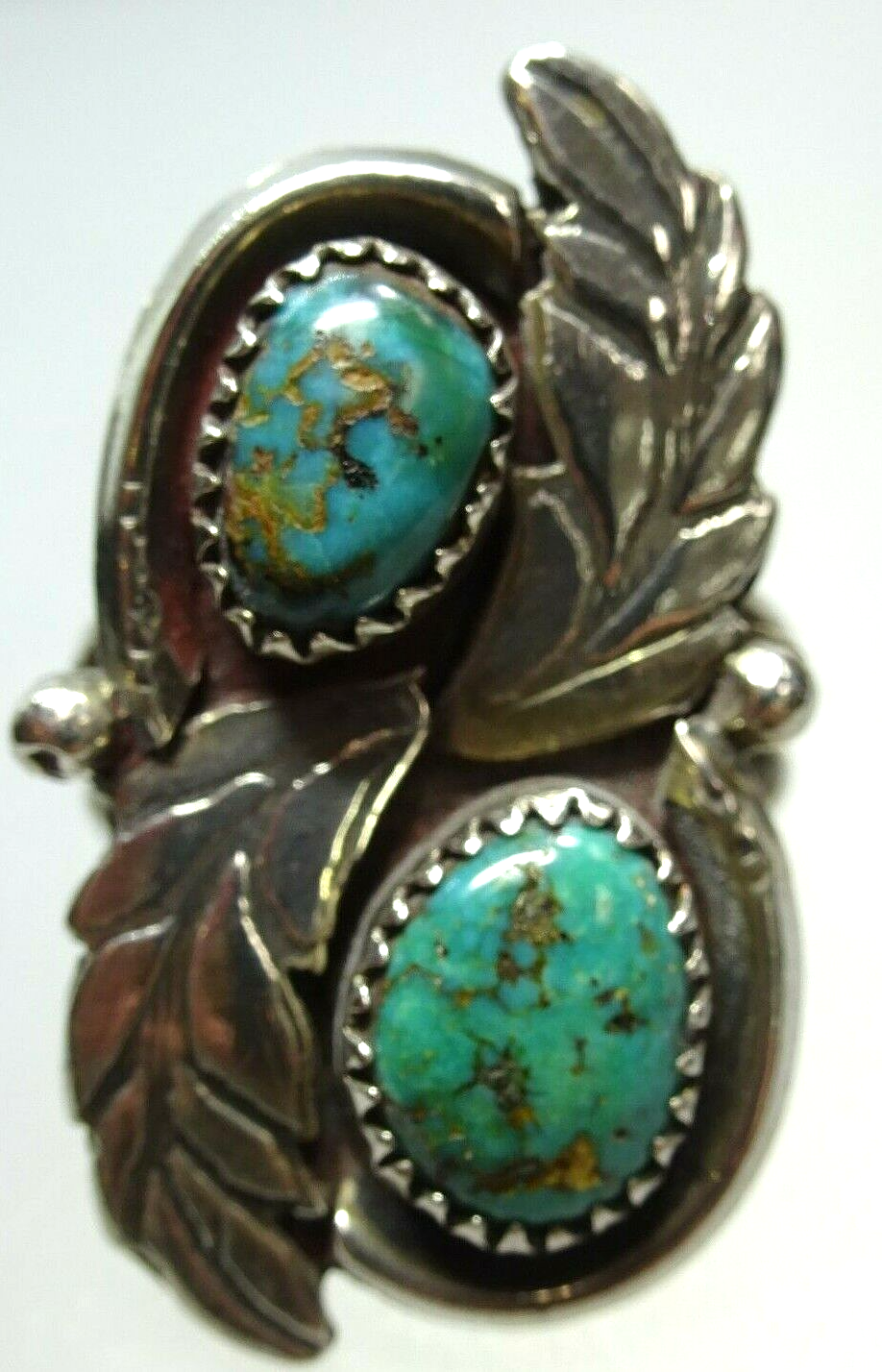 Large Old Pawn Native American Navajo Sterling & Turquoise Ring, Sawtooth Bezel