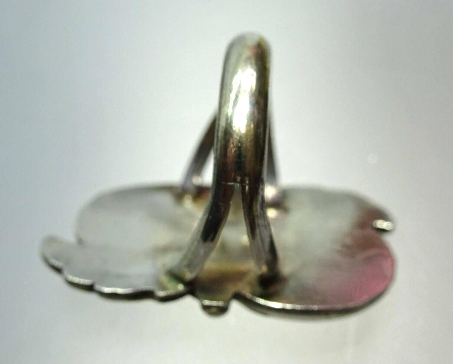 Large Old Pawn Native American Navajo ring, in sterling silver with sawtooth bezel.
