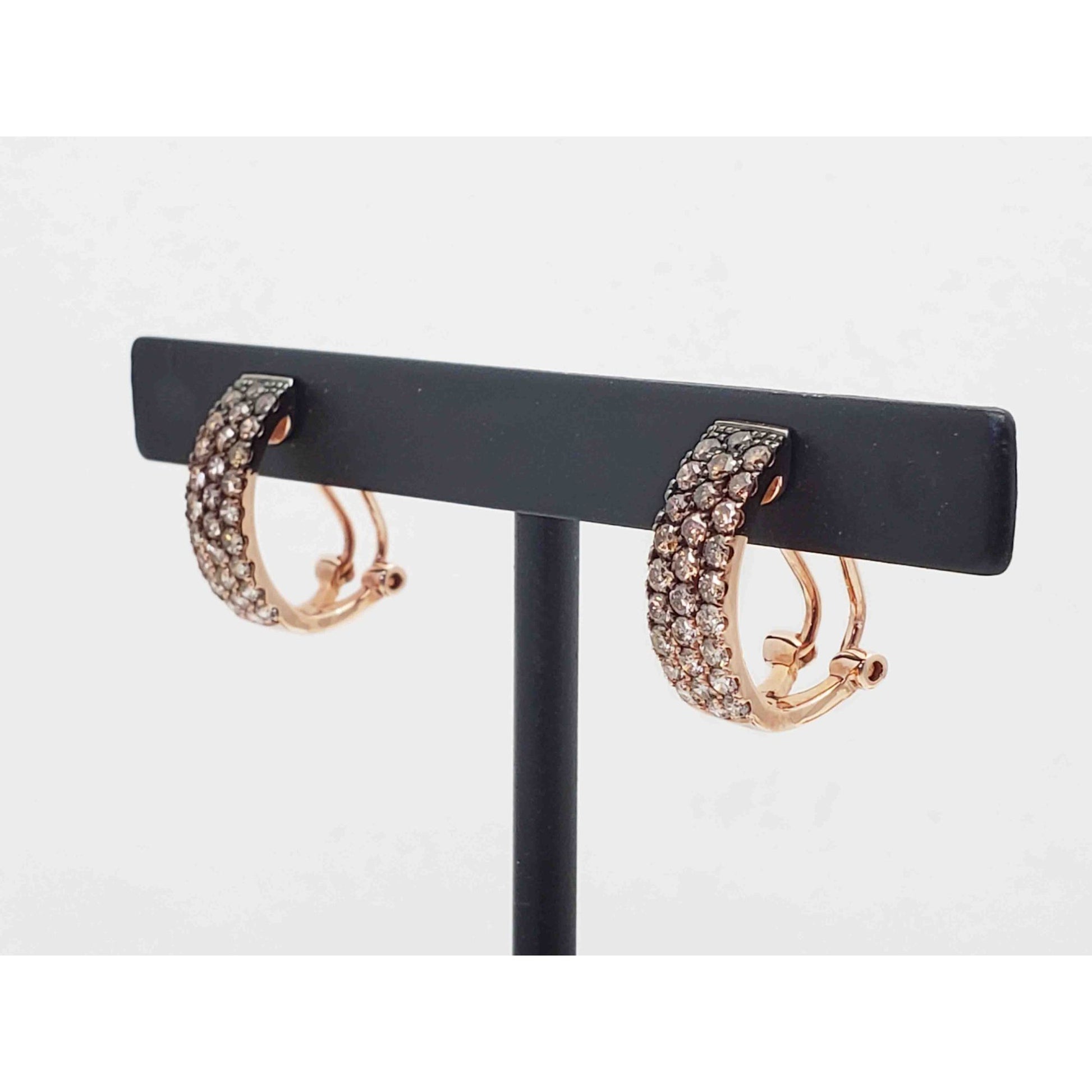Pair of LeVian designer chocolate ombre and nude earrings in 14k strawberry (rose) gold.
