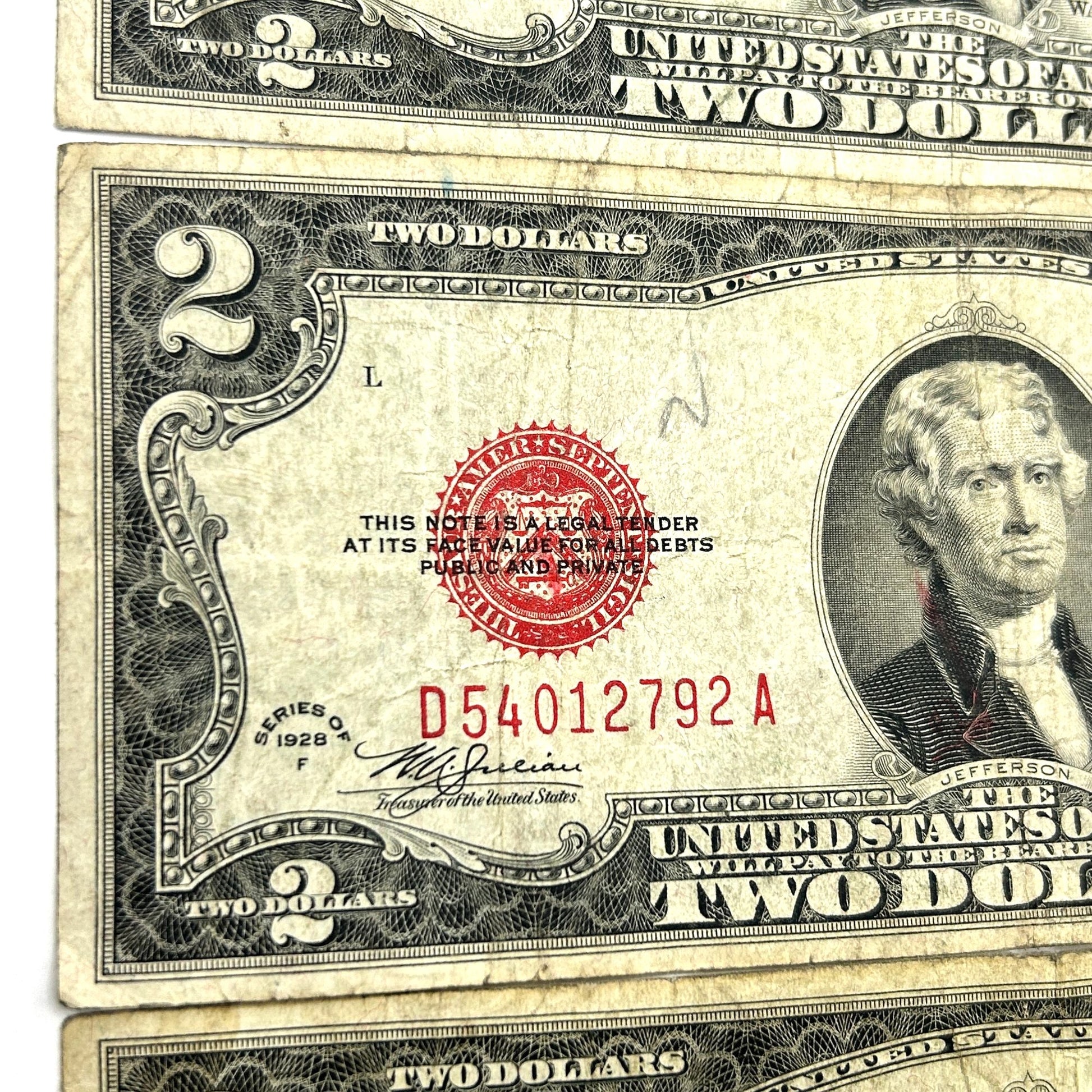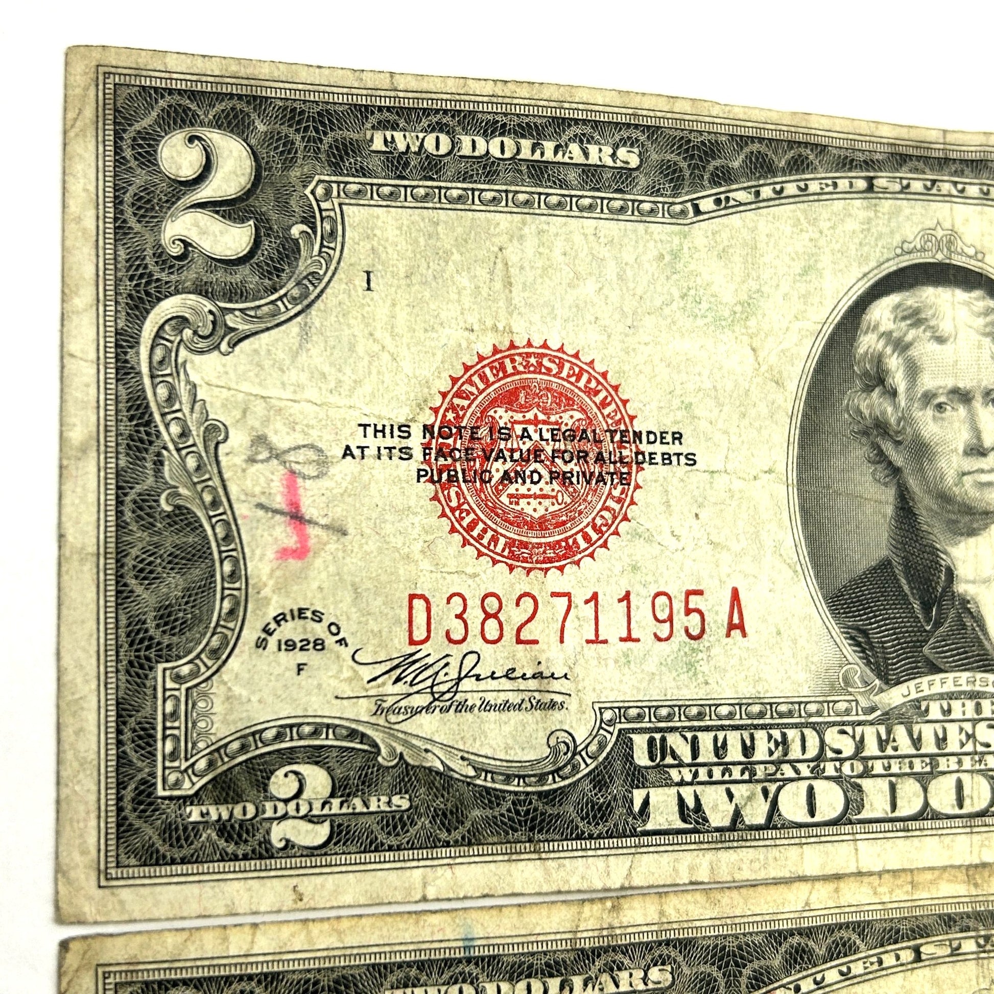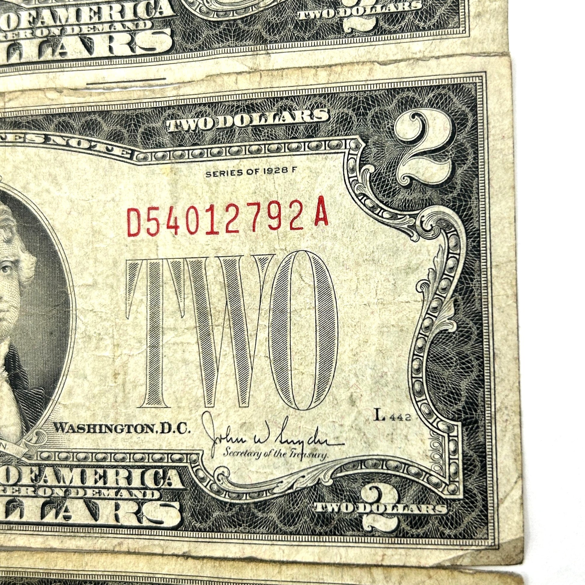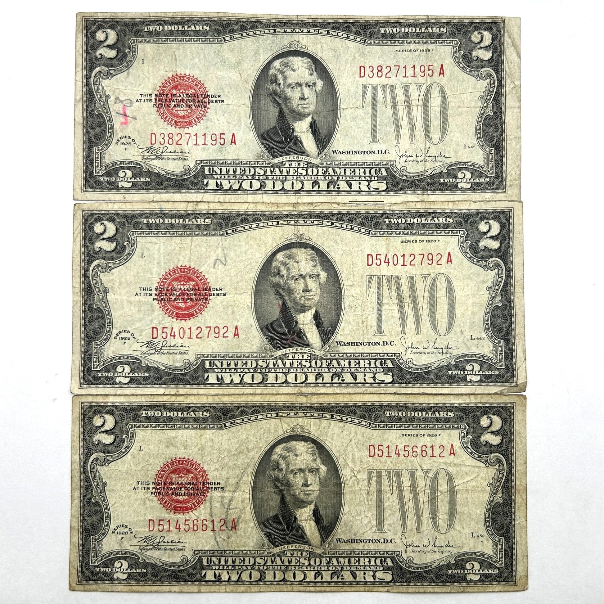 LOT OF 3 Series of 1928-F $2 Two Dollar Bill Red Seal United States Note