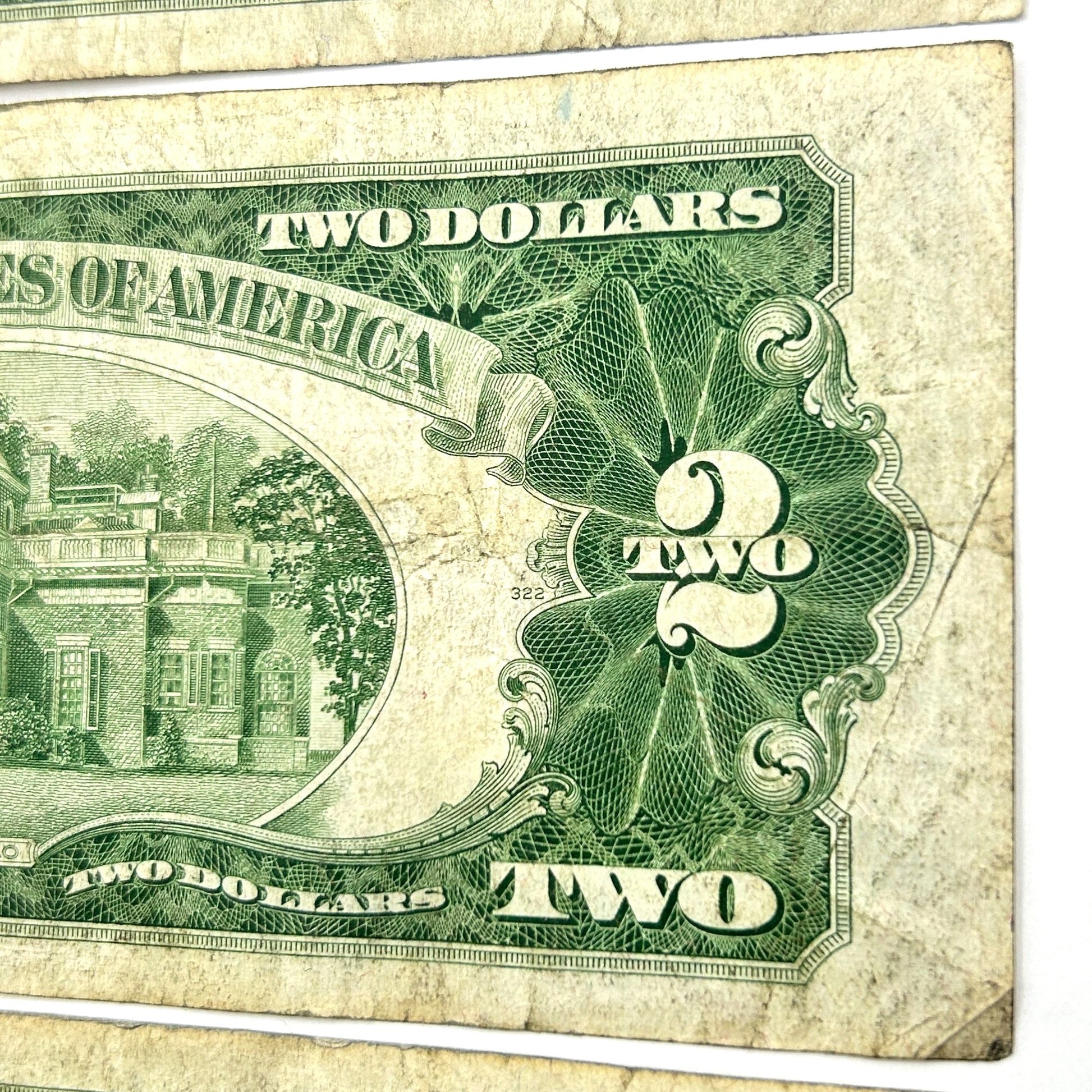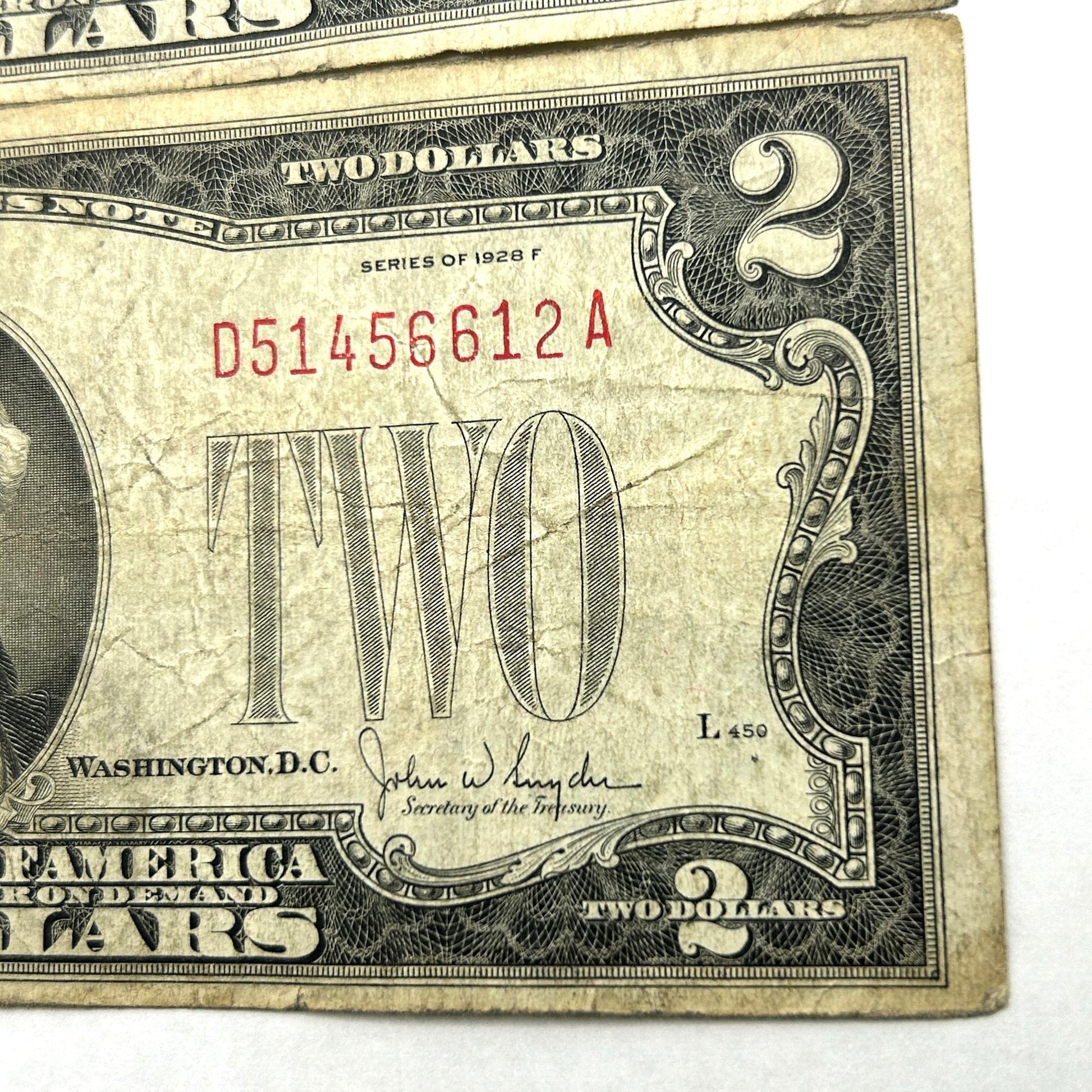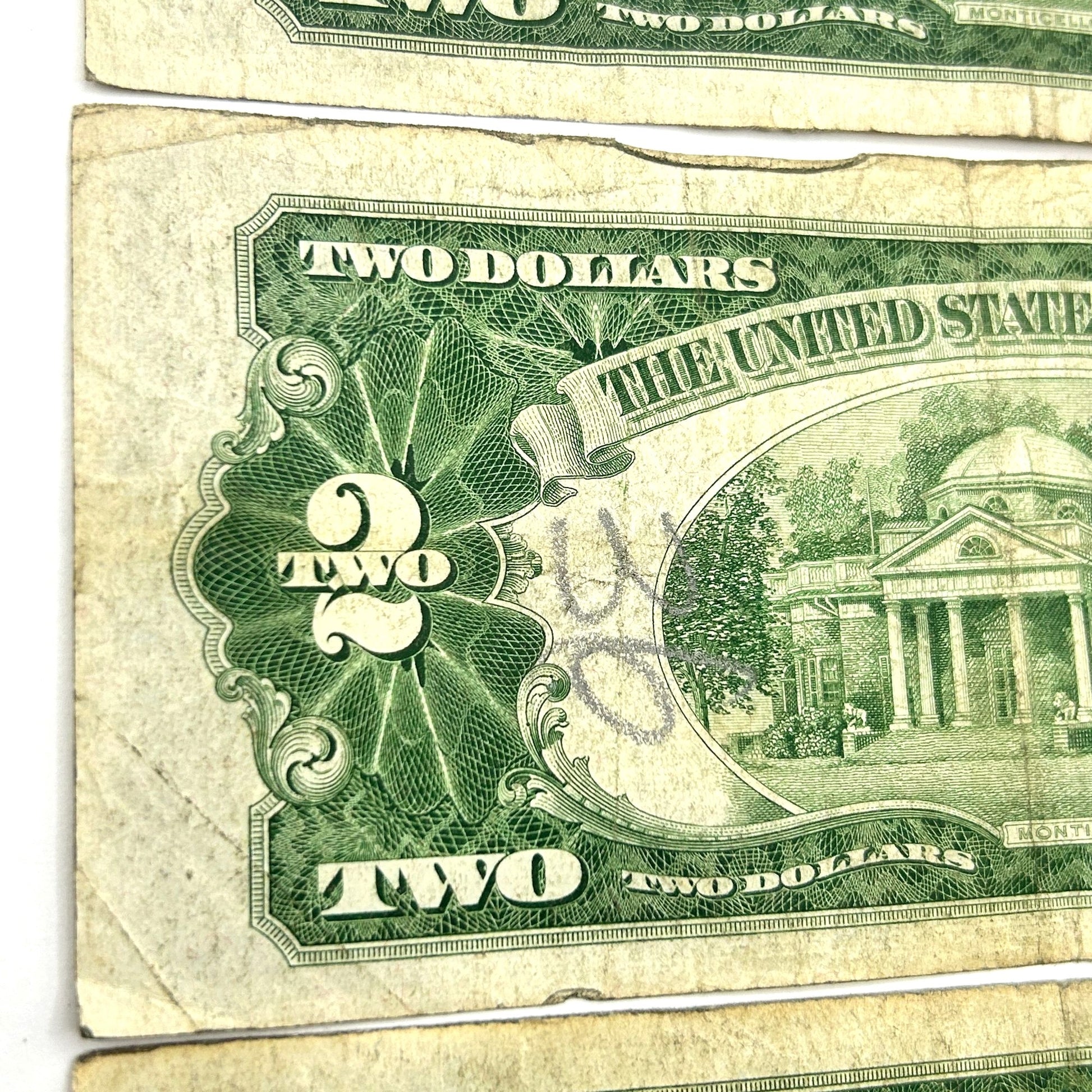 LOT OF 3 Series of 1928-F $2 Two Dollar Bill Red Seal United States Note