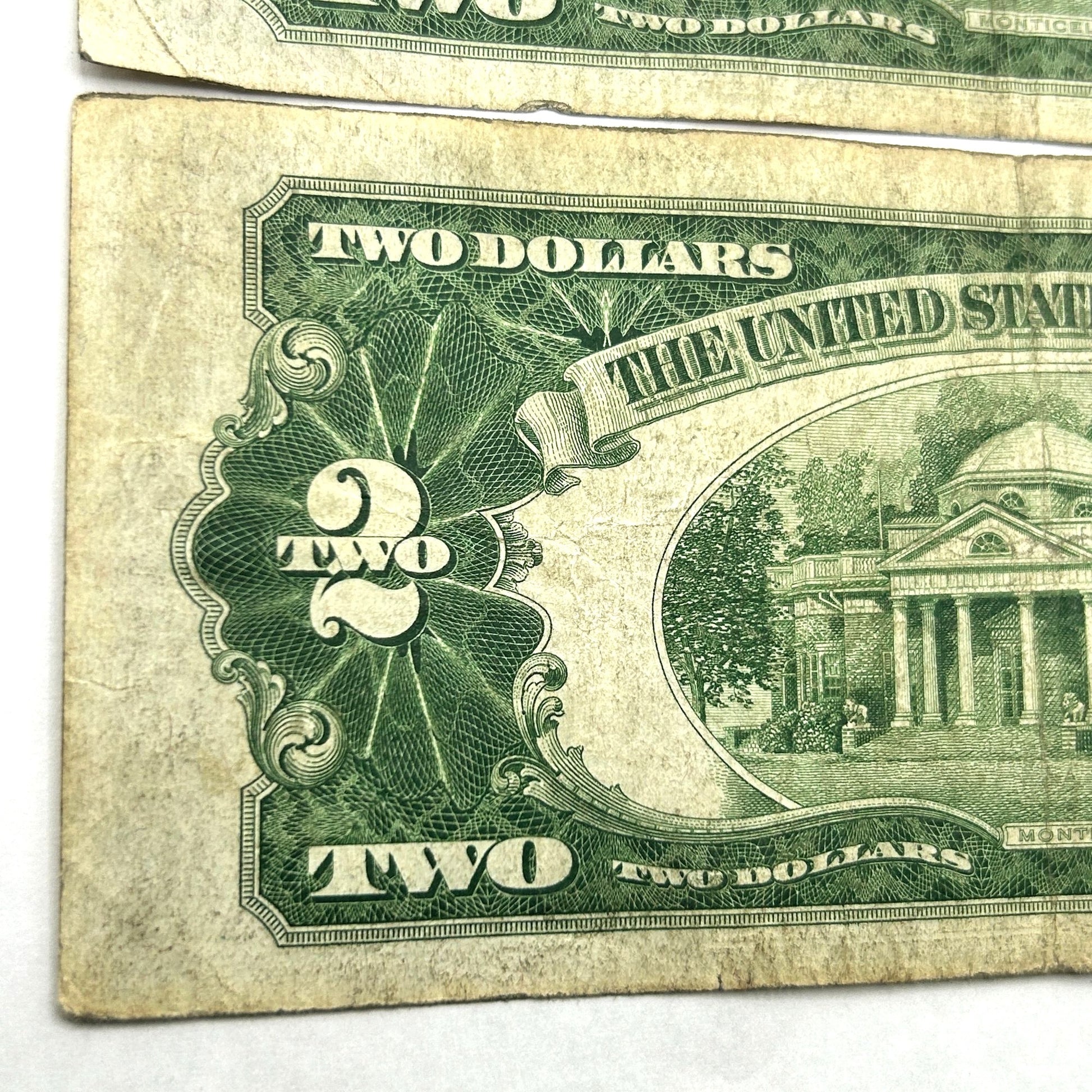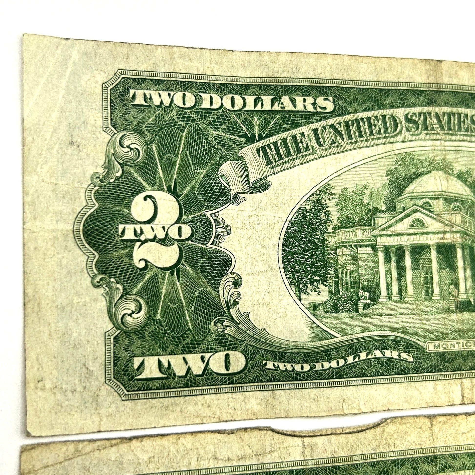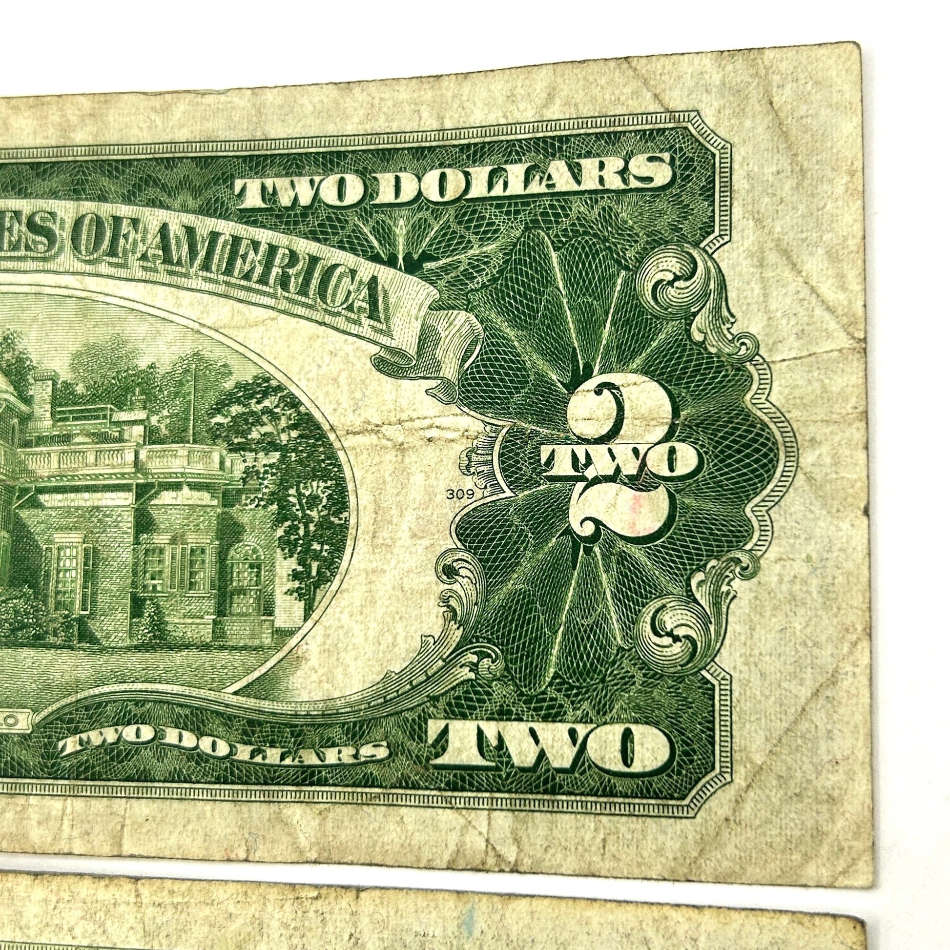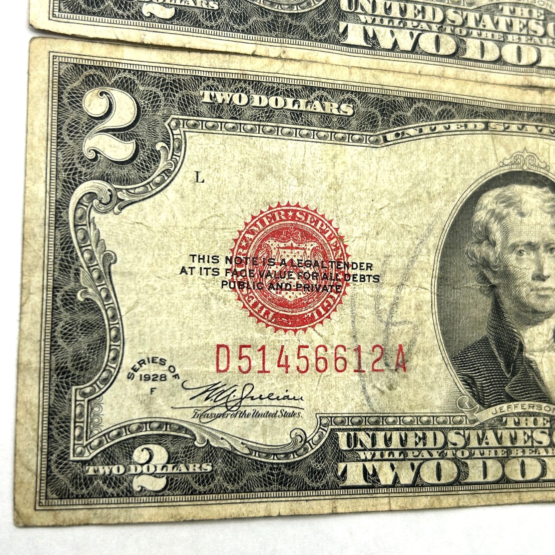 LOT OF 3 Series of 1928-F $2 Two Dollar Bill Red Seal United States Note