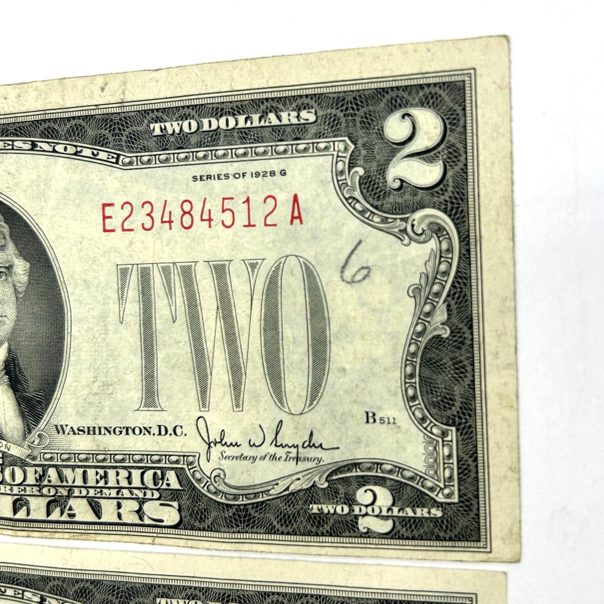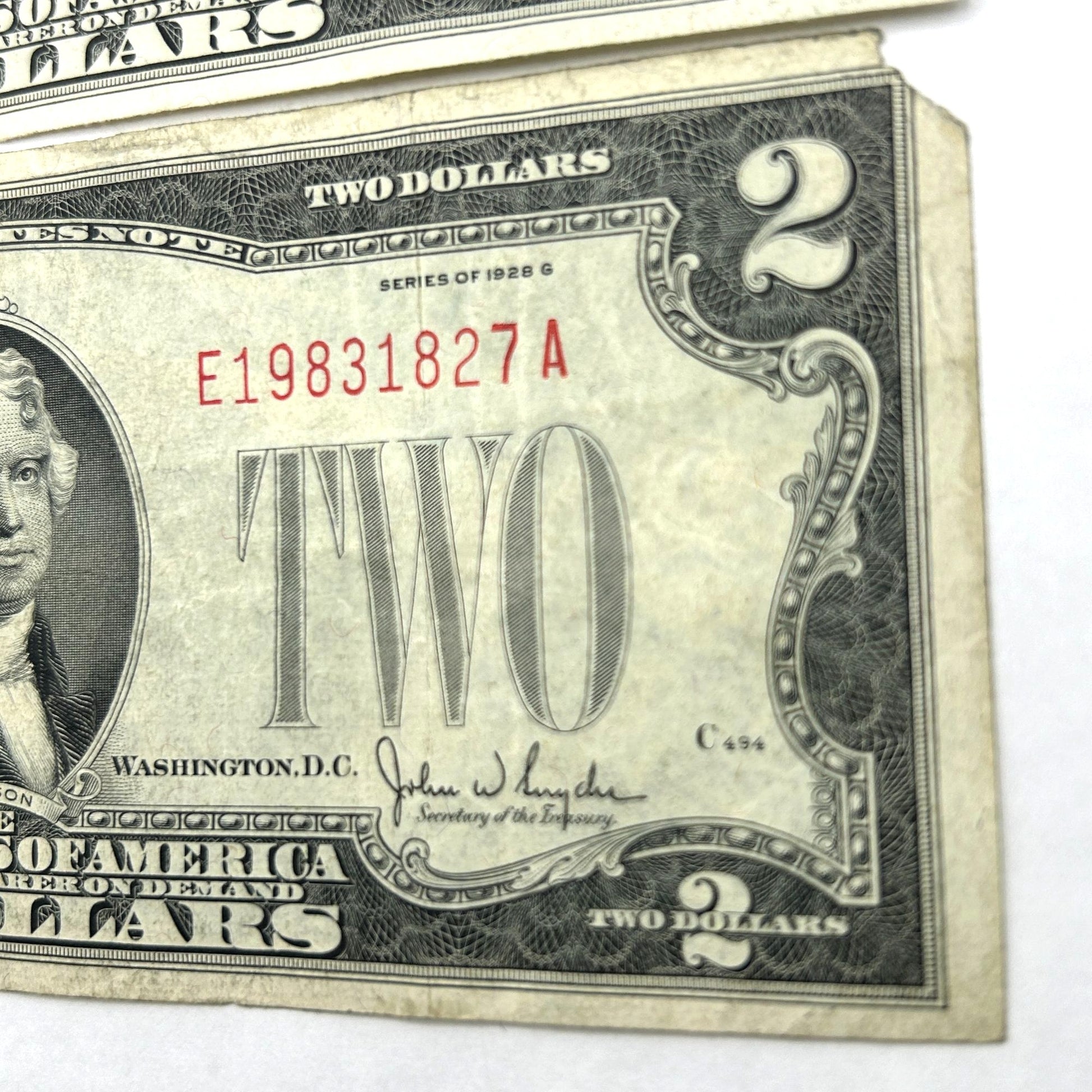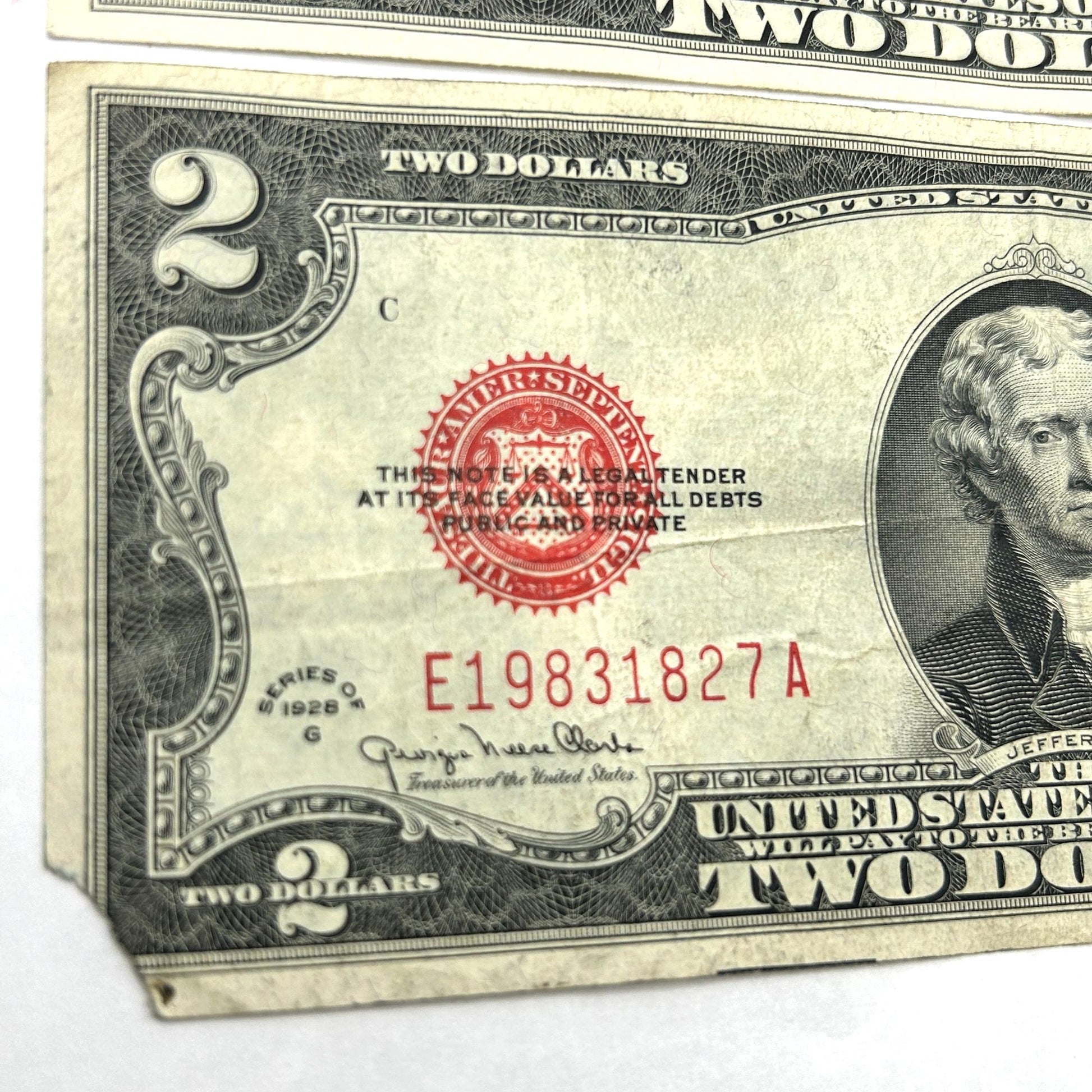 LOT OF 3 Series of 1928-G $2 Two Dollar Bill - Red Seal, Circulated, Slightly OC