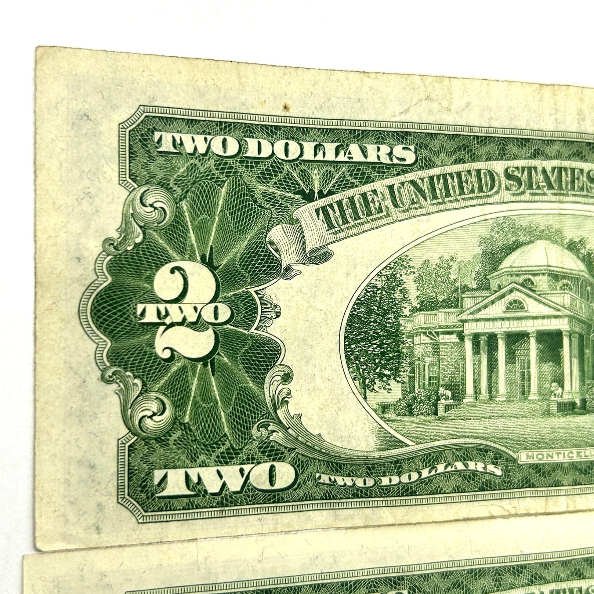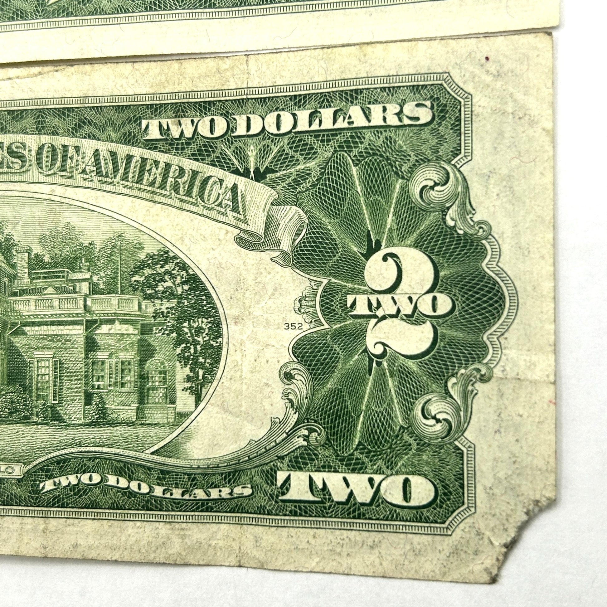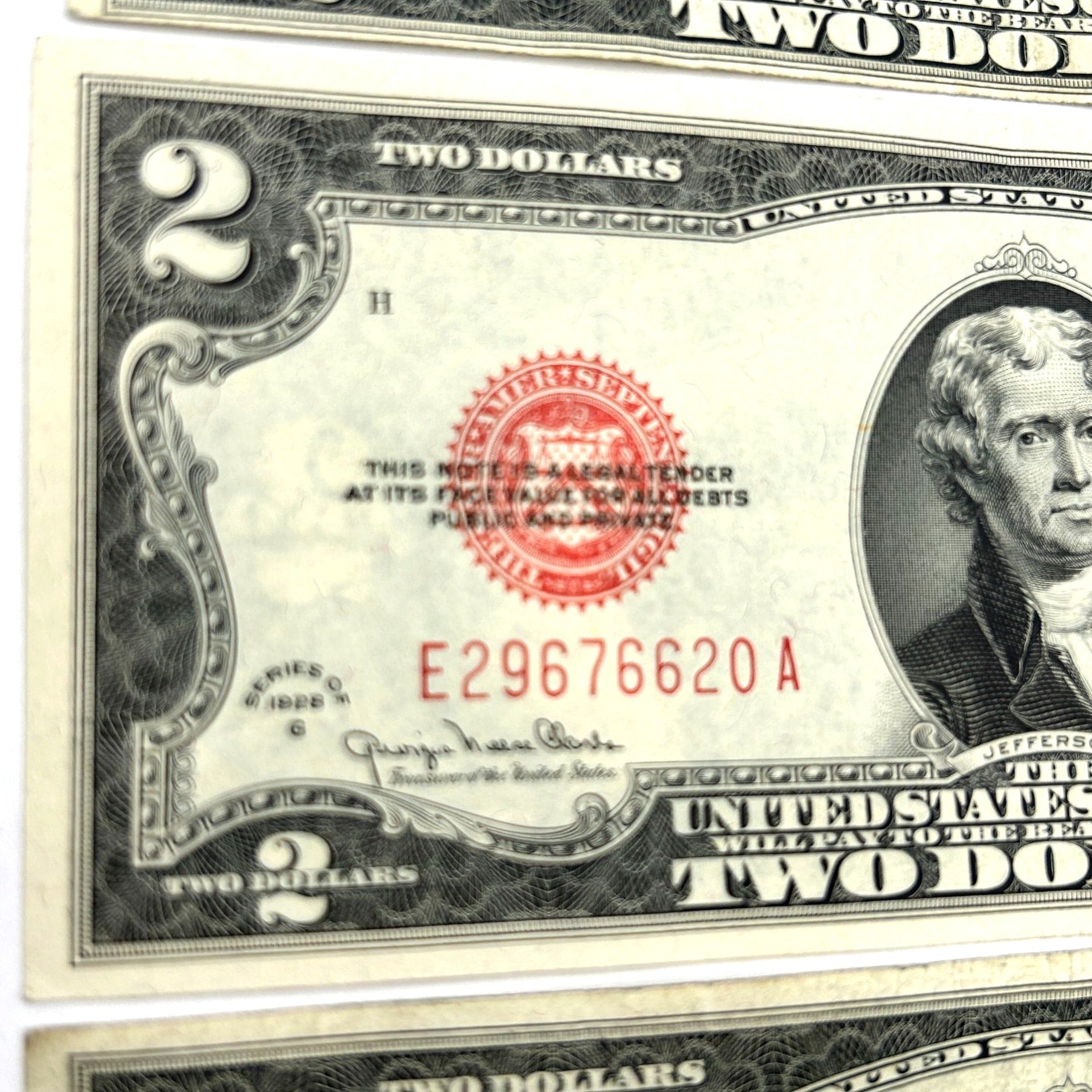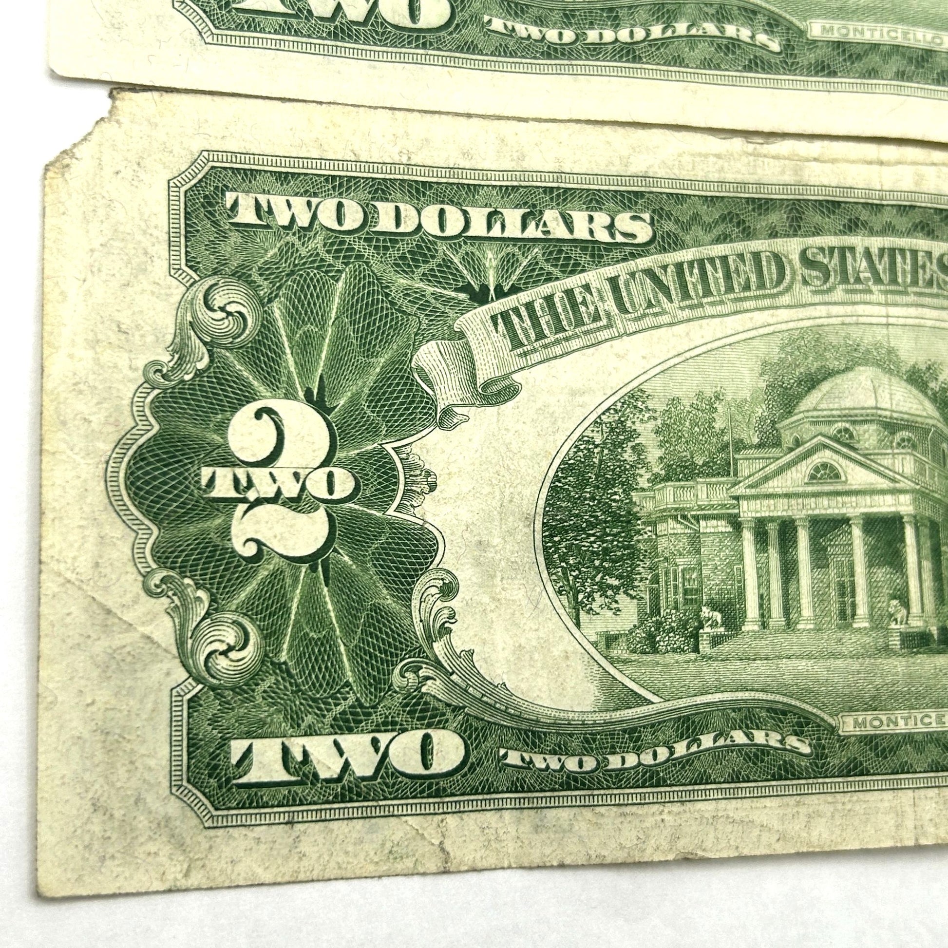 LOT OF 3 Series of 1928-G $2 Two Dollar Bill - Red Seal, Circulated, Slightly OC
