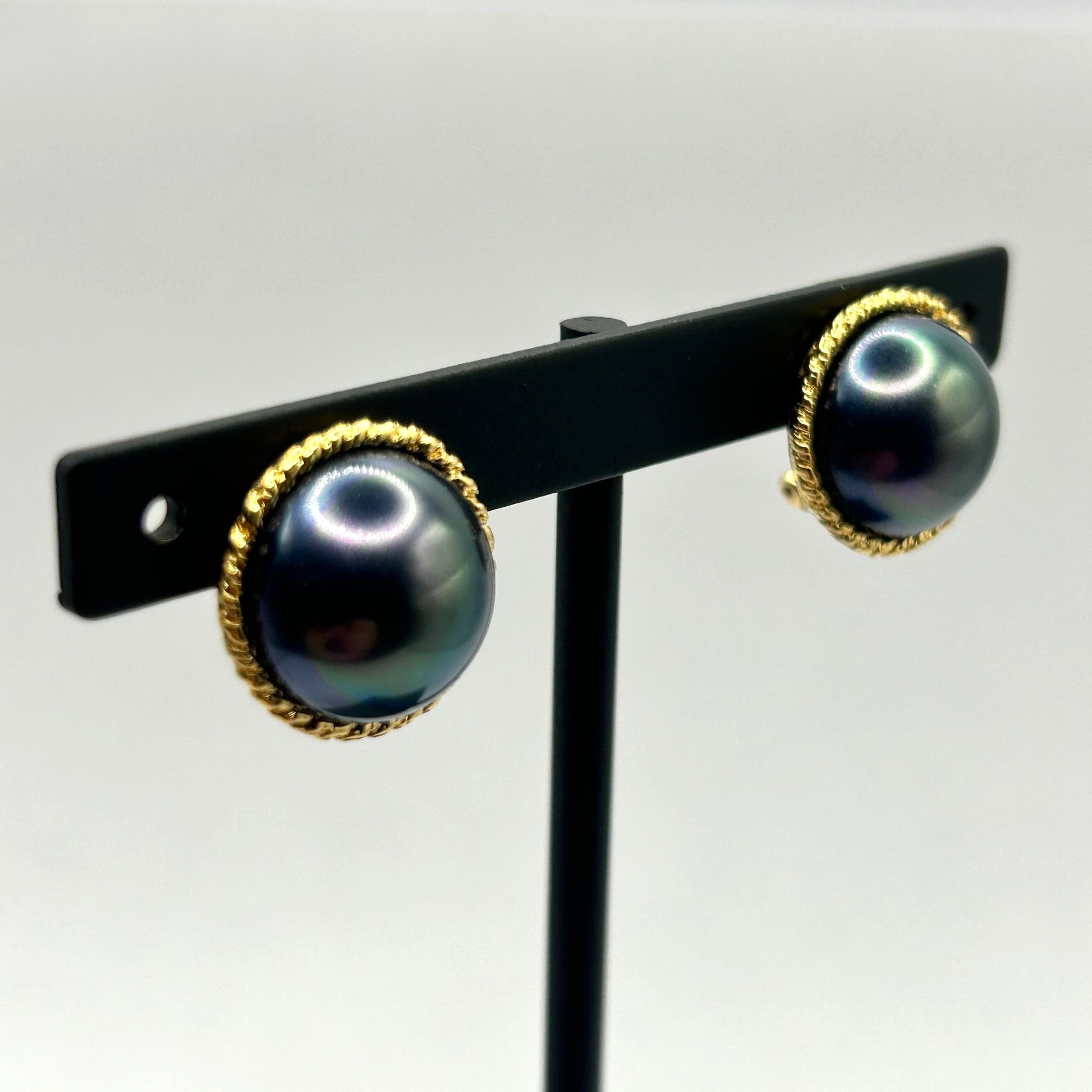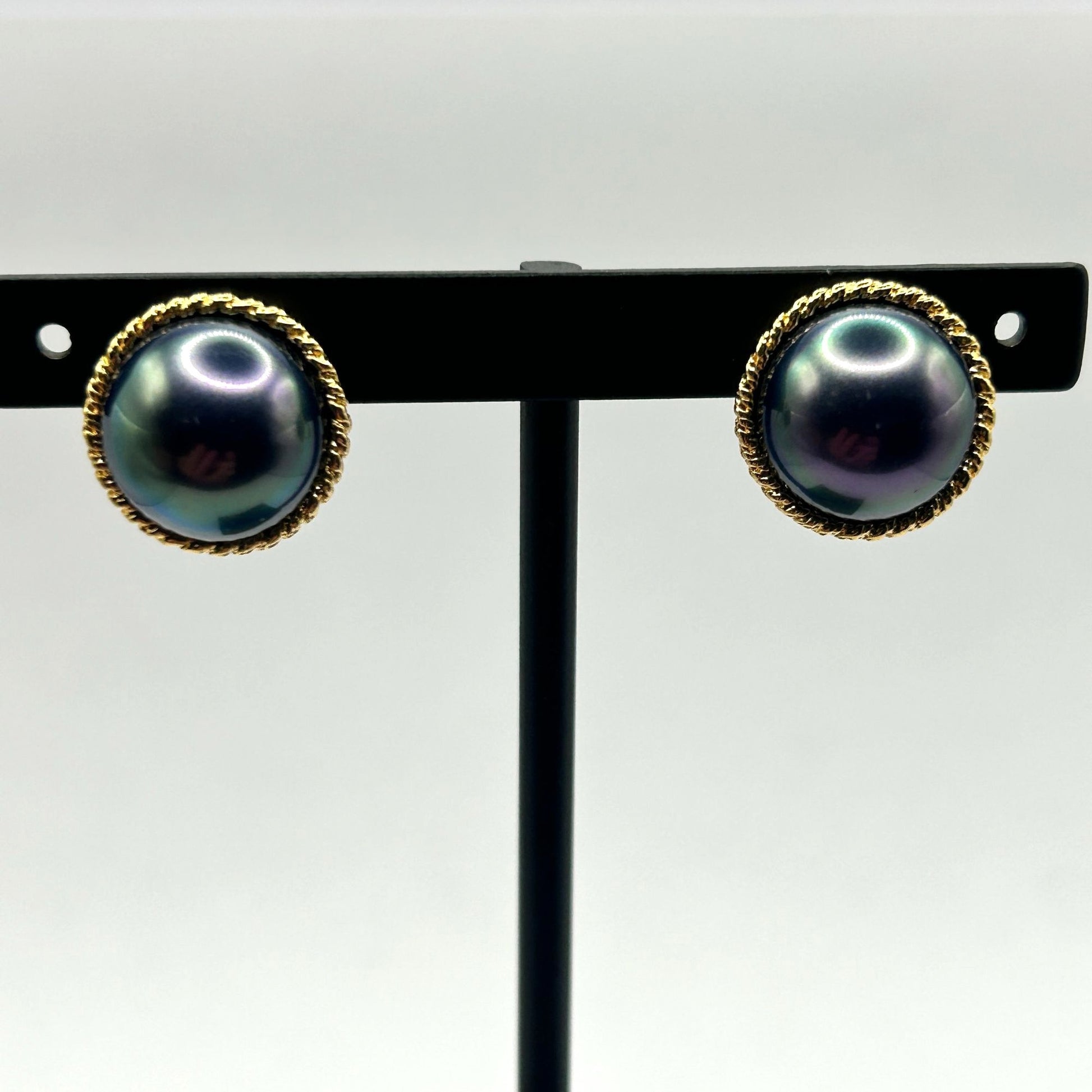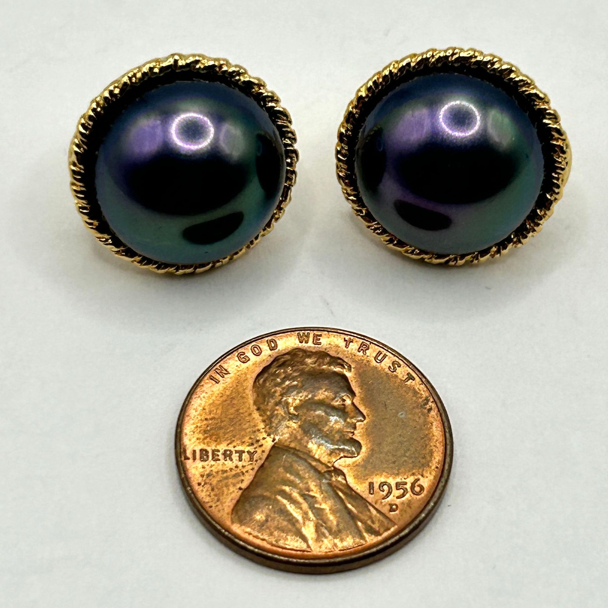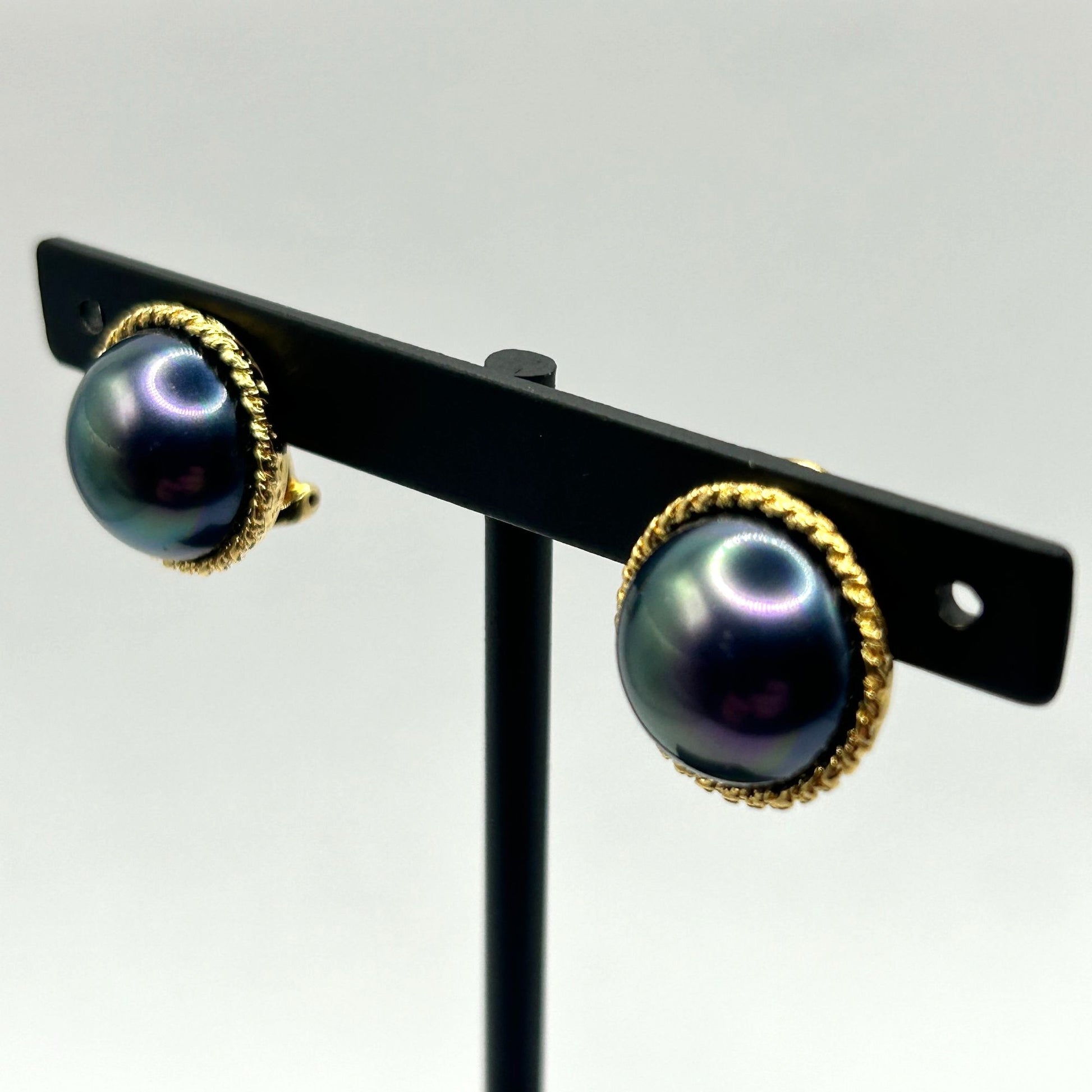 Majorica Euro-Clip Stud Earrings Purple Faux Pearl Round Gold Tone