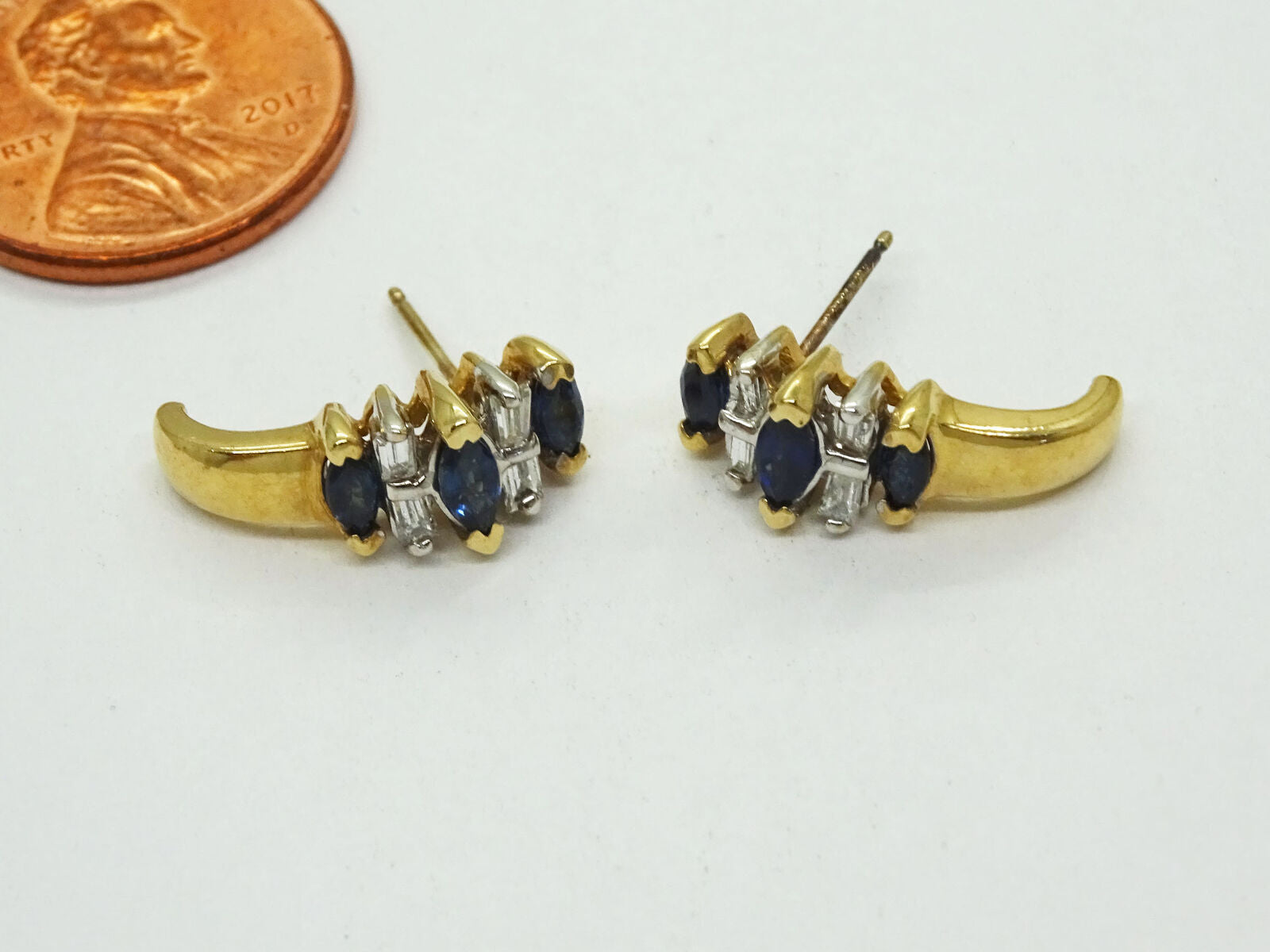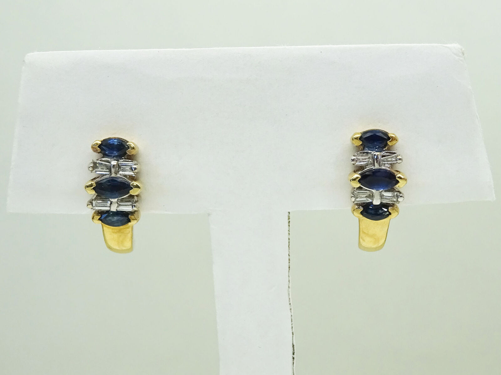 Marquise Sapphire & Baguette CZ "J" Drop Earrings 14k Gold