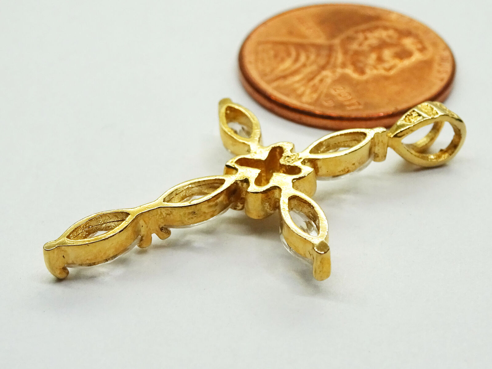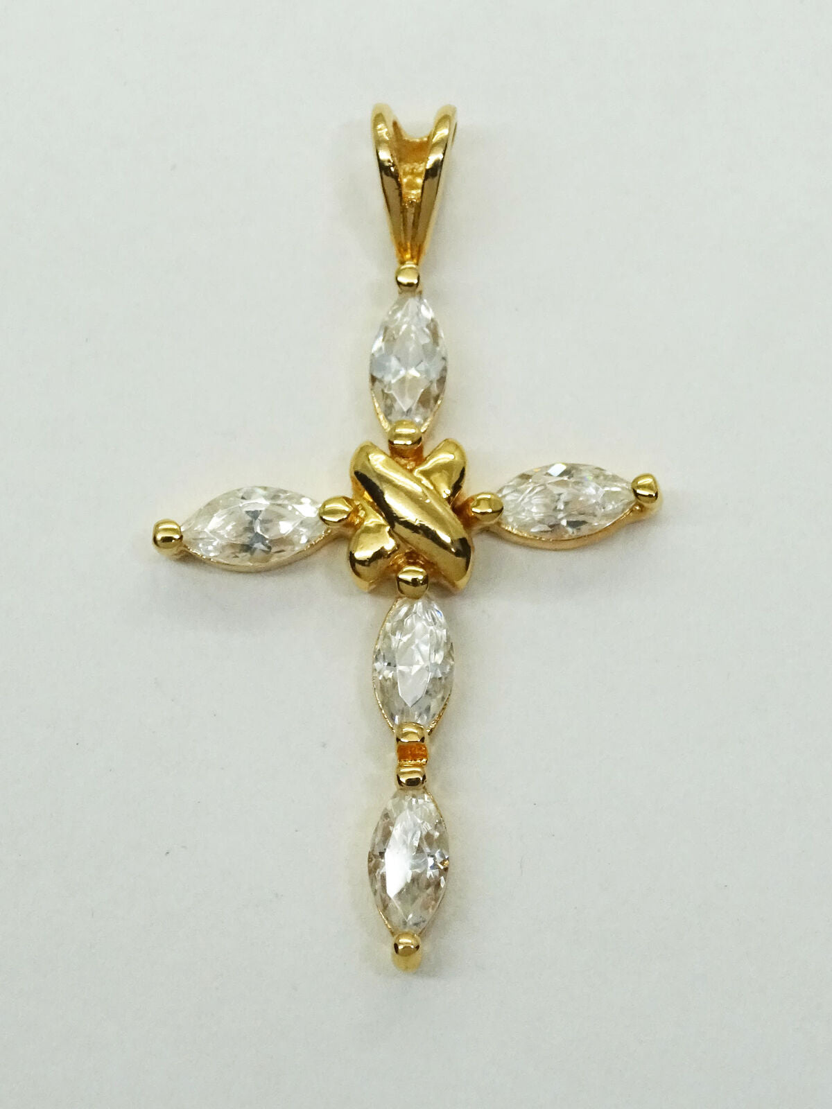 Marquise White Topaz Vermeil Sterling Silver Cross Pendant