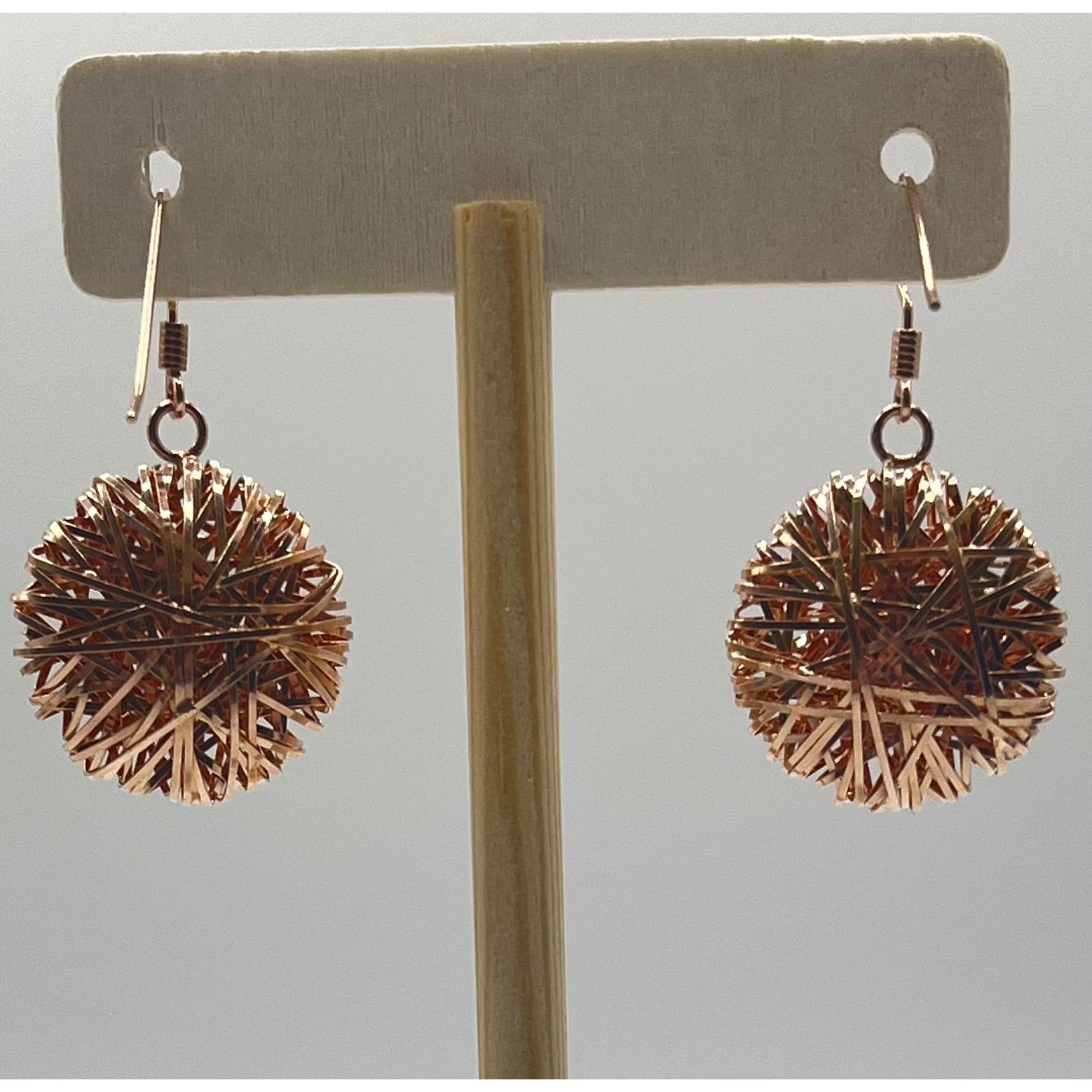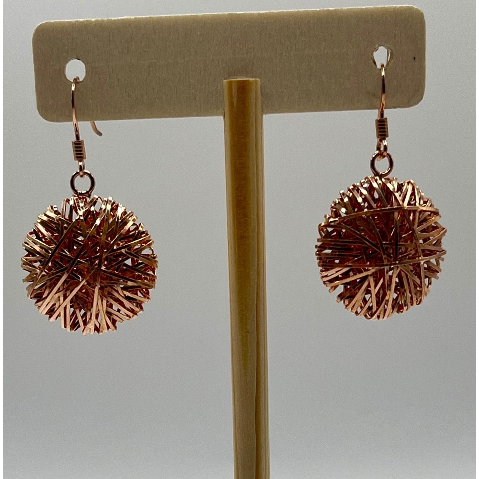 Milor Italy 925 Sterling Silver Rose Gold Vermeil Dangle Mesh Wire Earrings